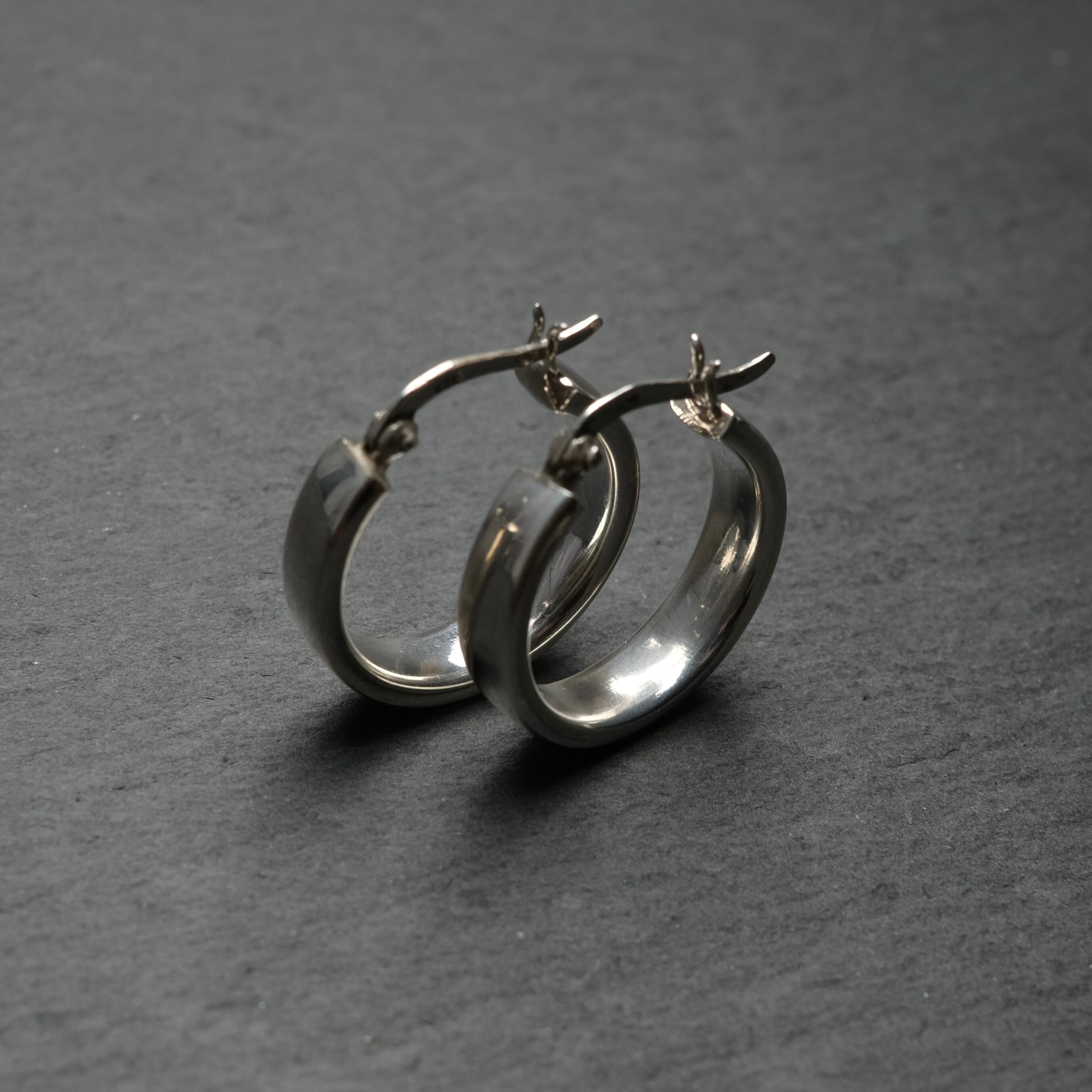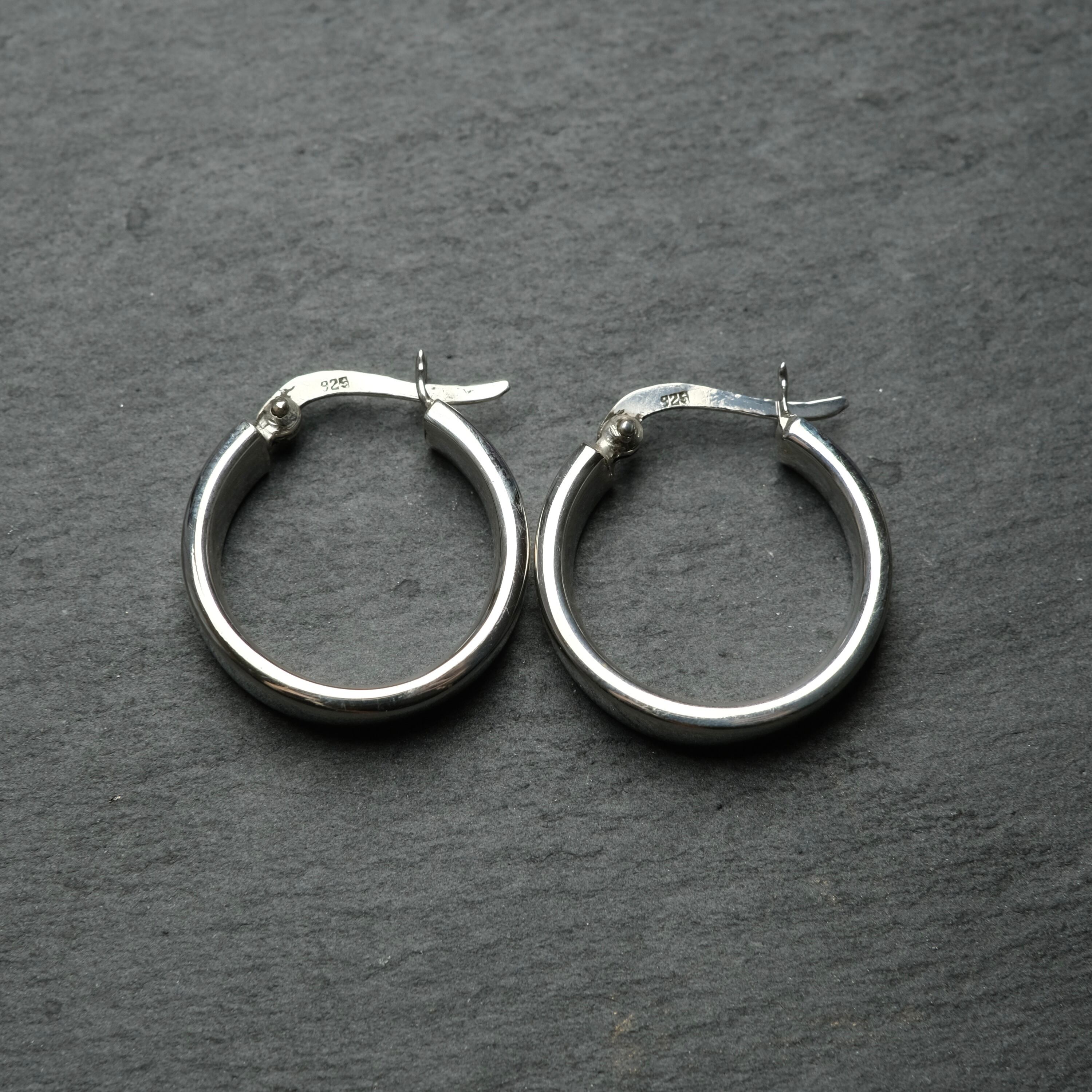 シルバー925 silver シンプルフラットワイドフープピアス/軽研磨仕上げ
