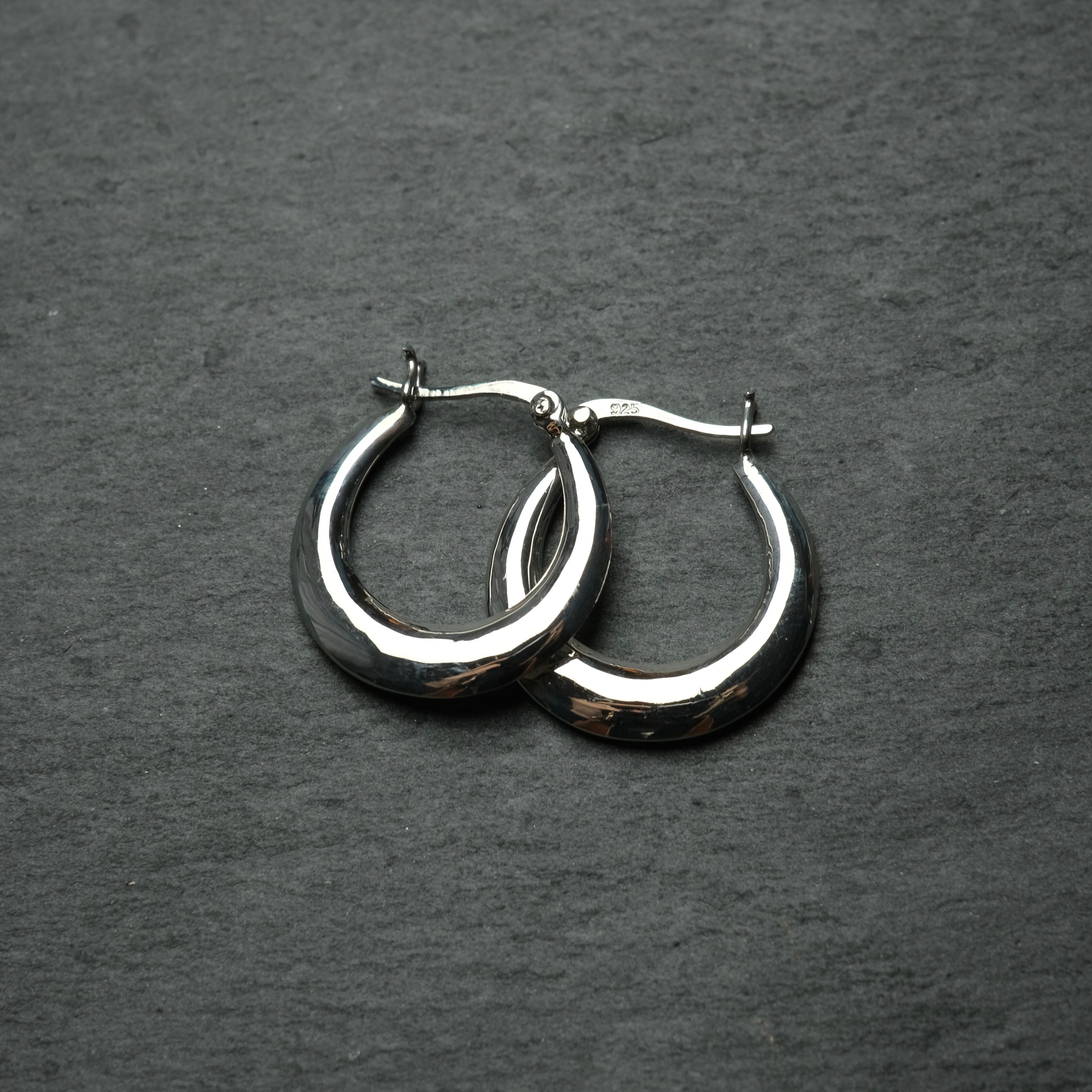 シルバー925 silver ワイドデザインフープピアス/軽研磨仕上げ/両耳