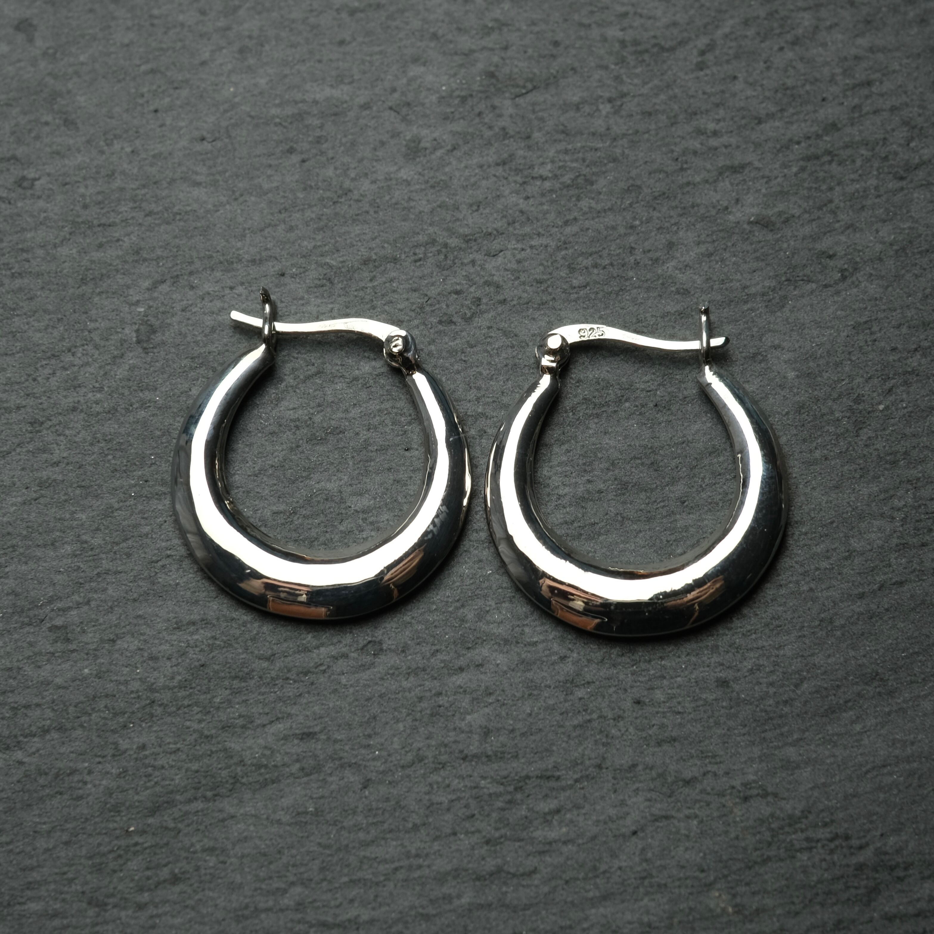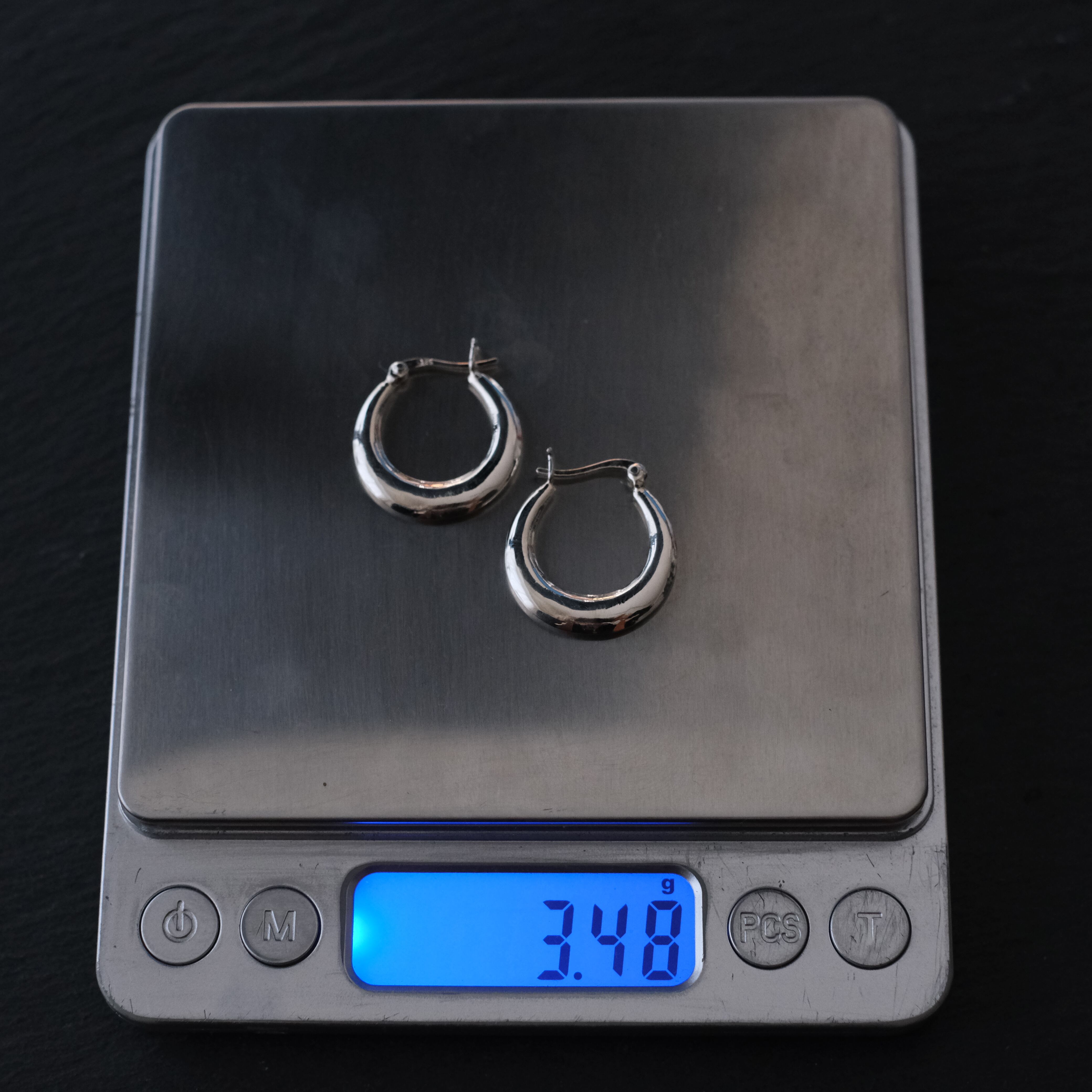 シンプルながらやや大ぶりのシルバー製フープピアスになります。