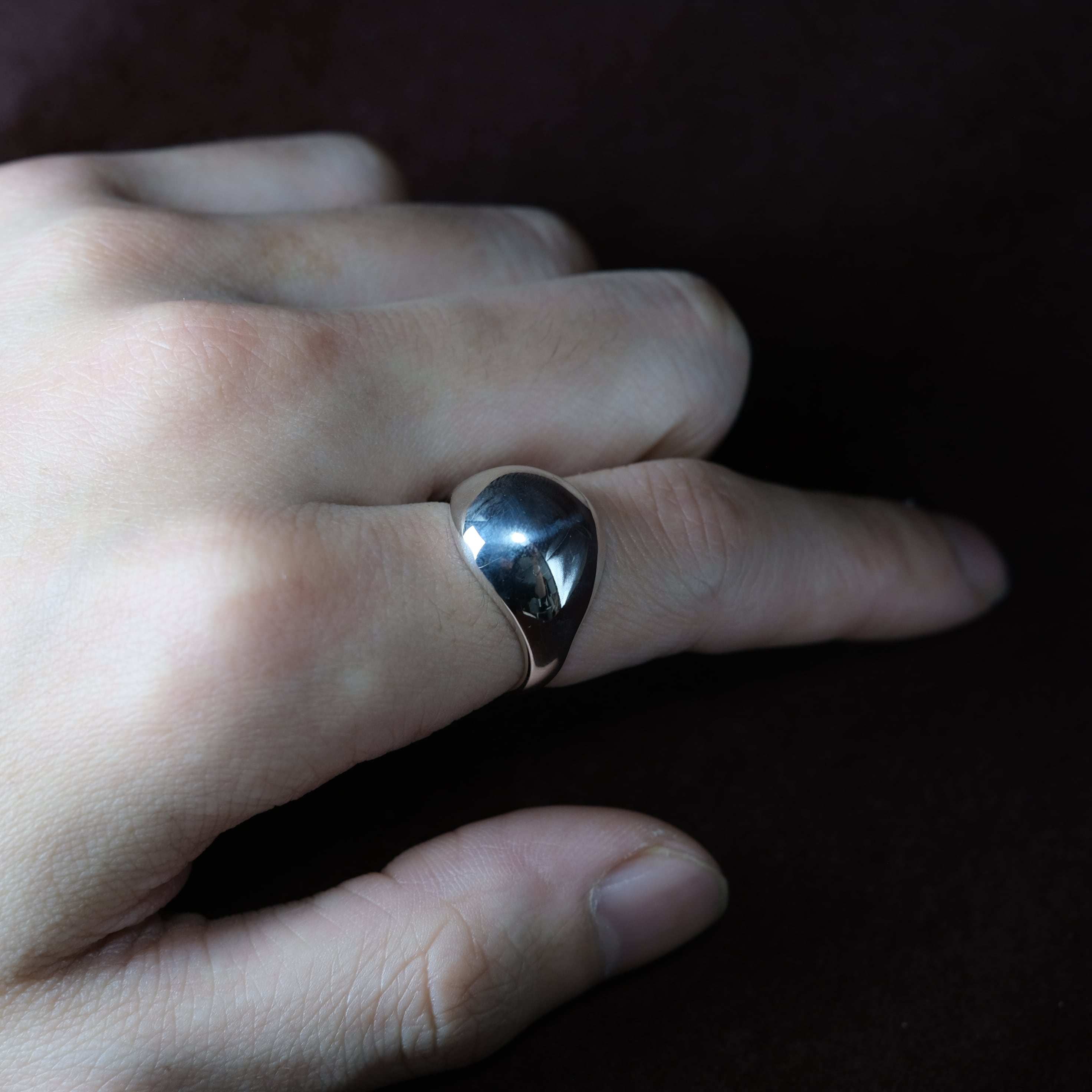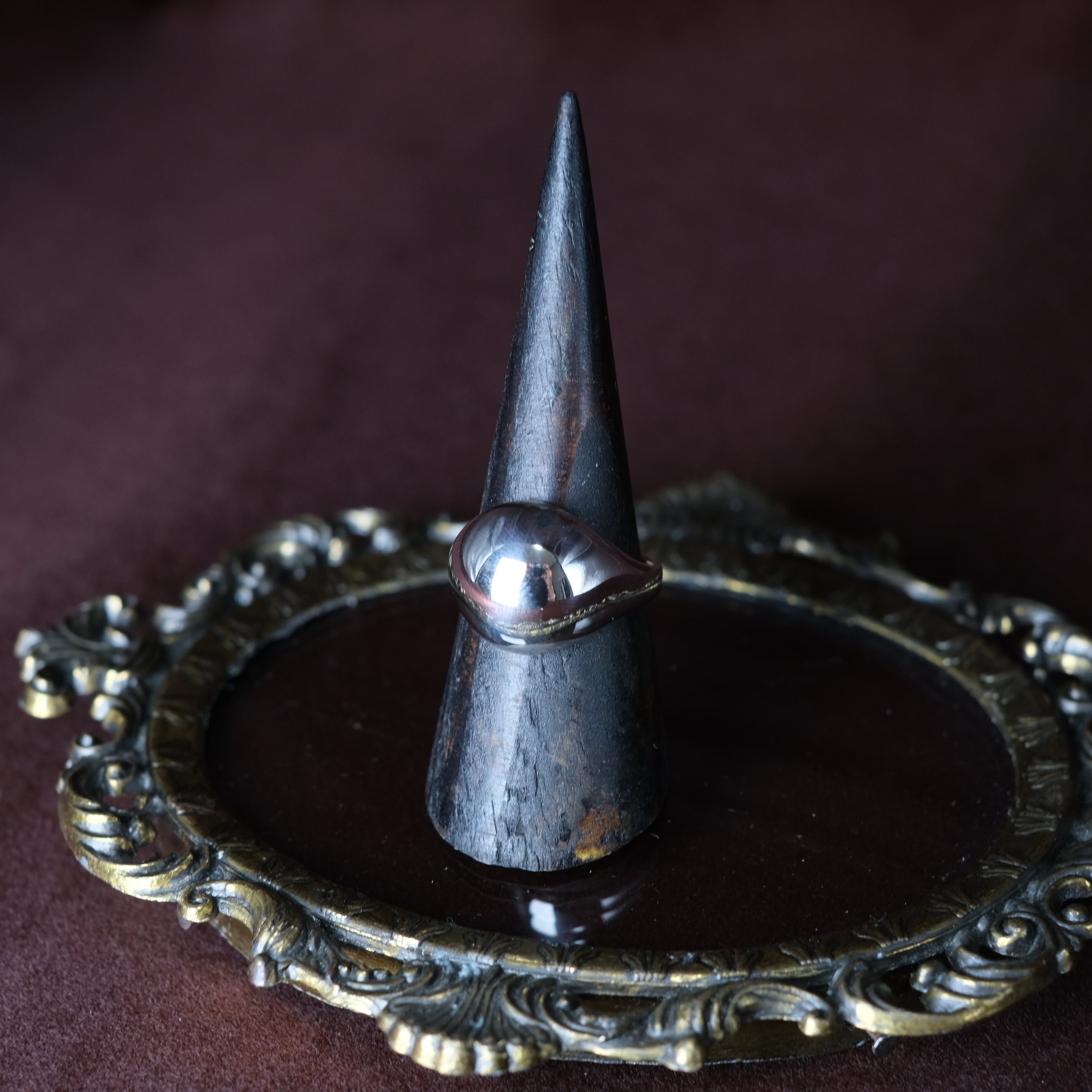 トップに掛け、丸みを帯びたデザインのシルバーリングとなります。