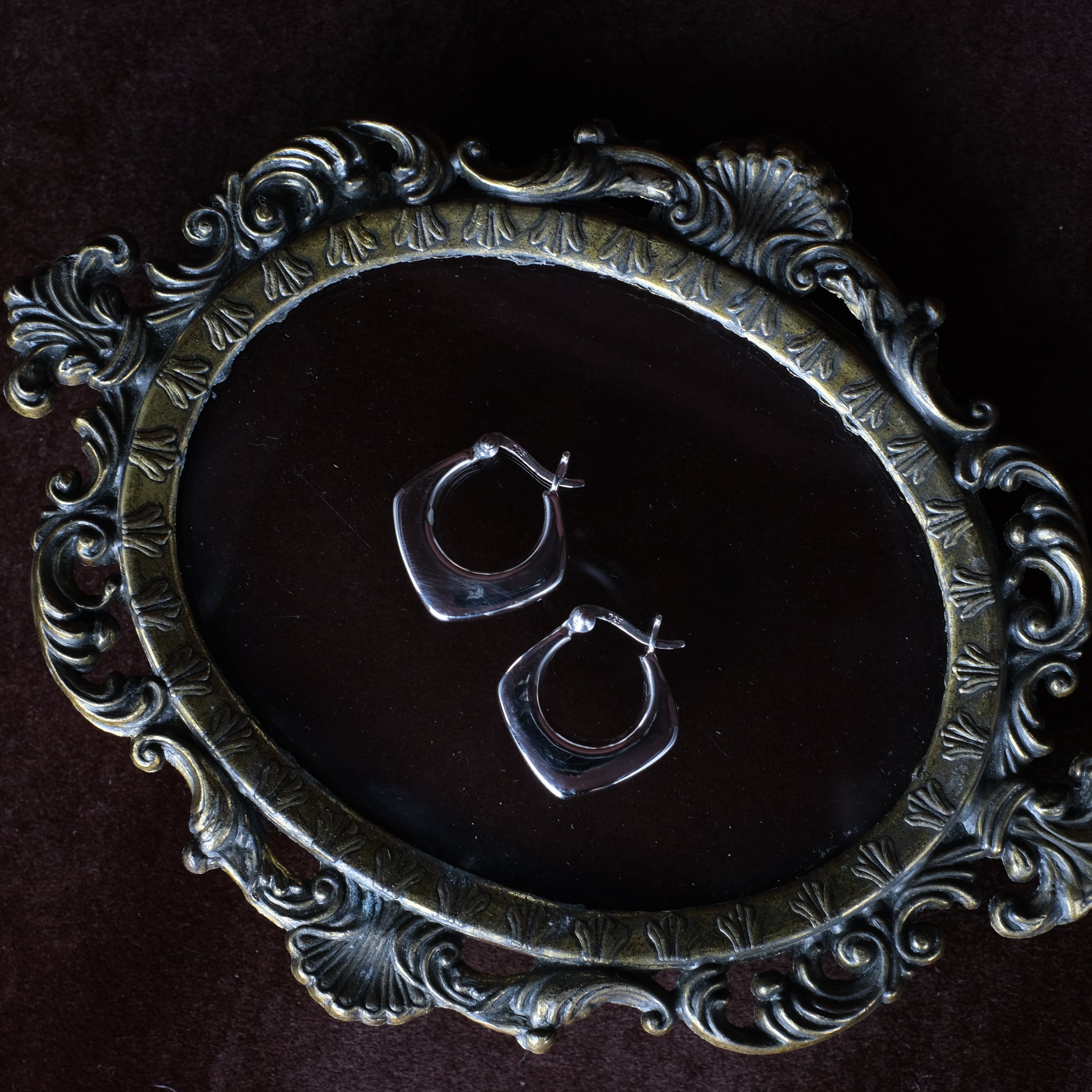 シルバー925 silver ひし形デザインフープピアス/軽研磨仕上げ