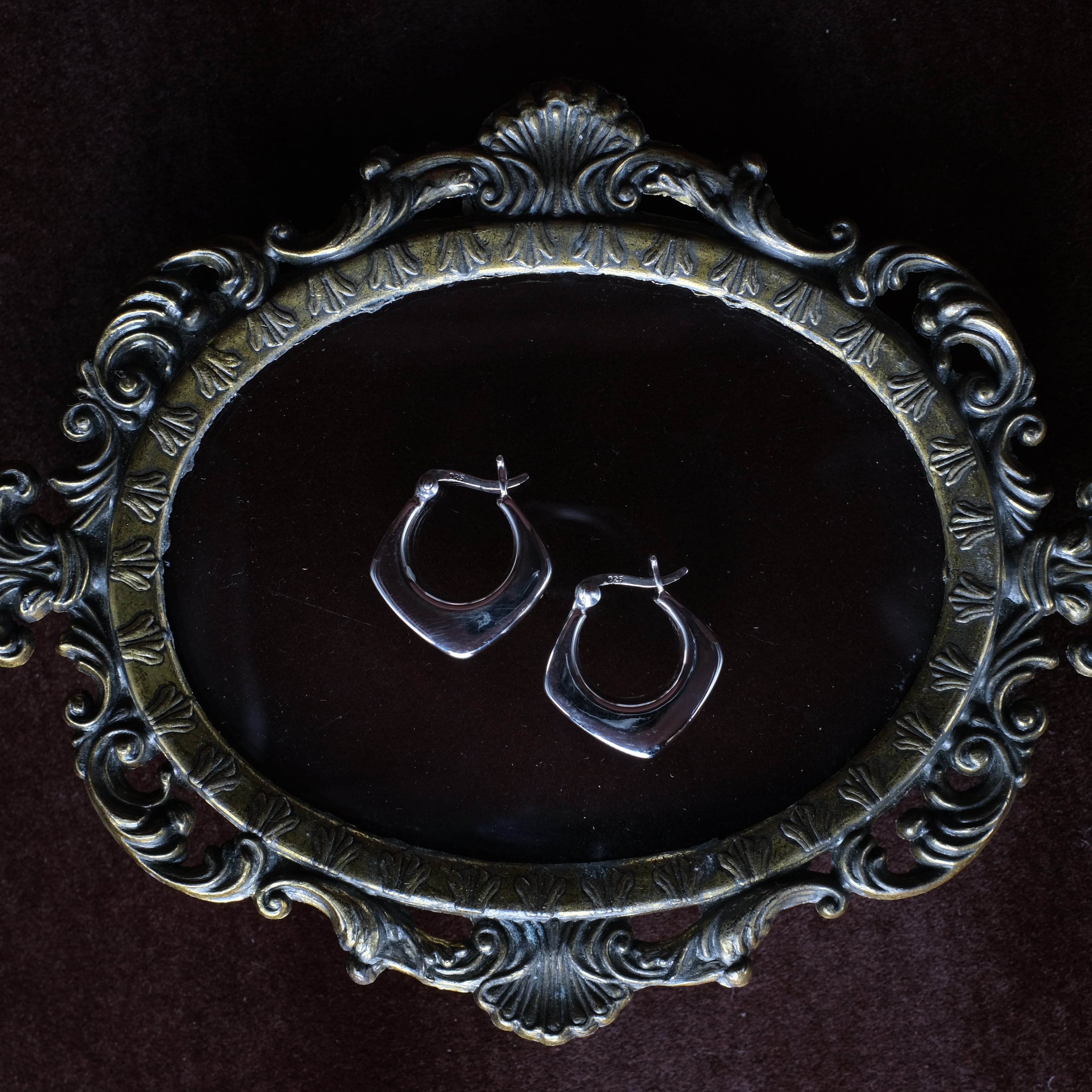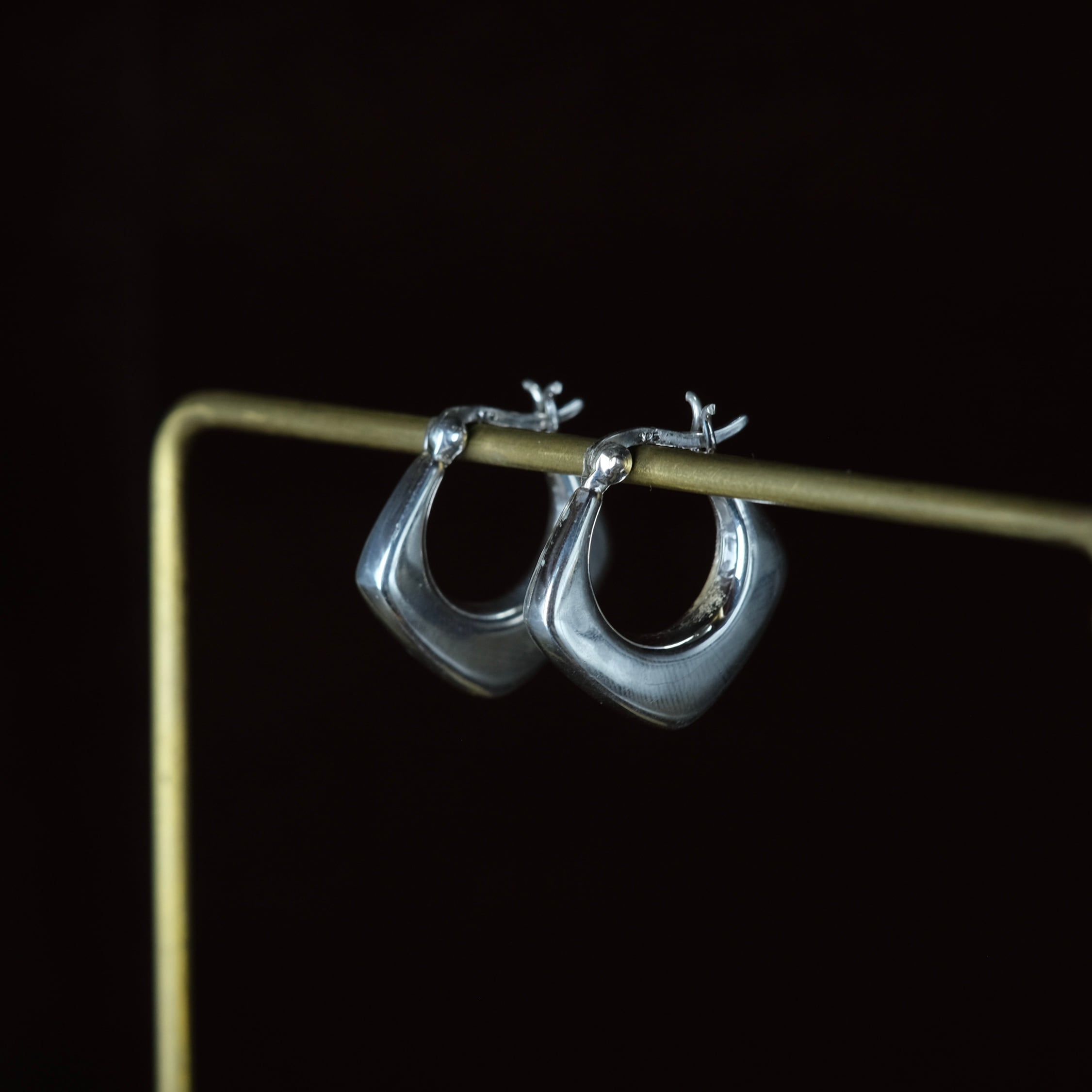 ひし形デザインのシルバー製フープピアスになります。