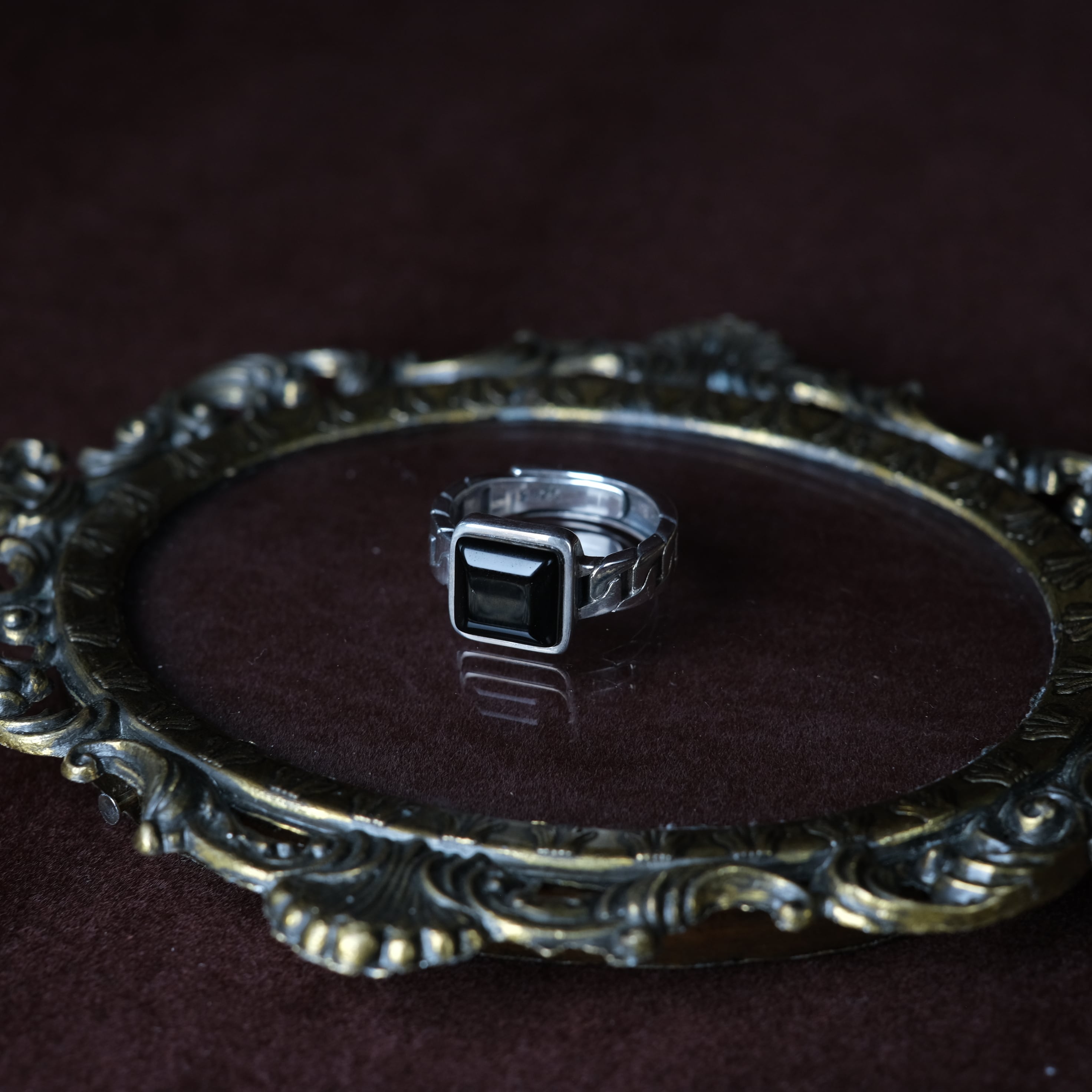 シルバー925 silver スクエアオニキスリング/軽研磨仕上げ/18号