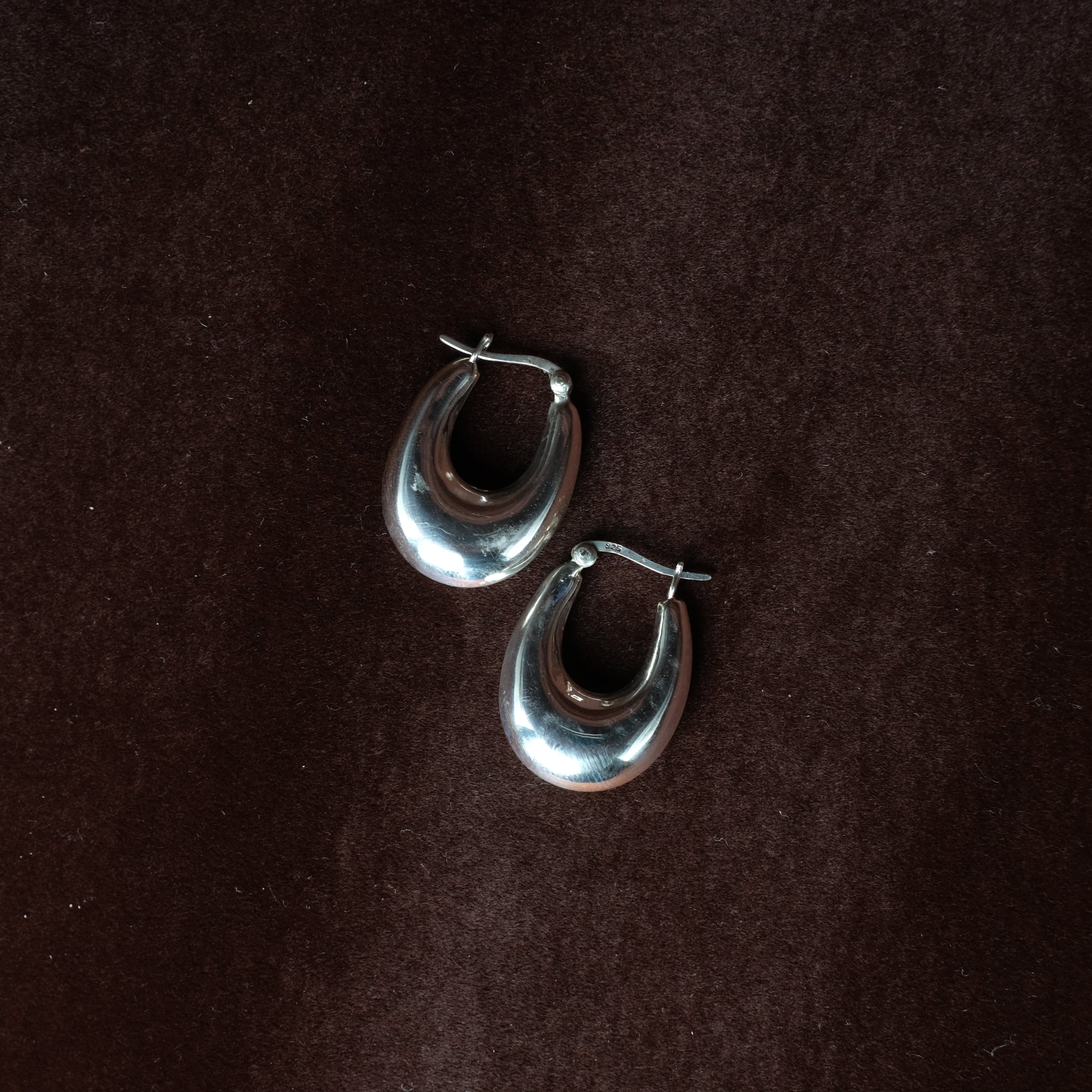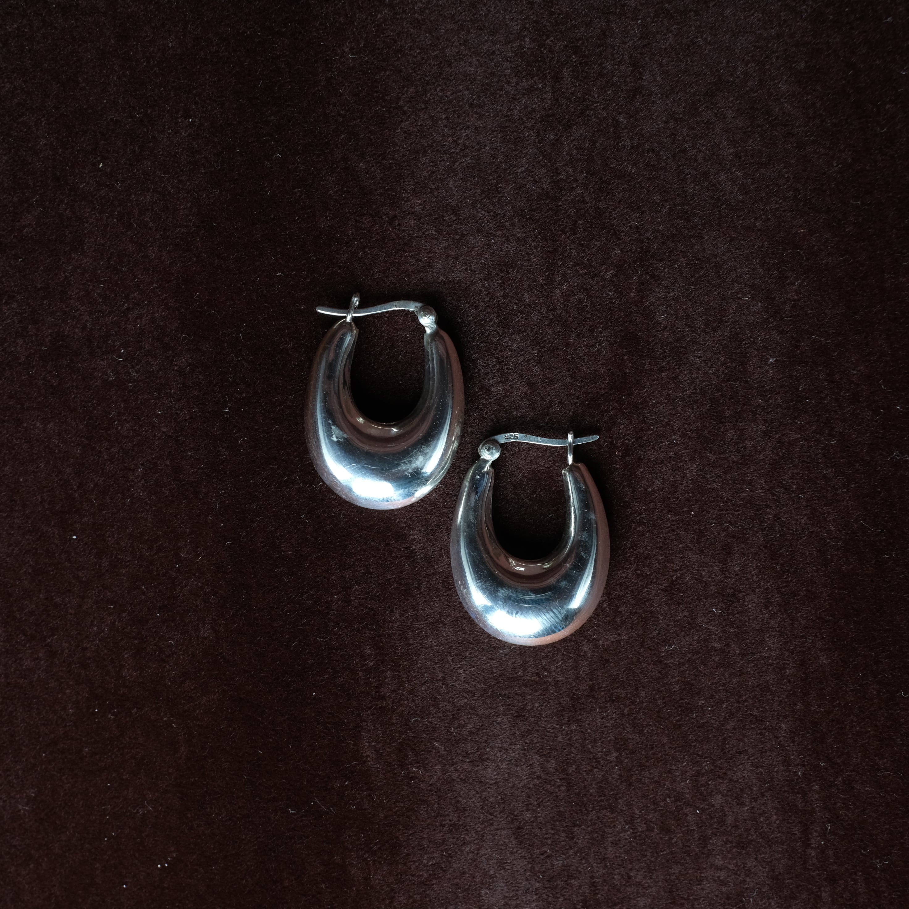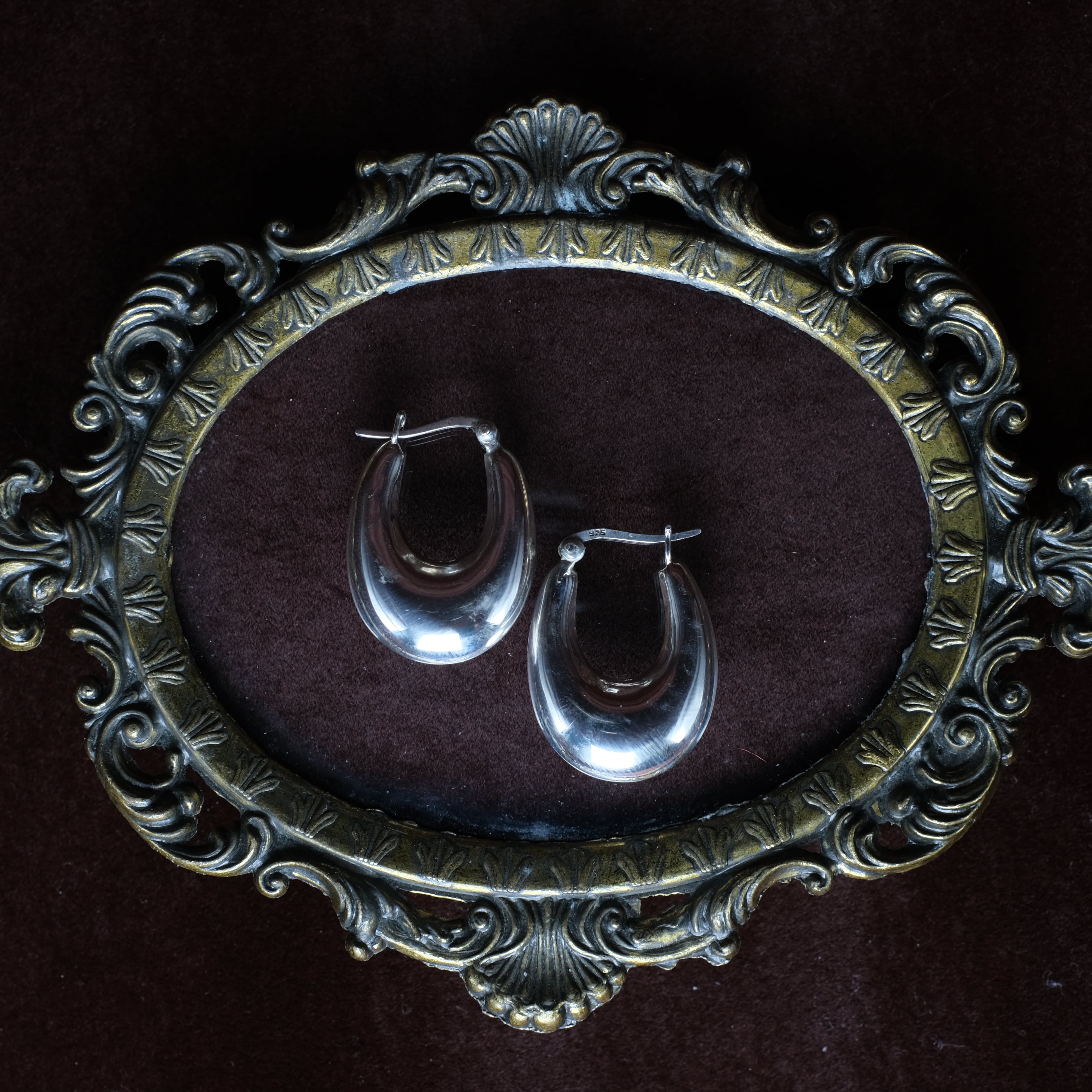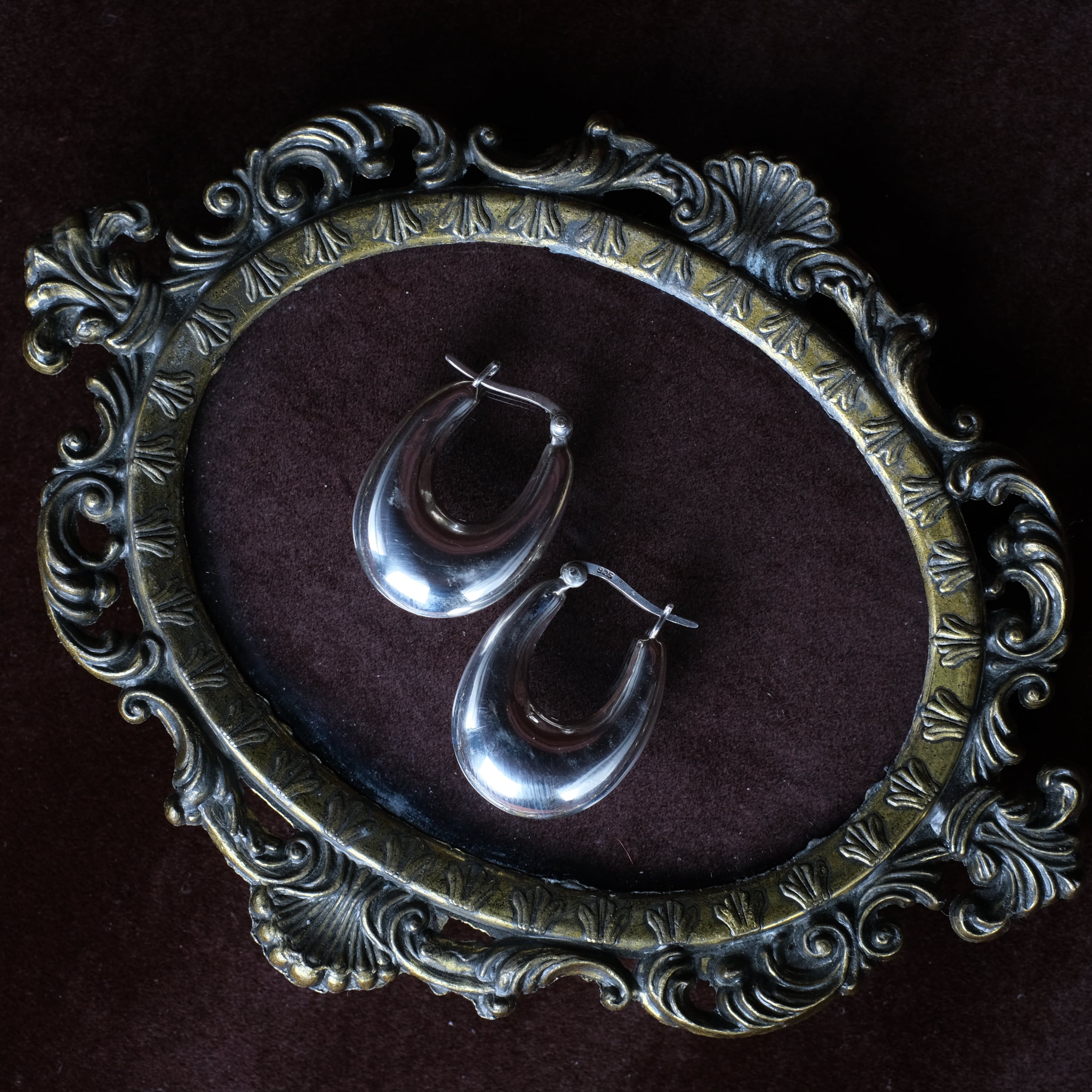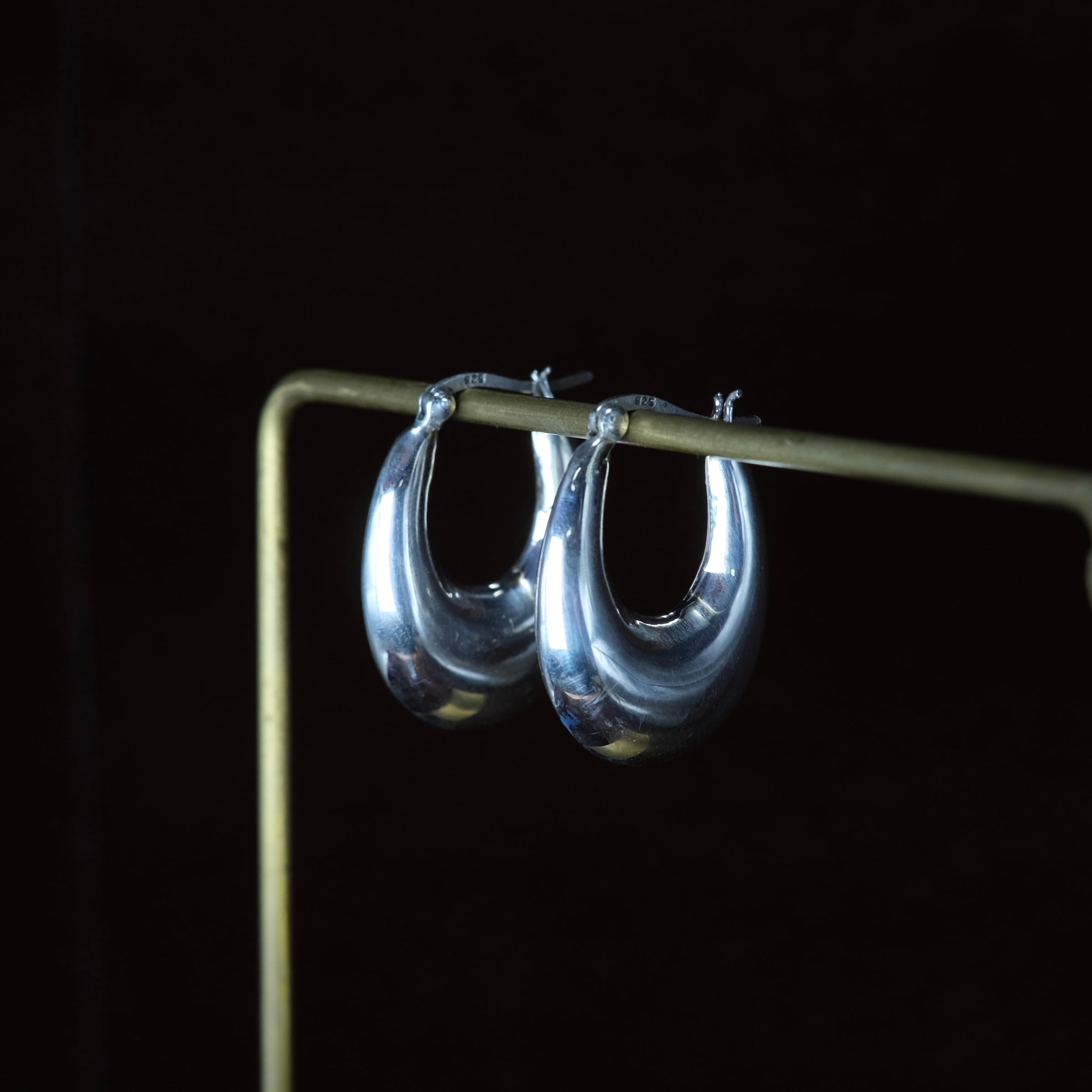 シルバー925 silver ワイドオーバルフープピアス/軽研磨仕上げ/両耳