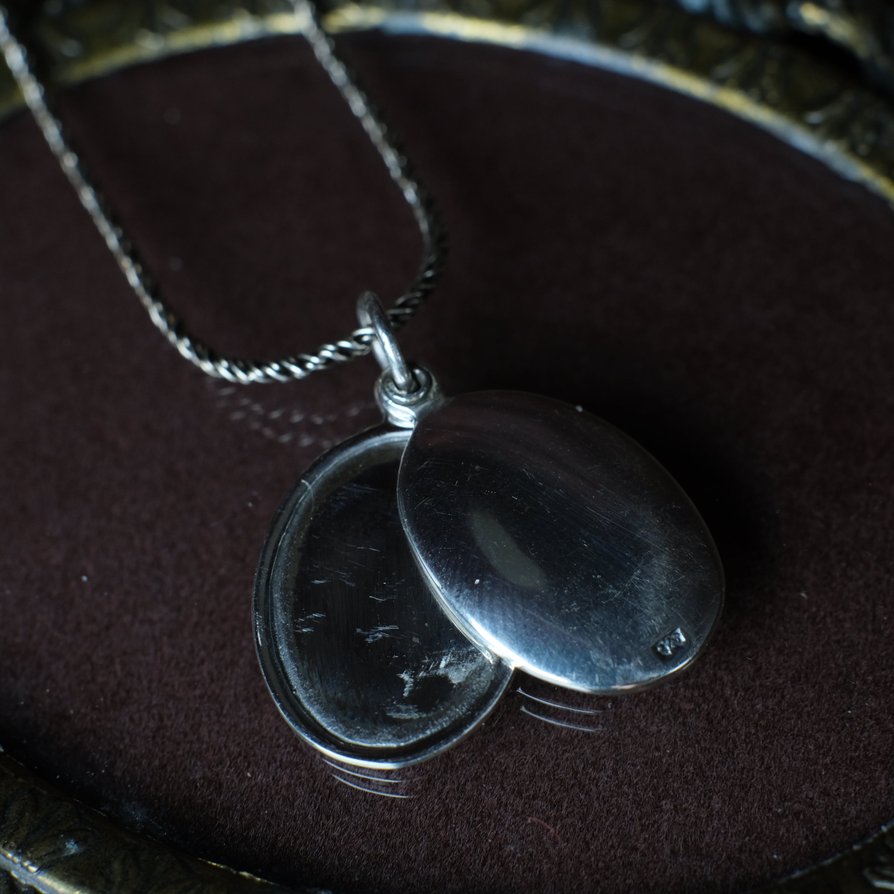 2枚の重なり合う、ペンダントトップをセッティングしたシルバーネックレスになります。