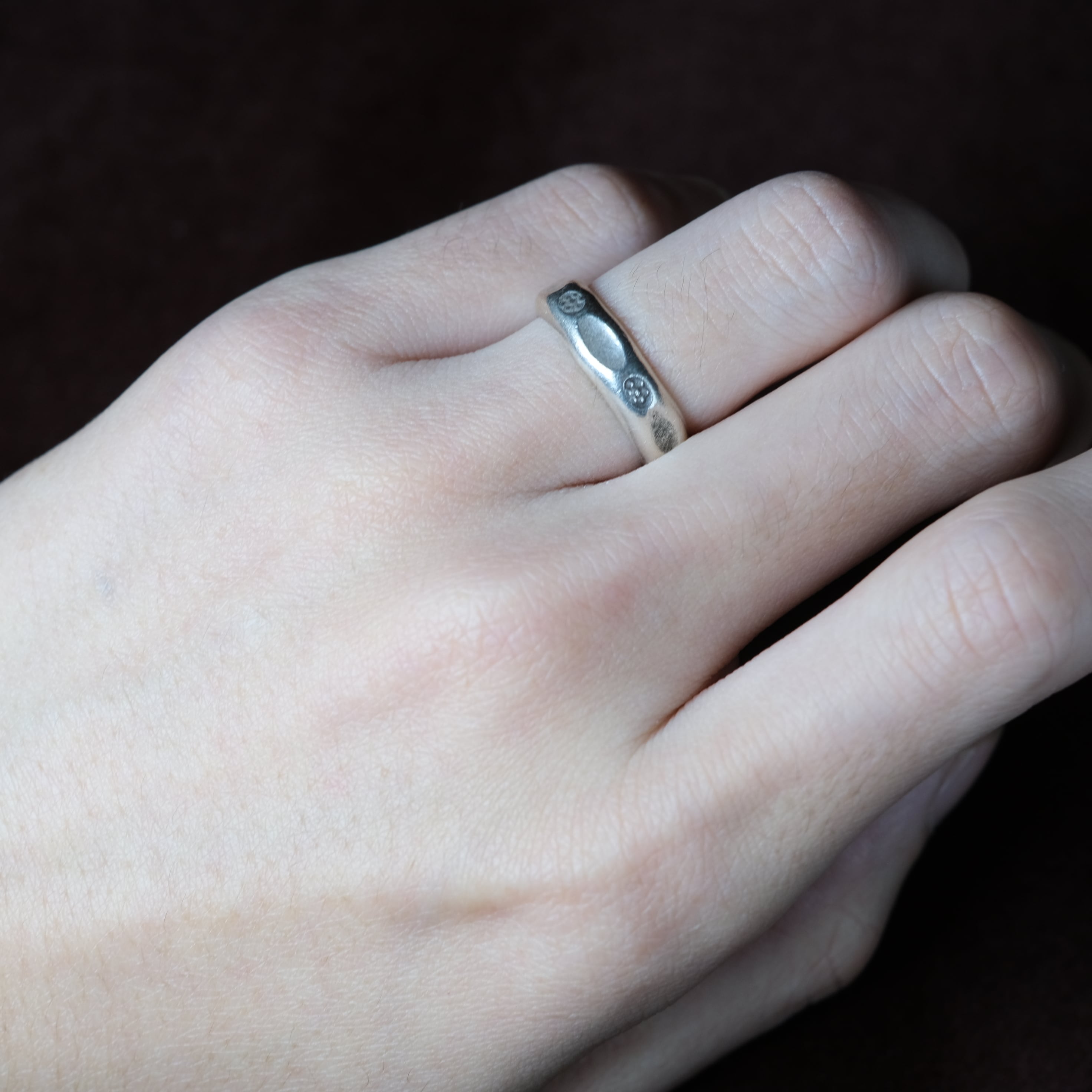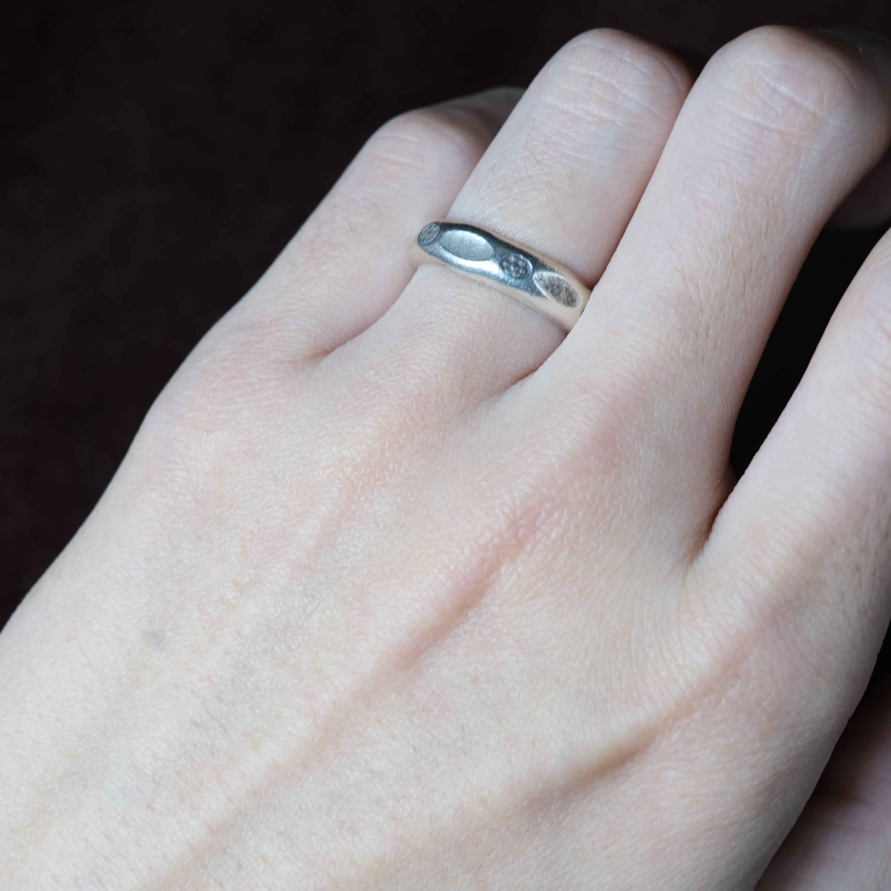 別注 カレンシルバー シルバー950 タタキ&スタンプワークリング/軽研磨仕上げ/13号