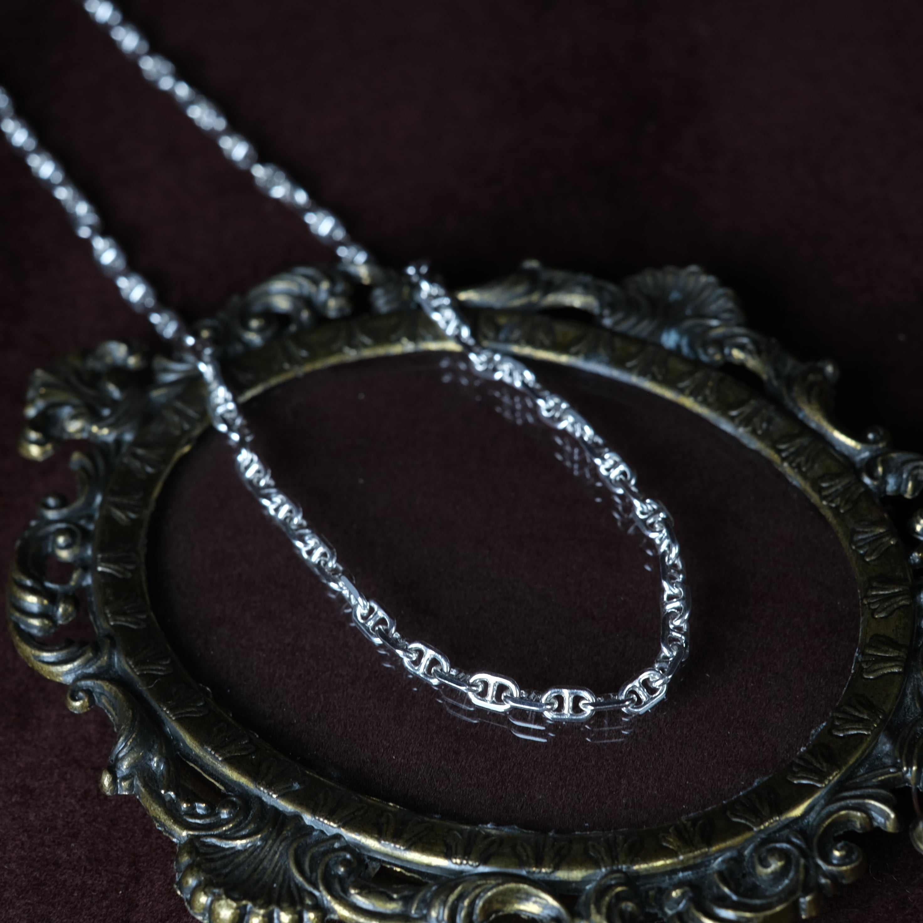 しっかりと太さのあるアンカーチェーンのシルバーネックレスになります。