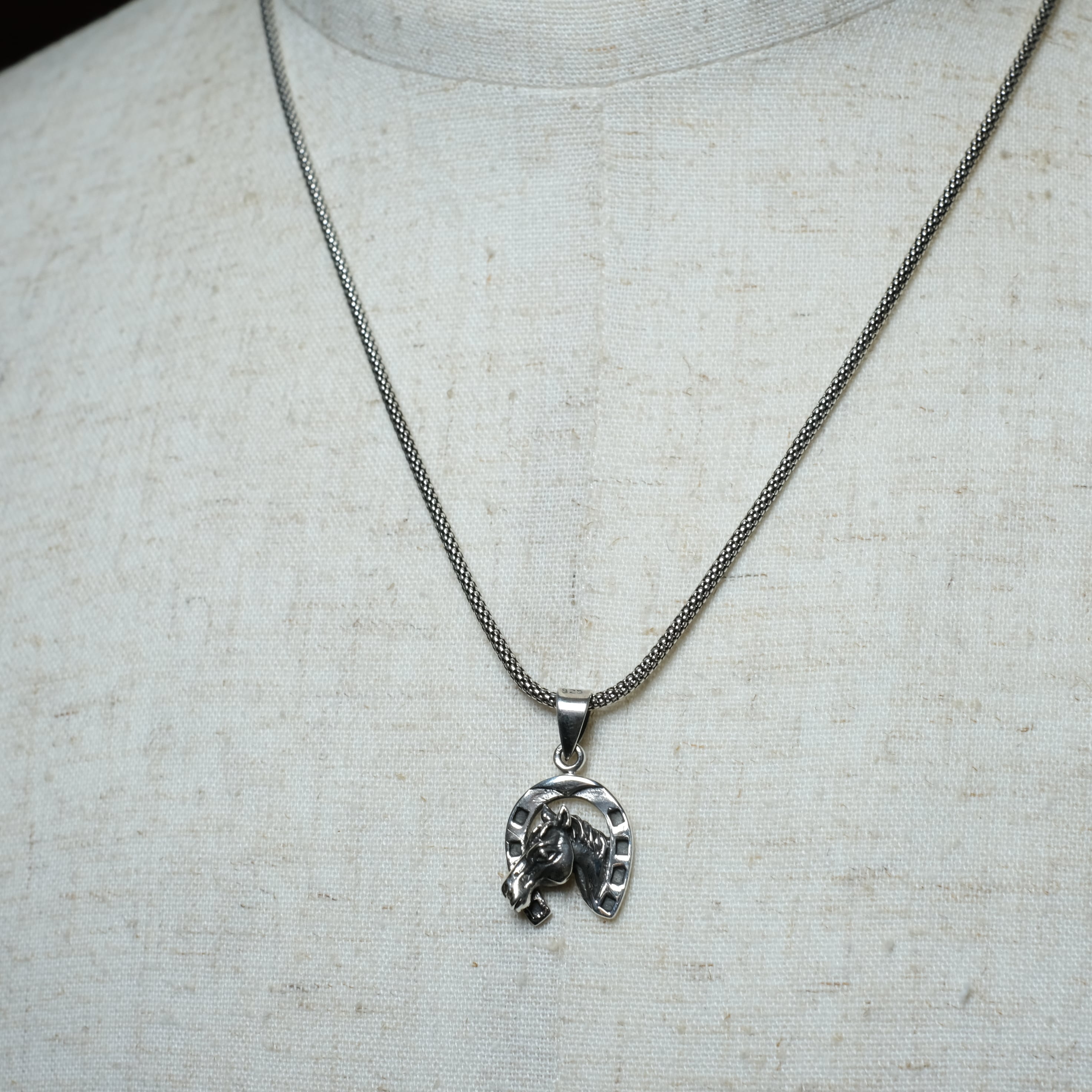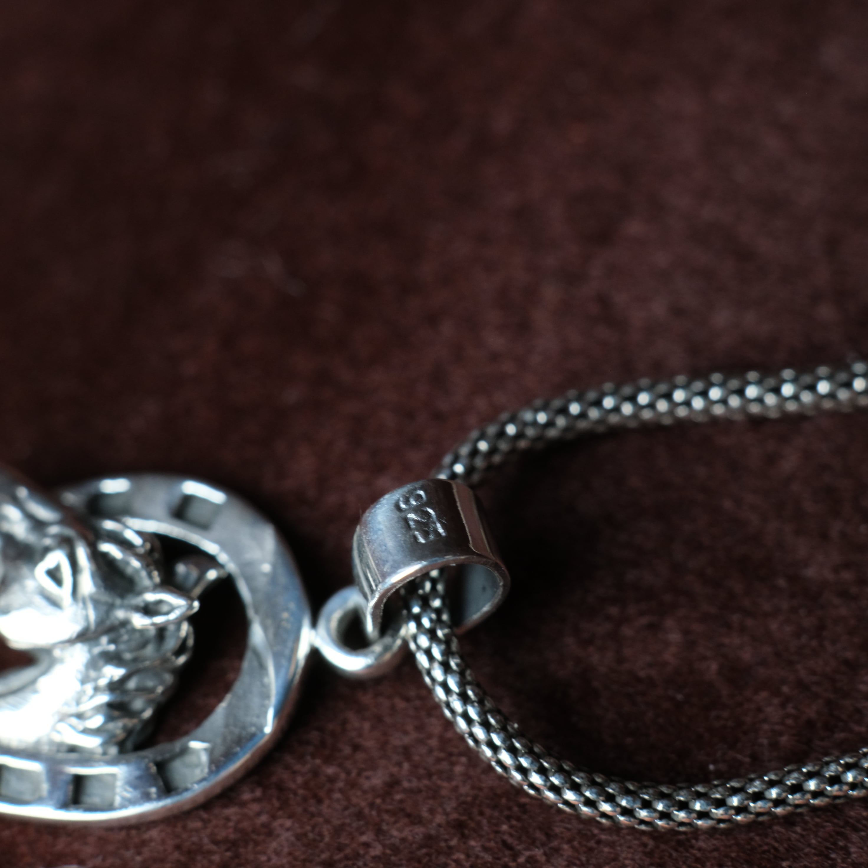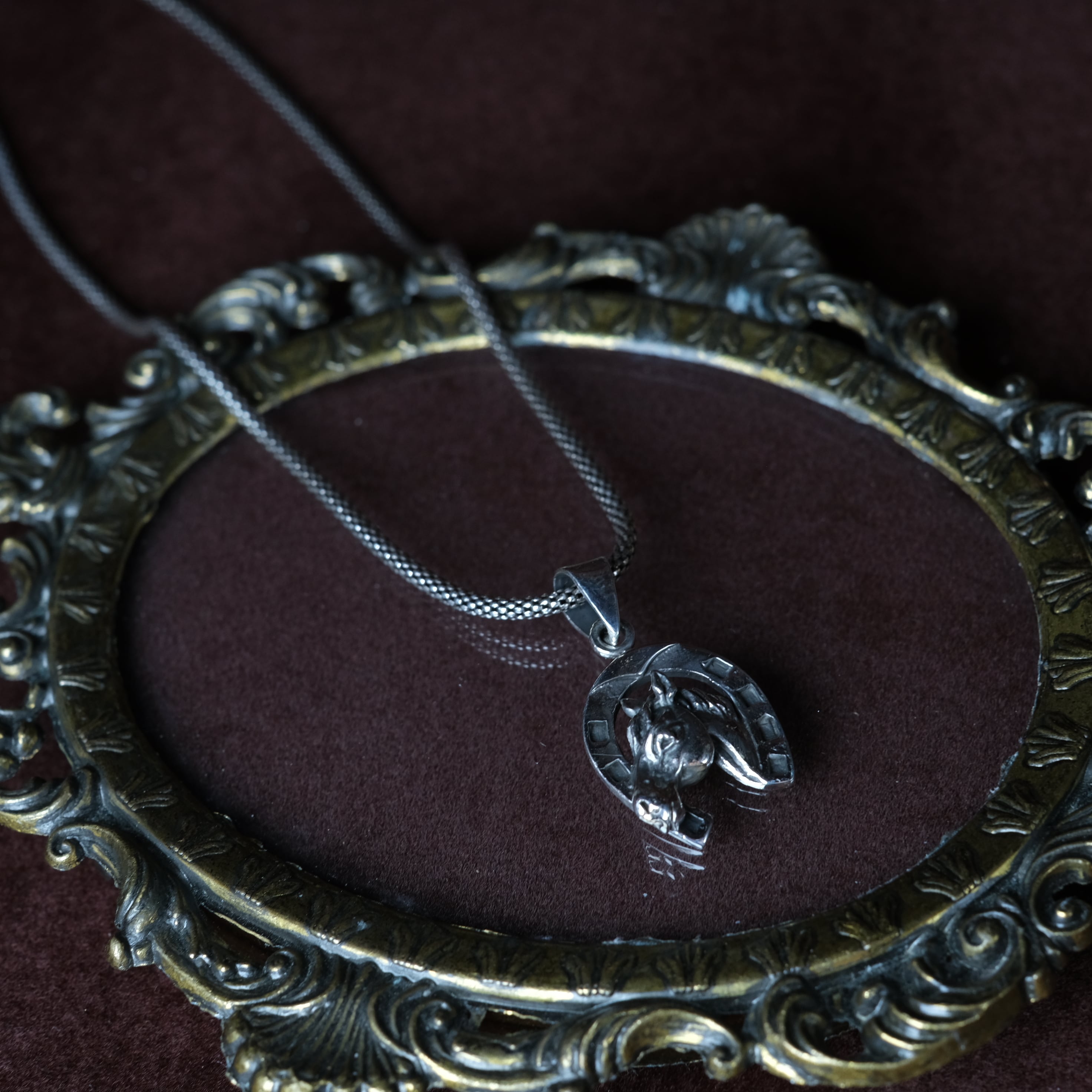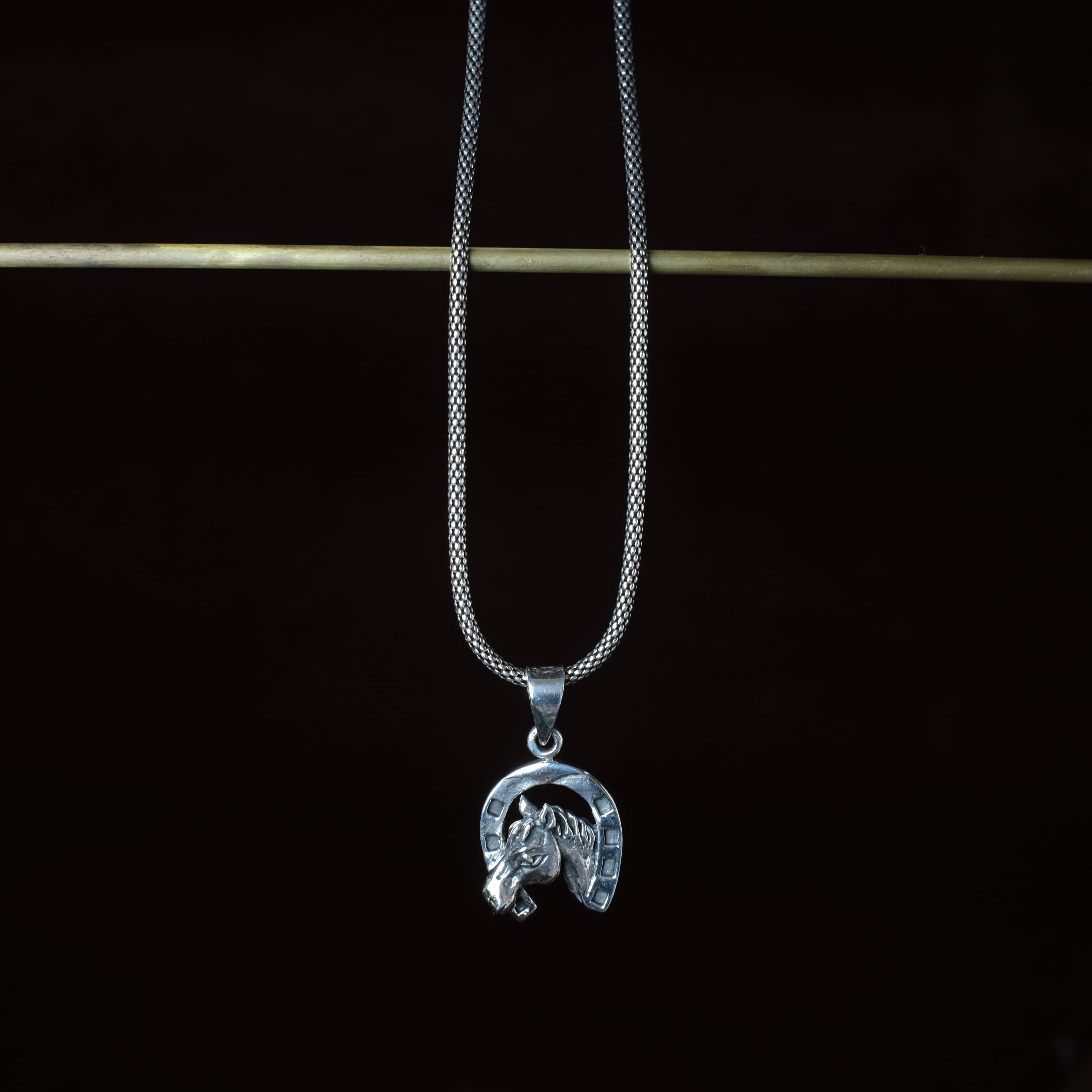 馬蹄の中にリアルな馬がデザインされたペンダントになります。