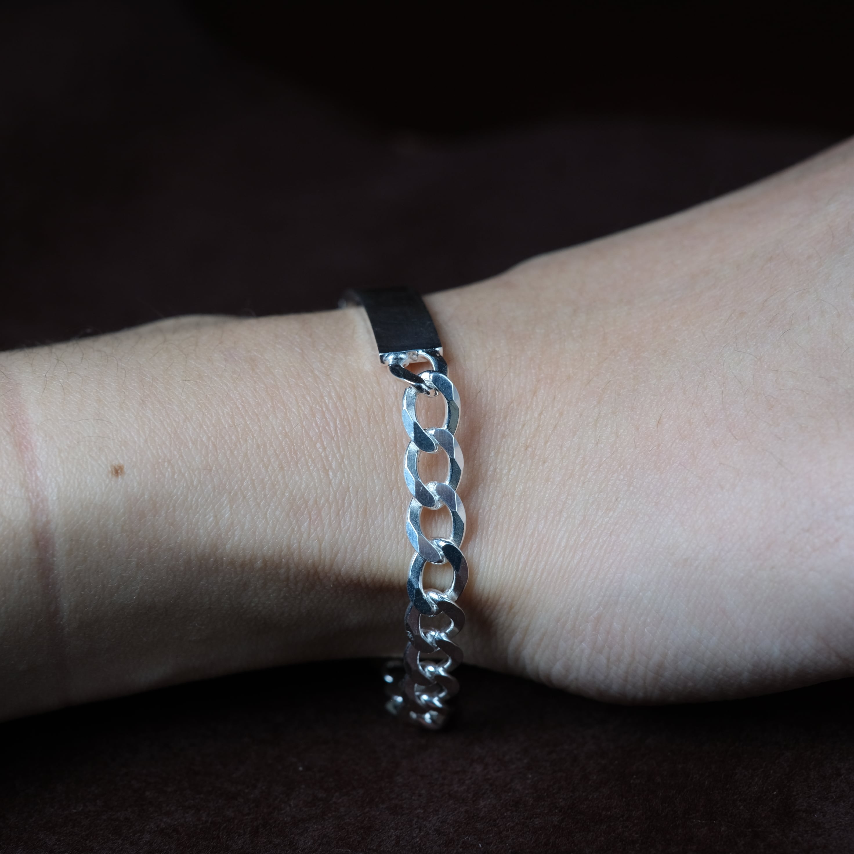 シルバー925 silver IDチェーンブレスレット/軽研磨仕上げ