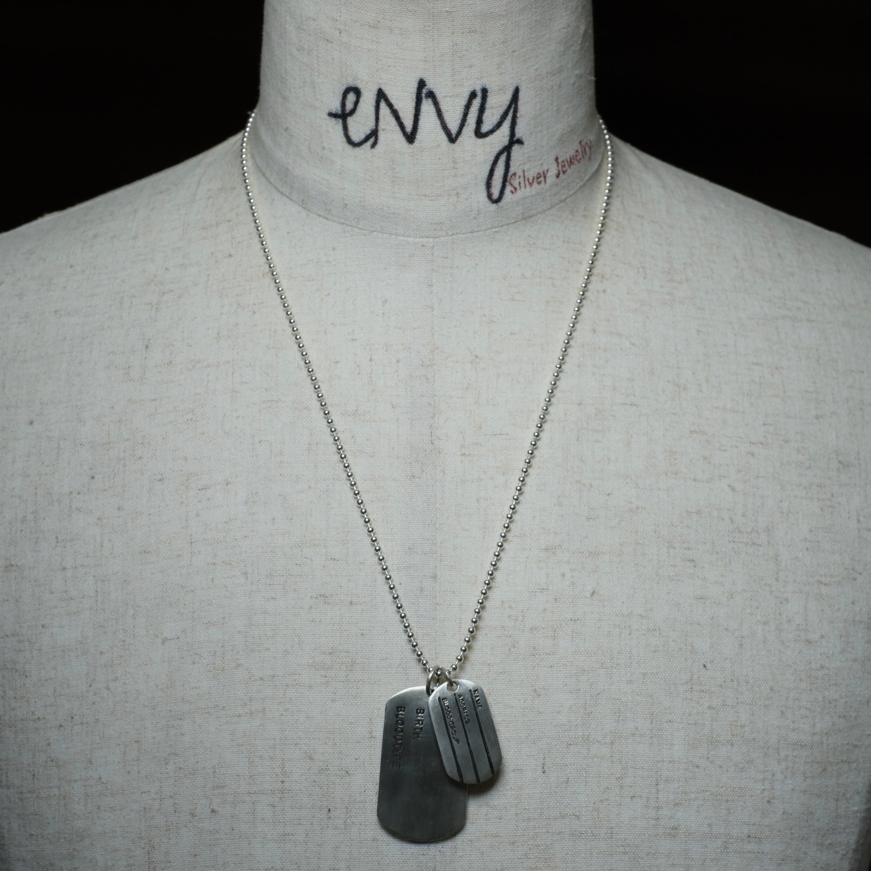 シルバー925 silver ドッグタグネックレス/マット×黒燻し仕上げ/50cm