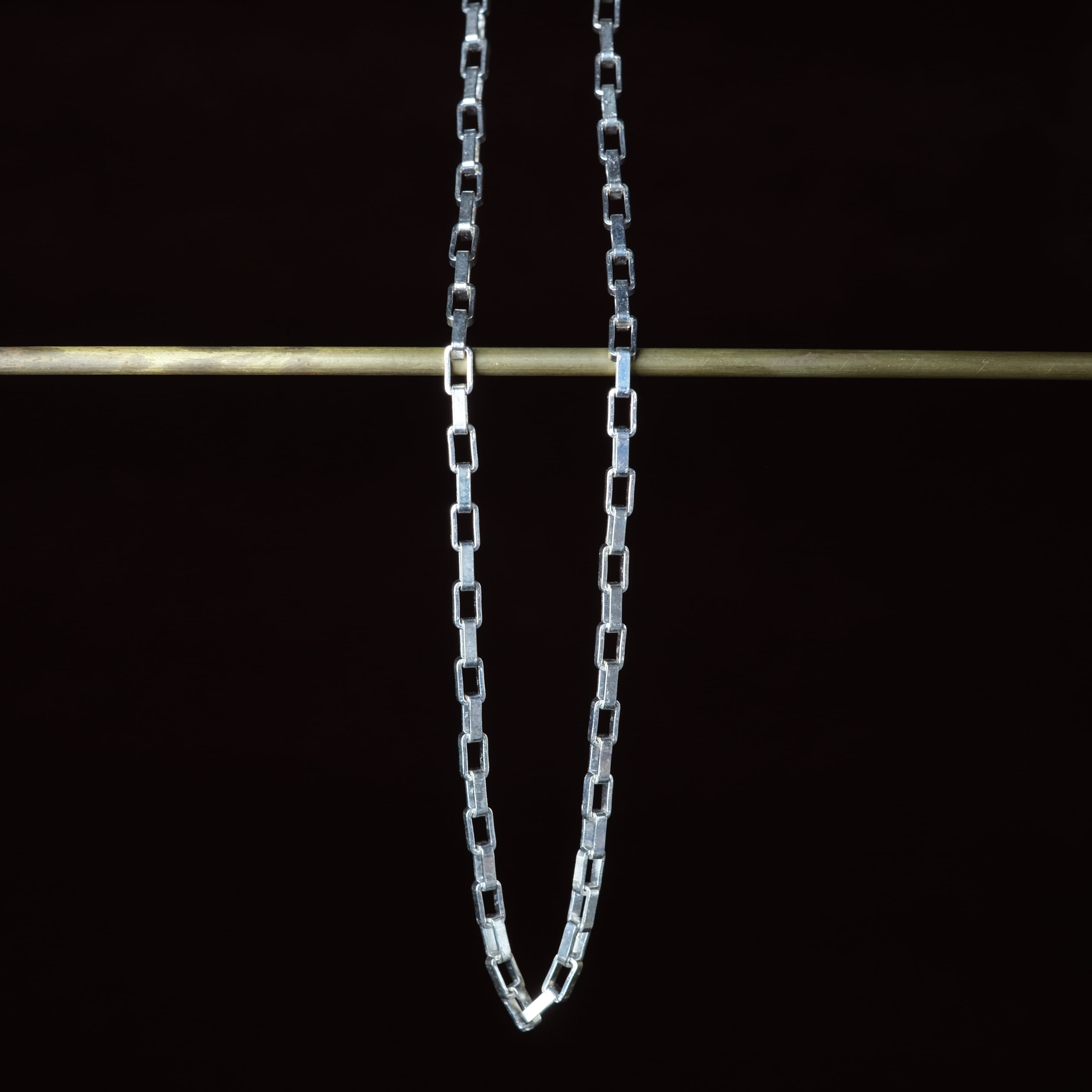 シンプルなスクエアチェーンが連なった、シルバー製ネックレスになります。