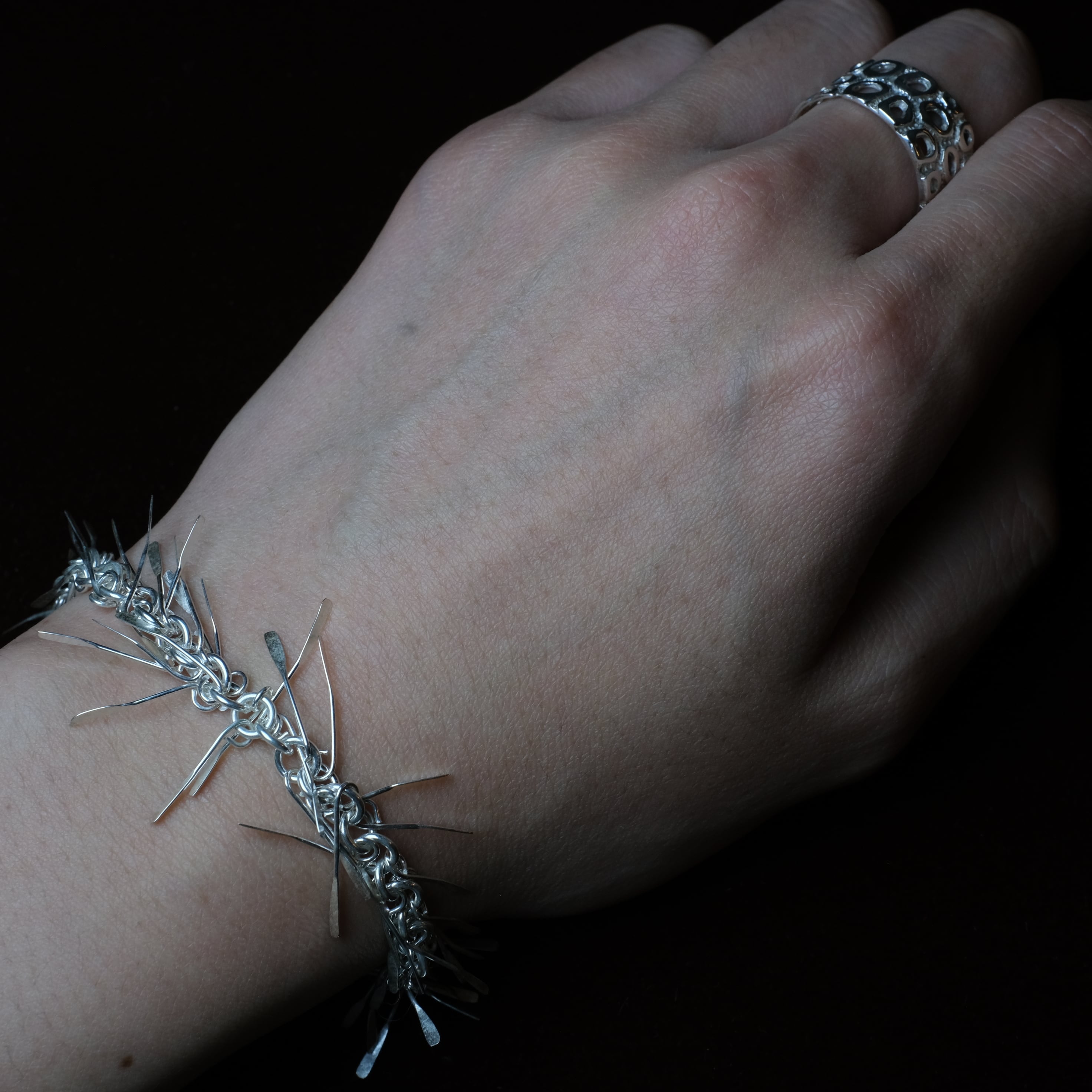 棘のような、ユニークなデザインが特徴的な逸品です。(着け心地に問題はございません。)
