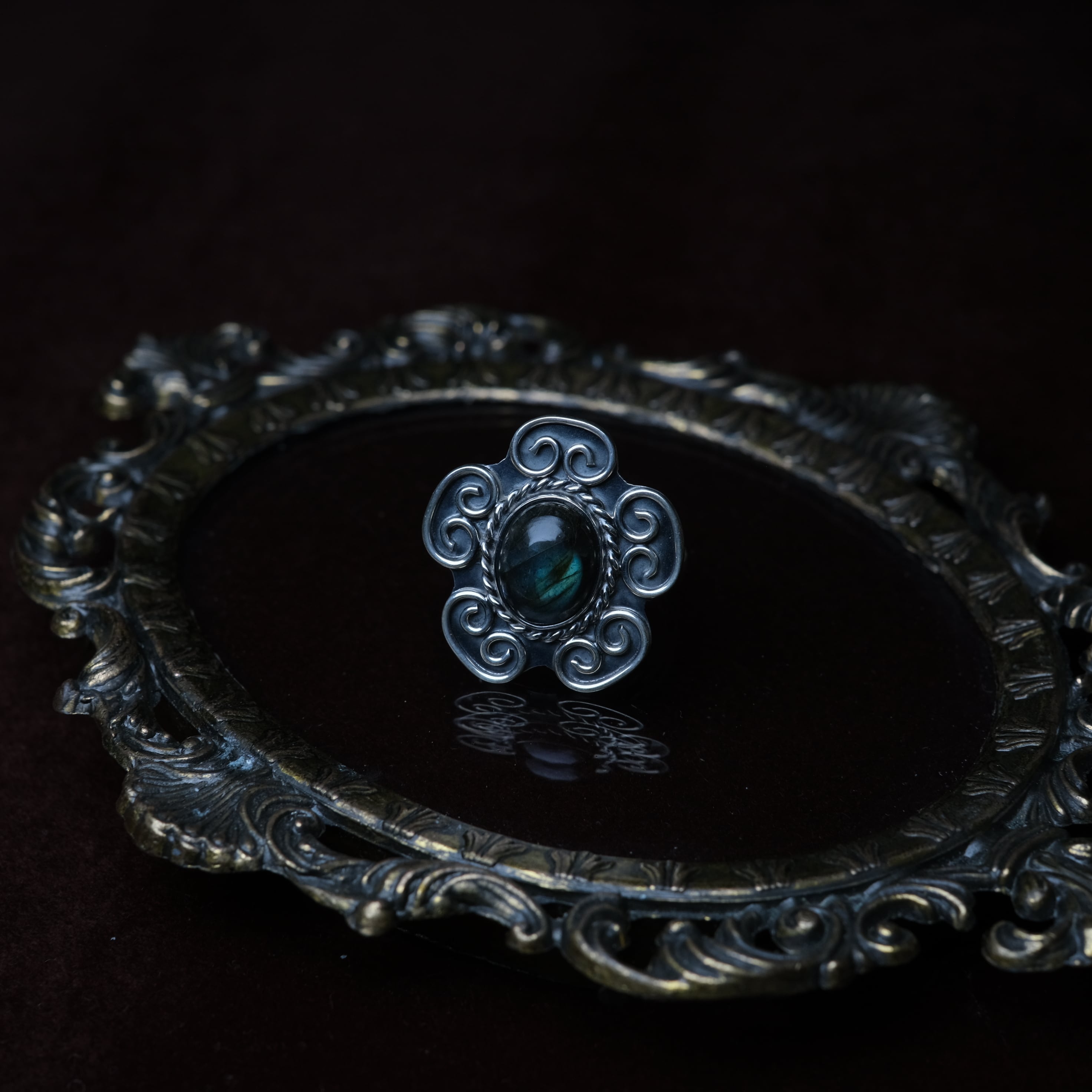 Mexican Jewelry/Made in Taxco/Silver950 ラブラドライト燻しリング