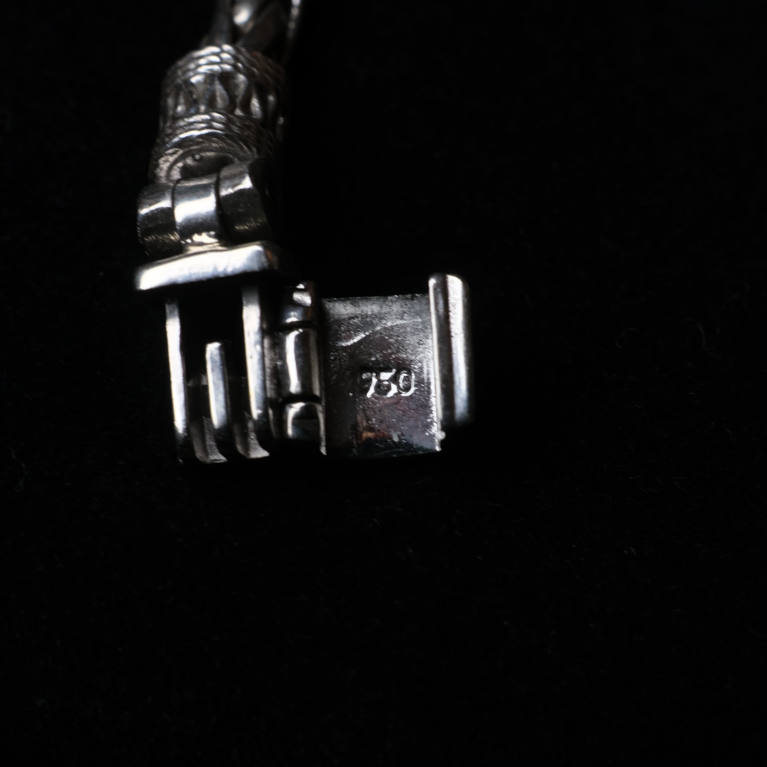 複数のシルバー線を撚り合わせたチェーンは、滑らかな立体感としなやかな動きを併せ持ち、手元に自然な存在感を与えます。