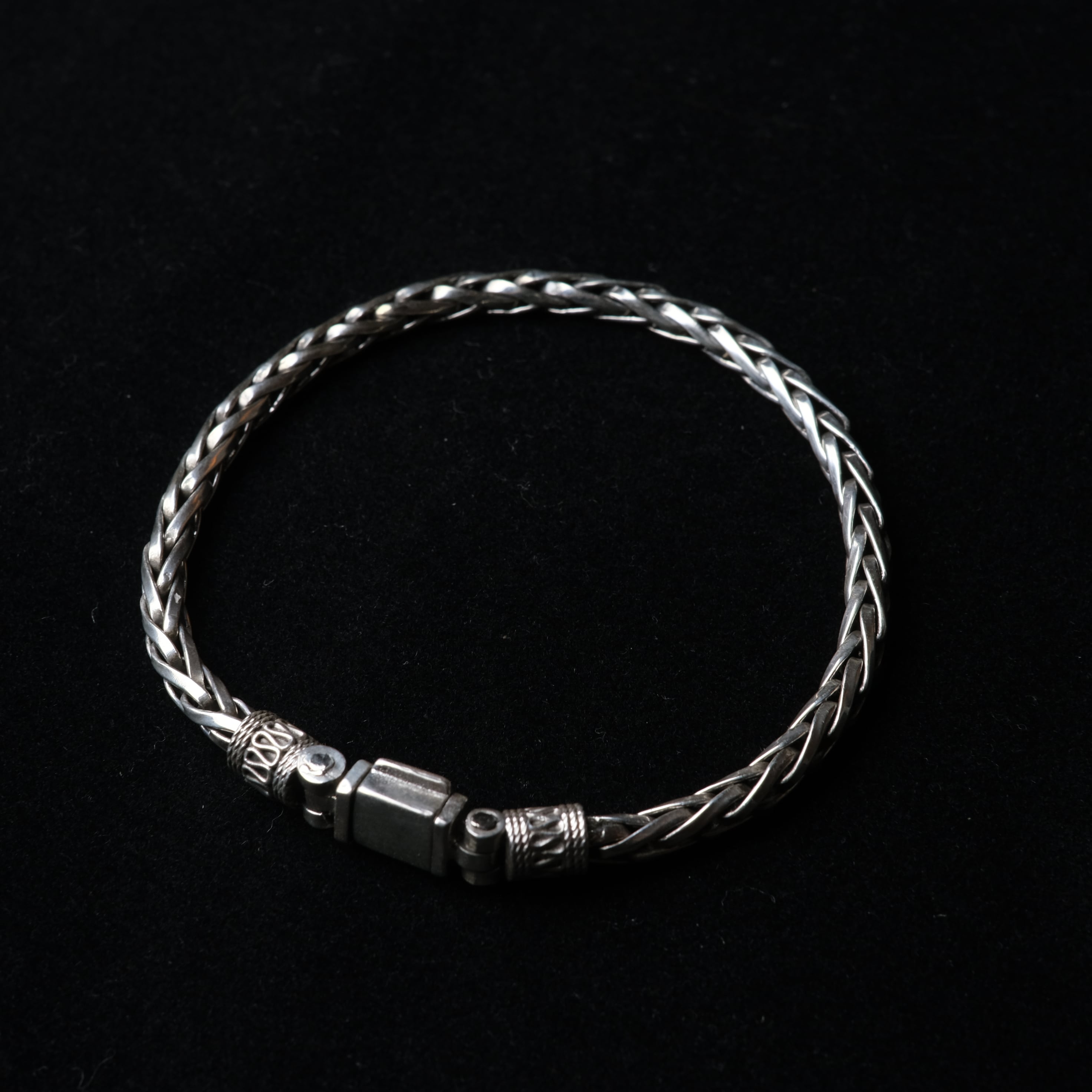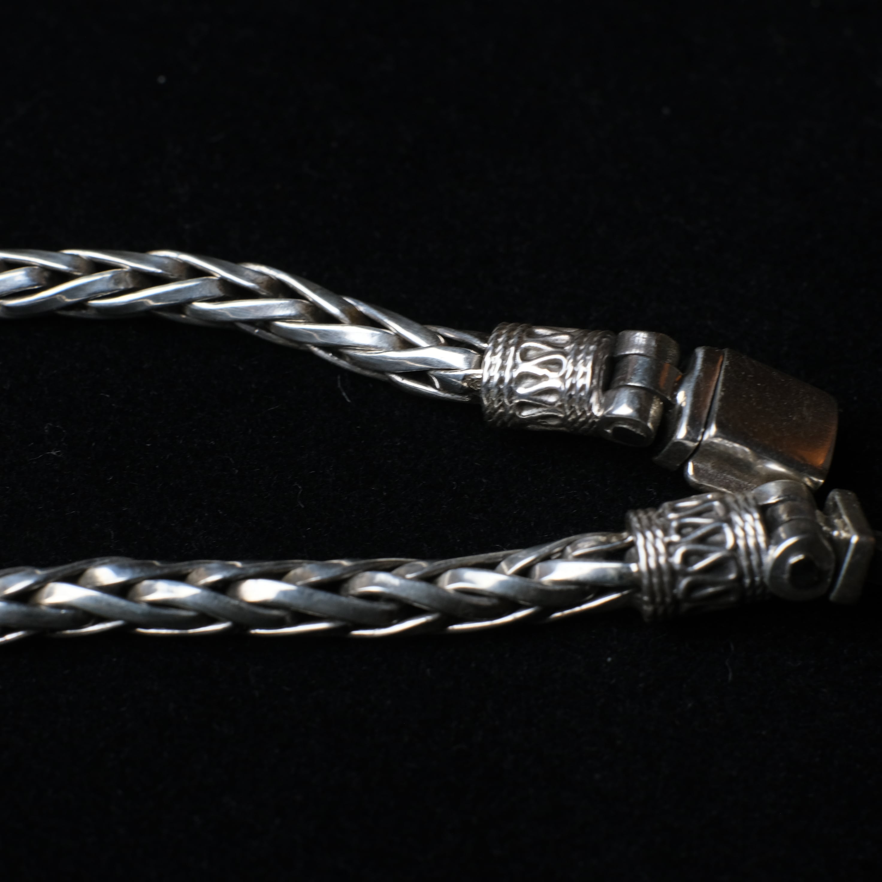 Mexican Jewelry/Made in Taxco/Silver925 編み込み燻しチェーンブレスレット
