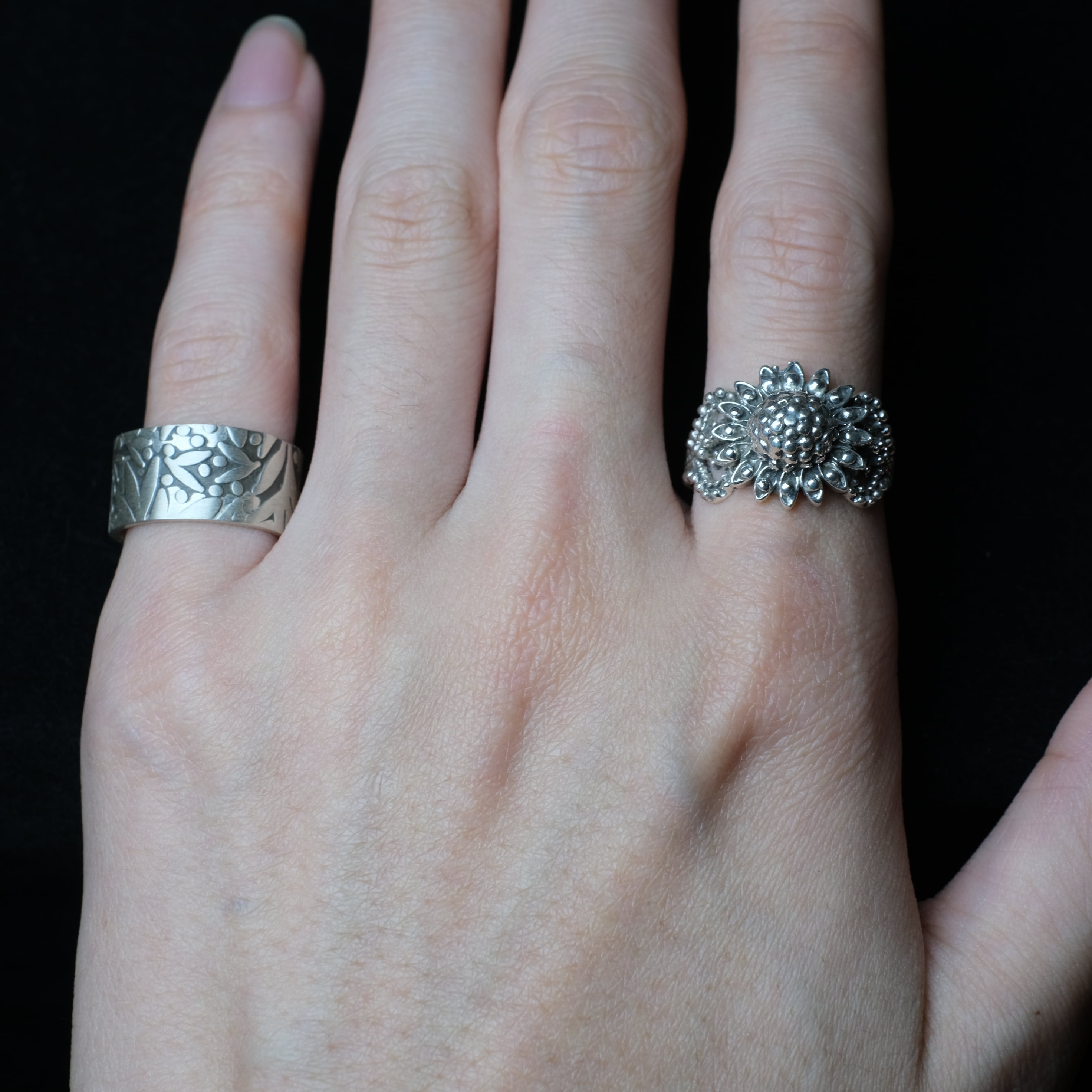 繊細で立体感のある花びらを再現した、シルバーリングになります。
