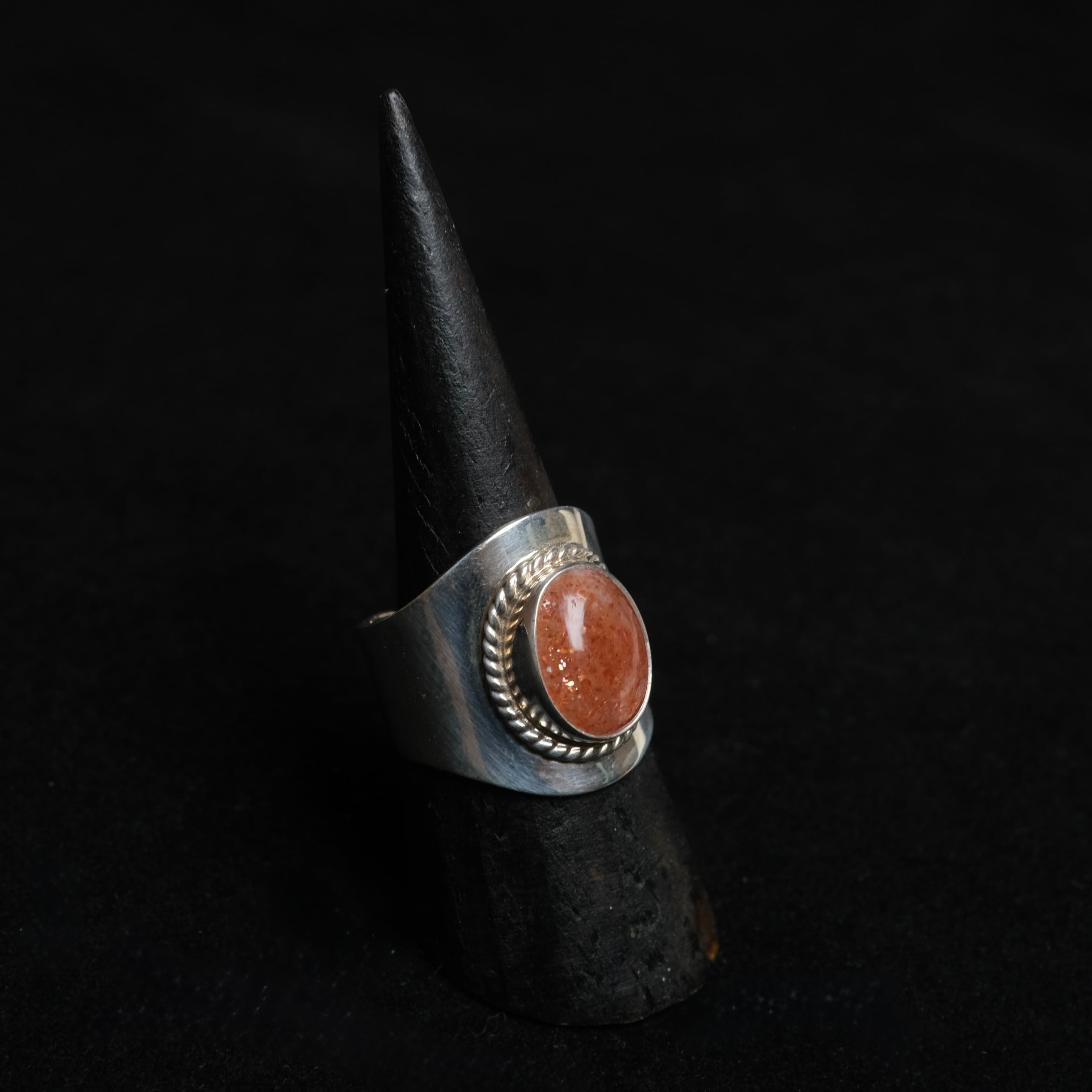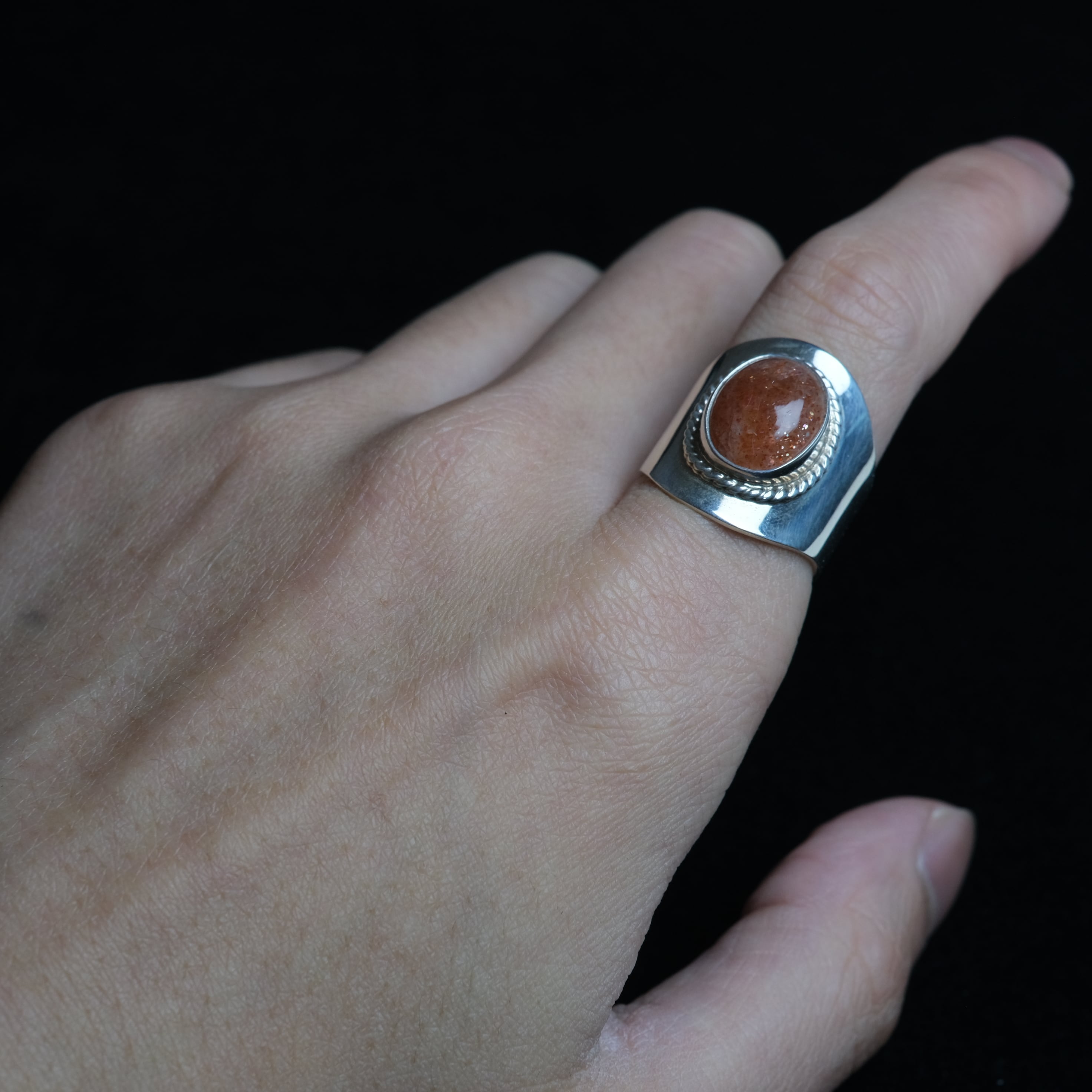 太陽のようにメラメラと光り輝く、サンストーンを用いたシルバーリングになります。
