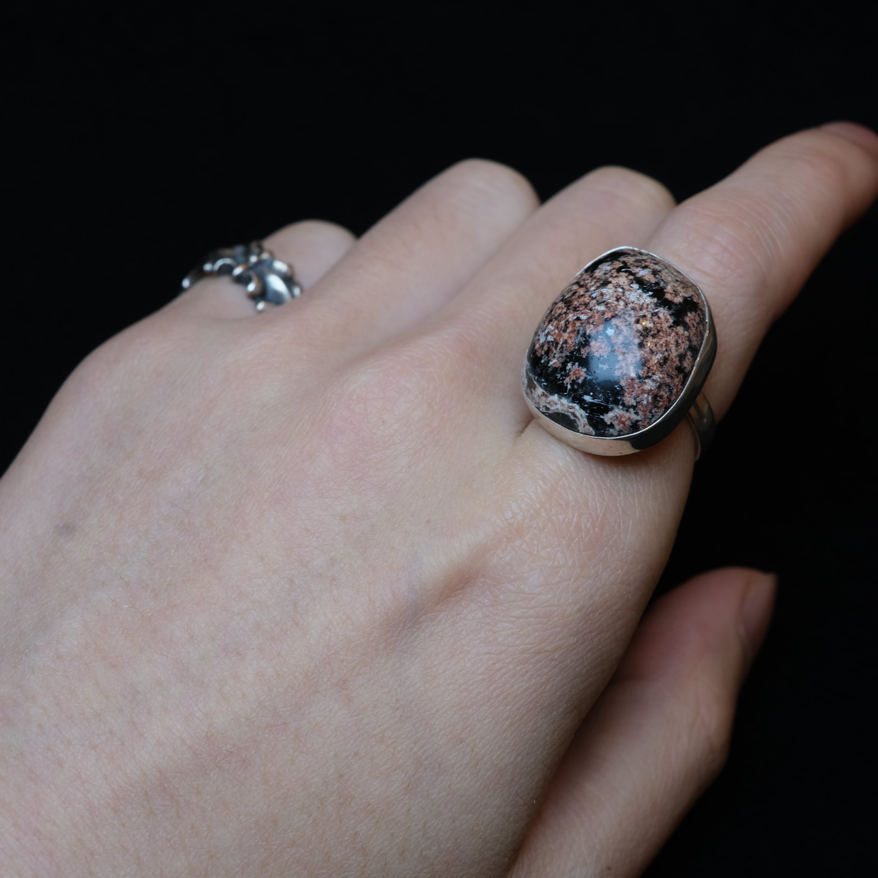 Mexican Jewelry/Made in Taxco/Silver925 ファイヤーワークスオブシディアンリング