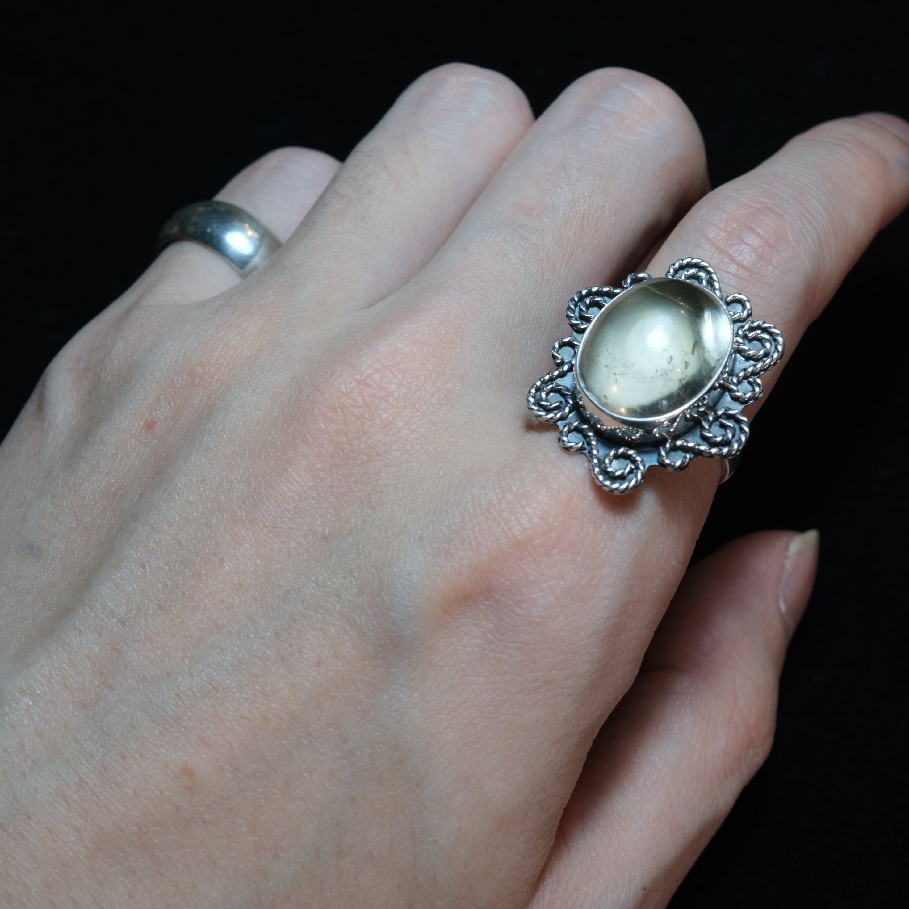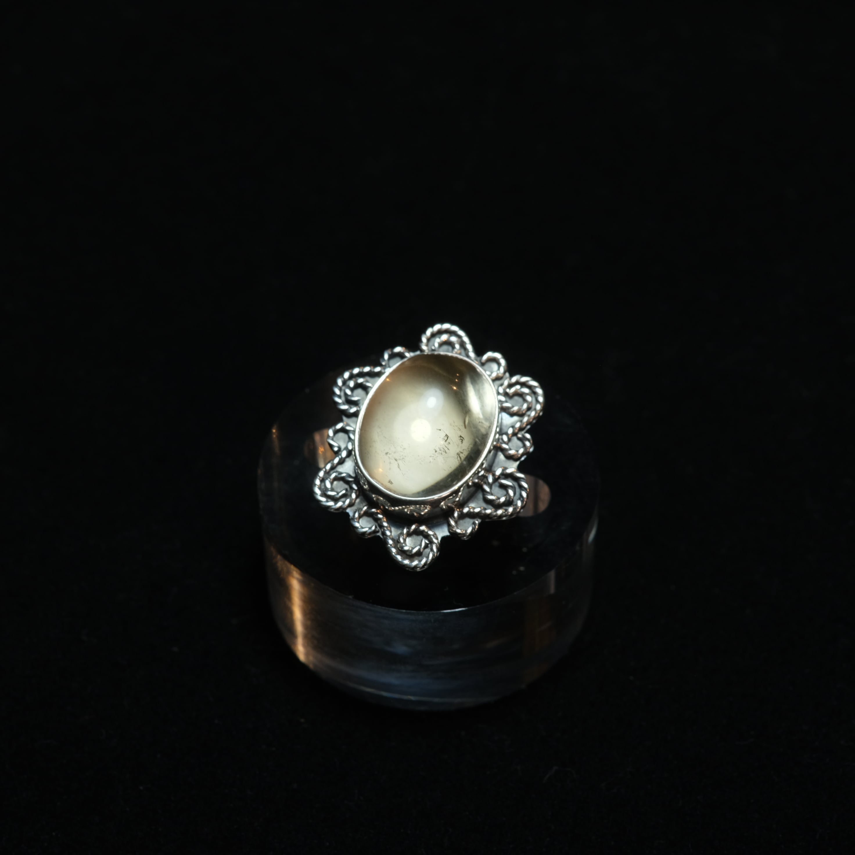 美しい黄色が特徴的なシトリンを用いており、周りの装飾も繊細に作り上げられおります。