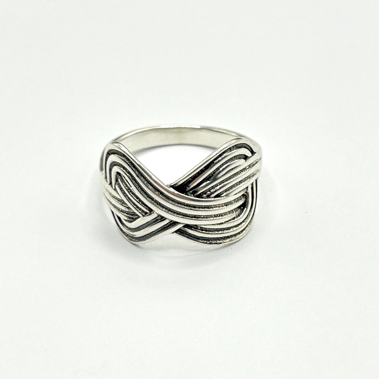 【商品概要】 ユニーク性のある編み込みデザインリングになります。 素材: "SILVER 925(Sterling Silver)" サイズ: "16号" 重量: "3.41g" 太さ(最大幅): "13mm" ※配送料は全品無料です。 ※ご購入の際は、サイズをご確認ください。