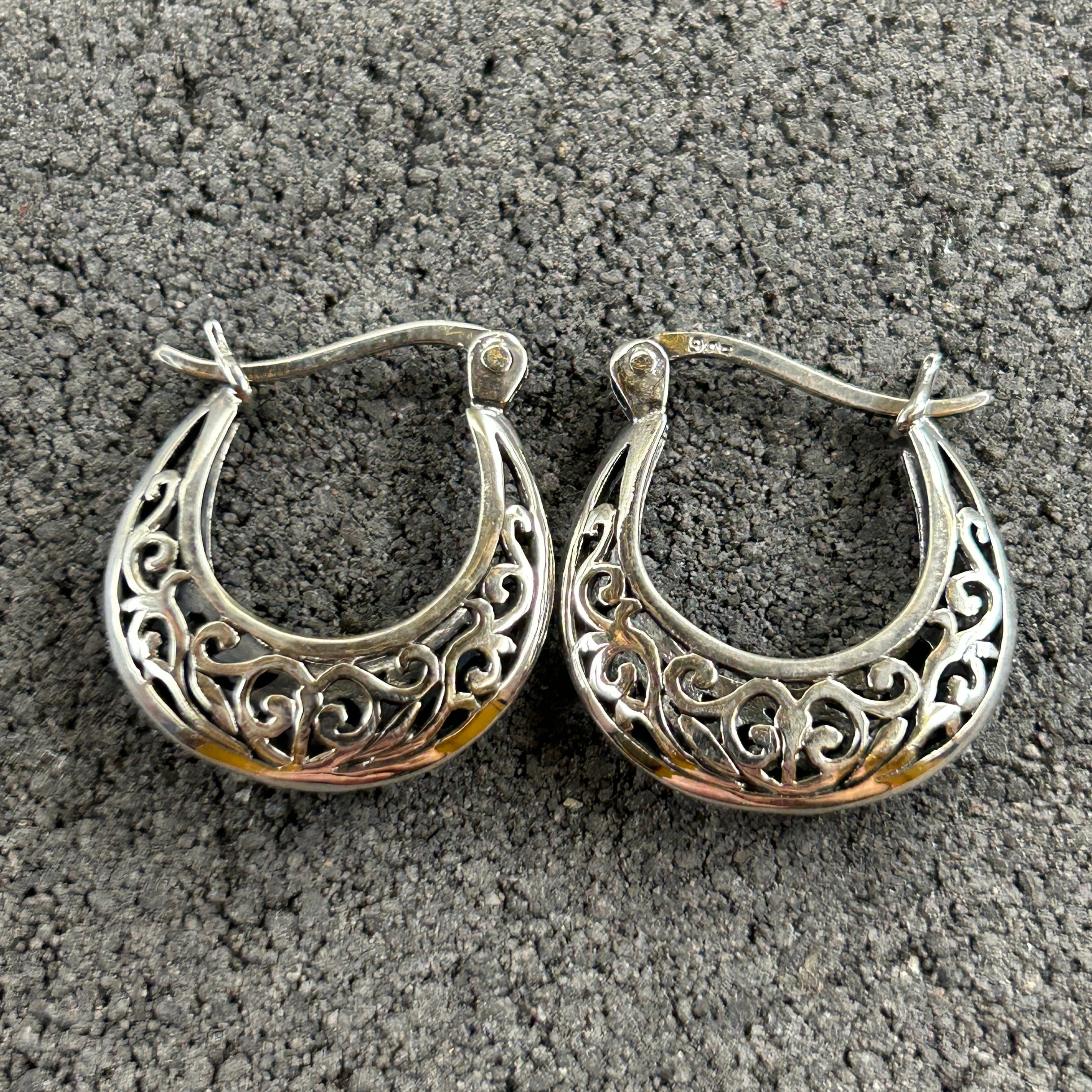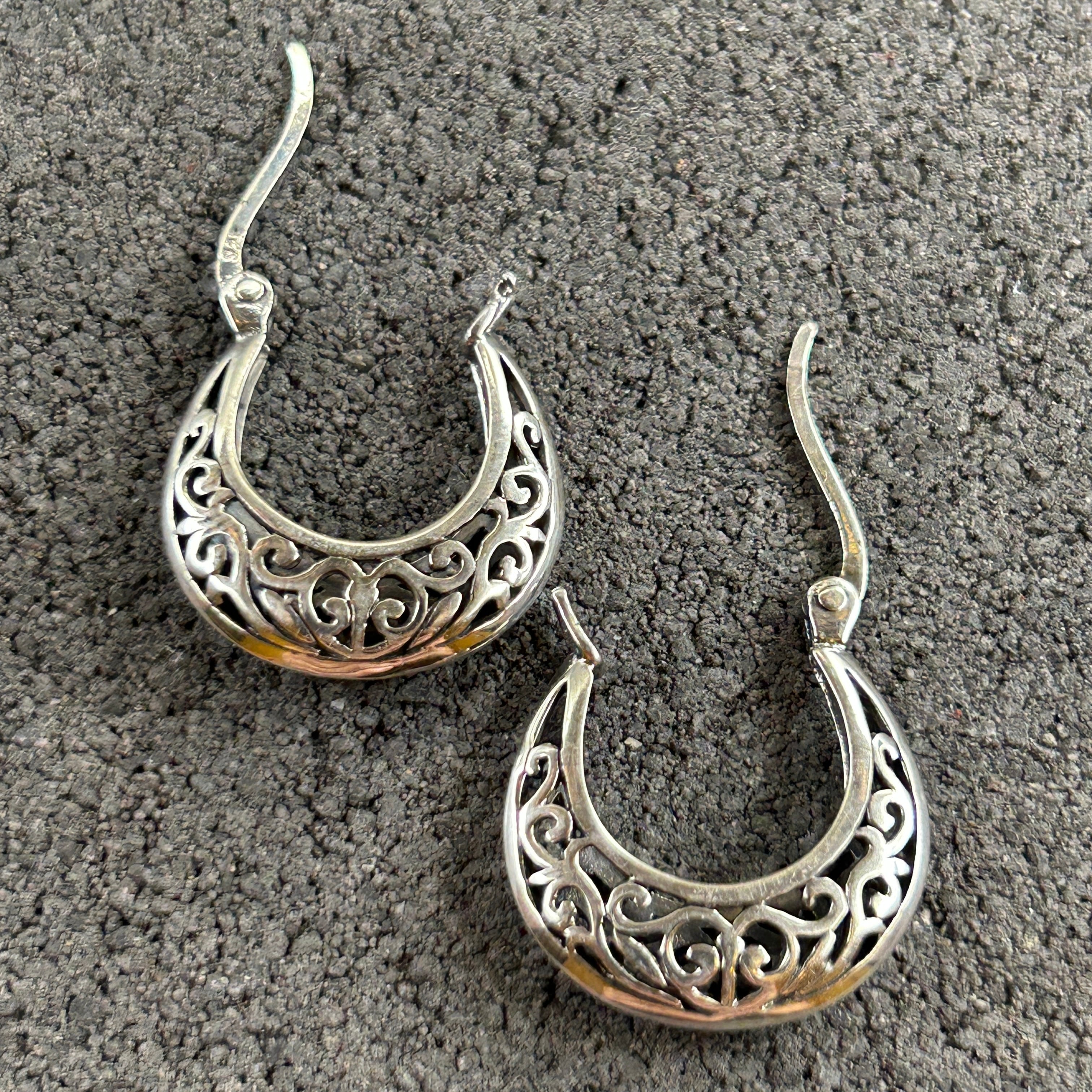 シルバー925 Silver ビッグネイティブデザインピアス/透かし/両耳