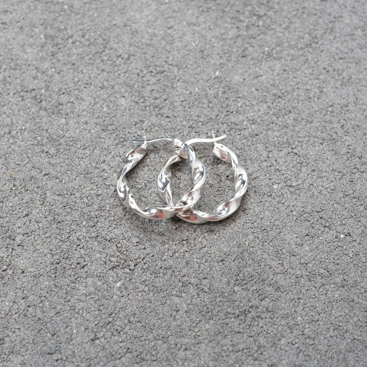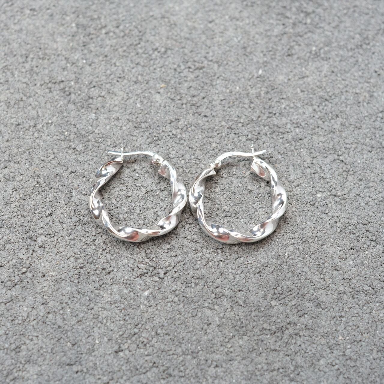 シルバー925 Silver ワイドツイストフープピアス/軽研磨仕上げ/両耳