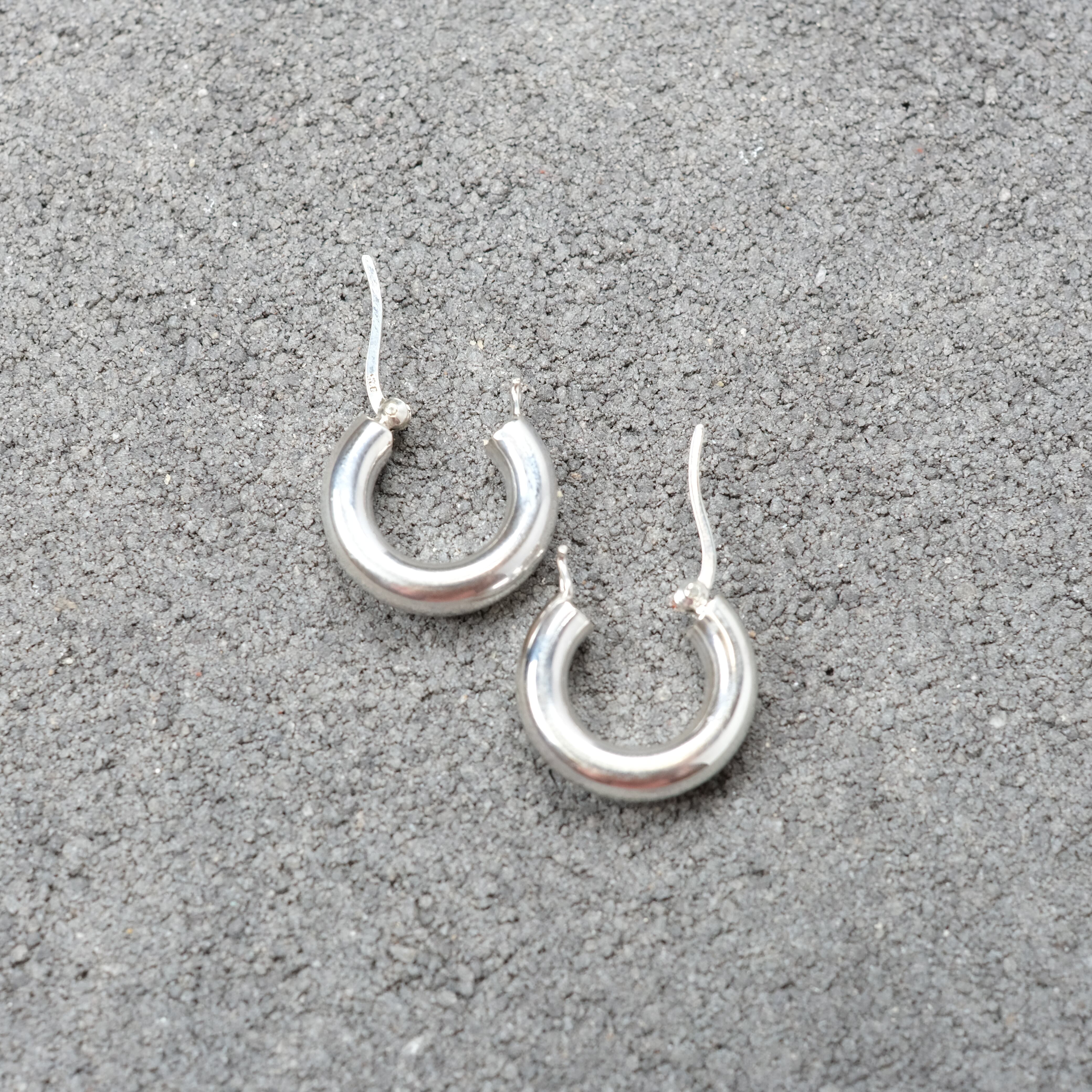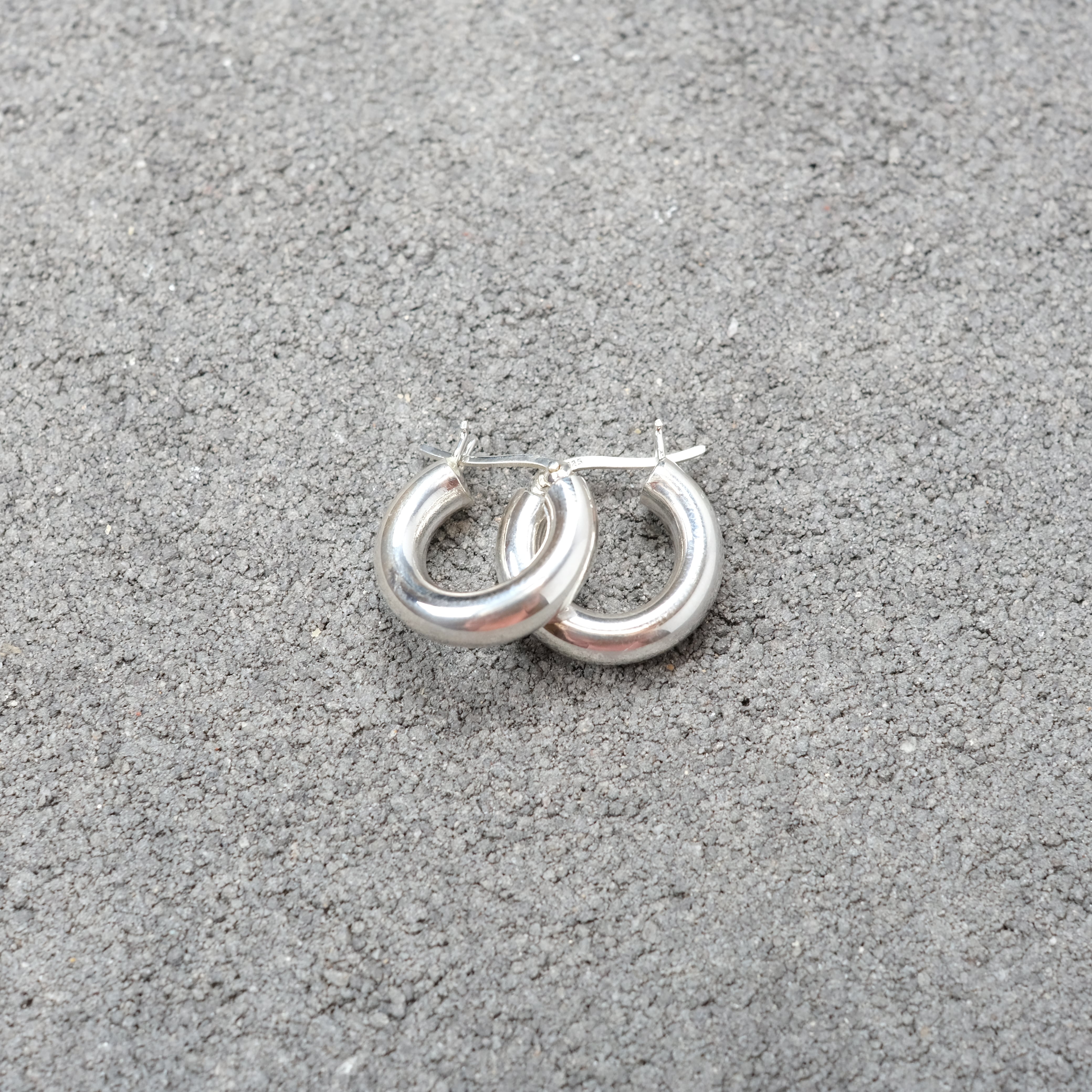 シルバー925 Silver シンプルフープピアス/太め/軽研磨仕上げ/両耳