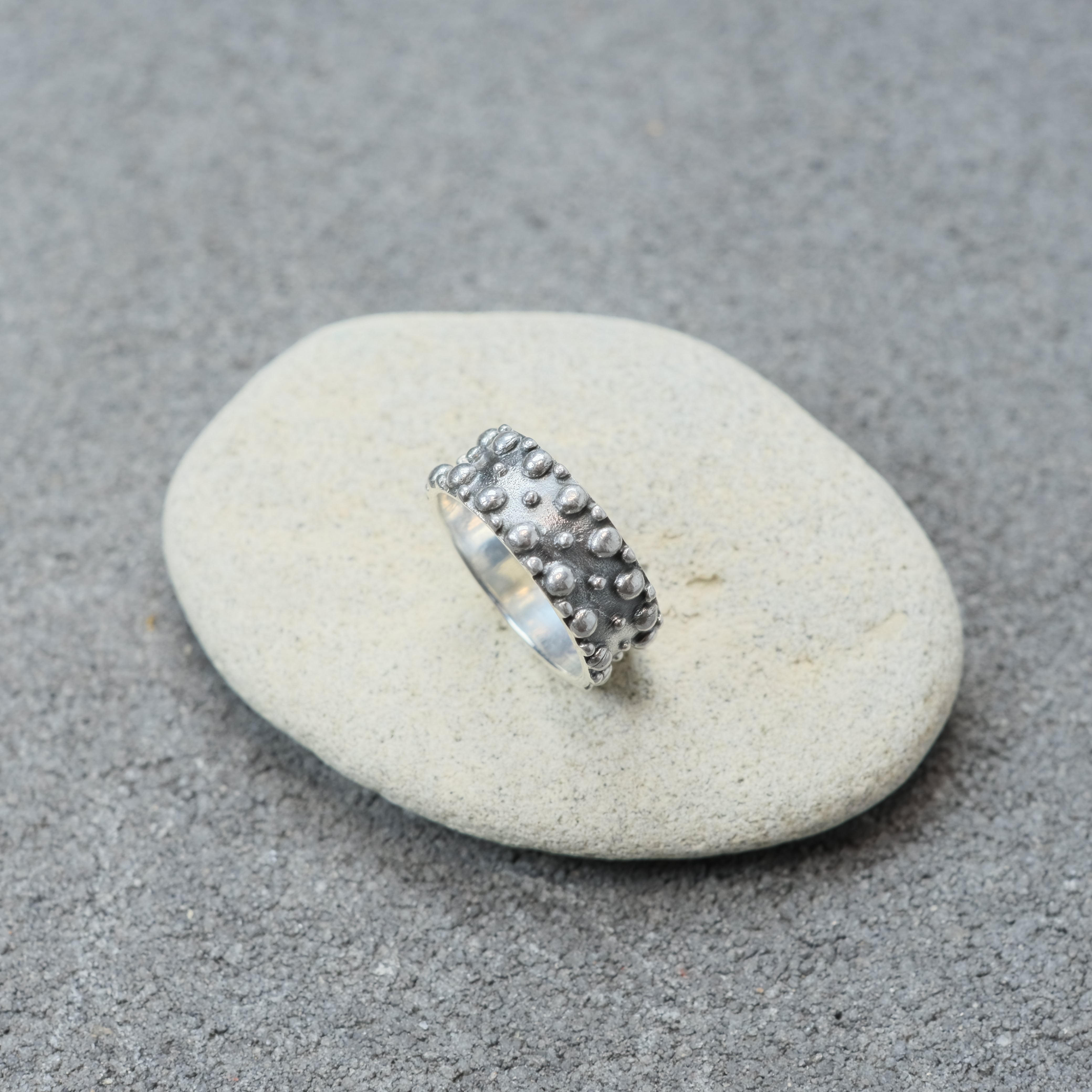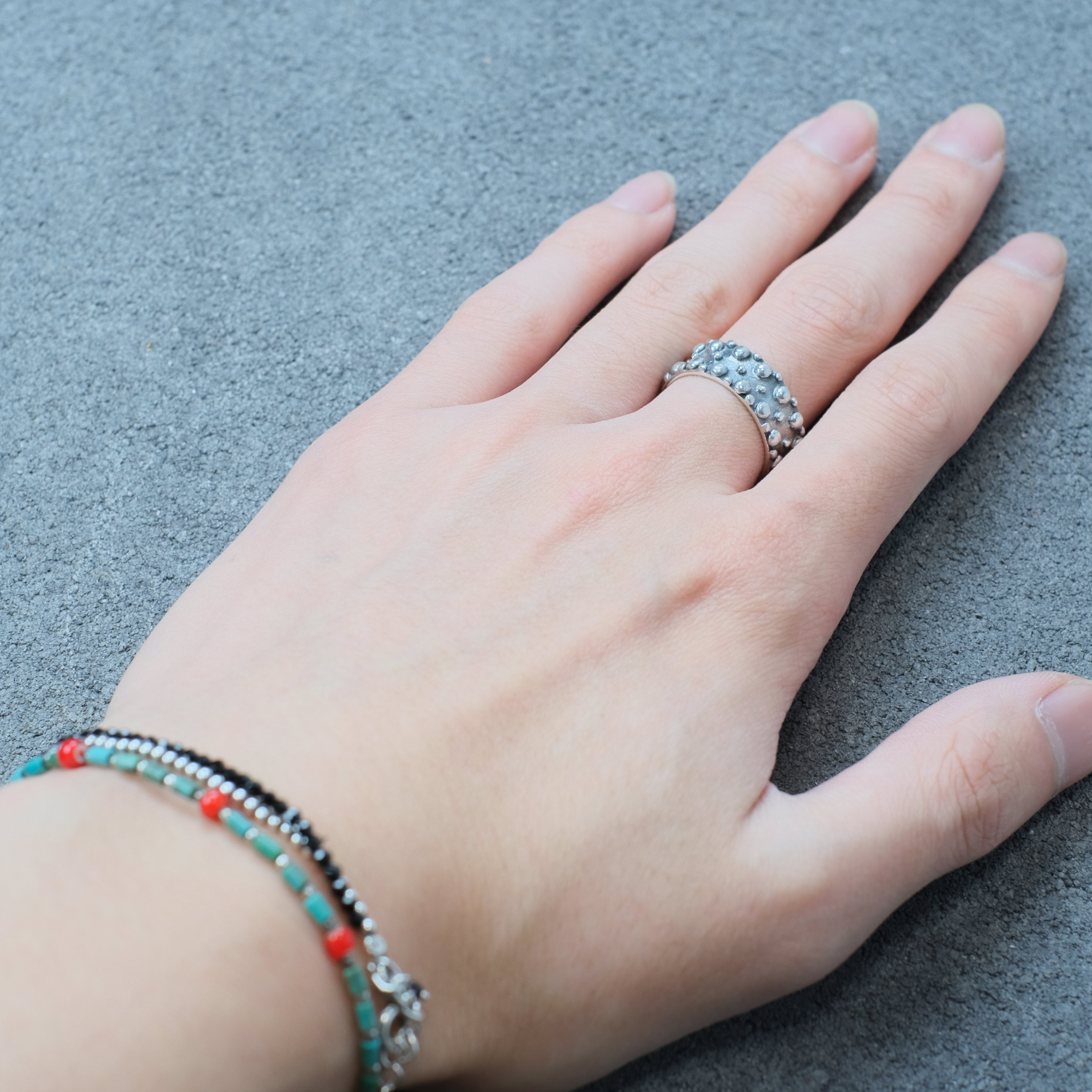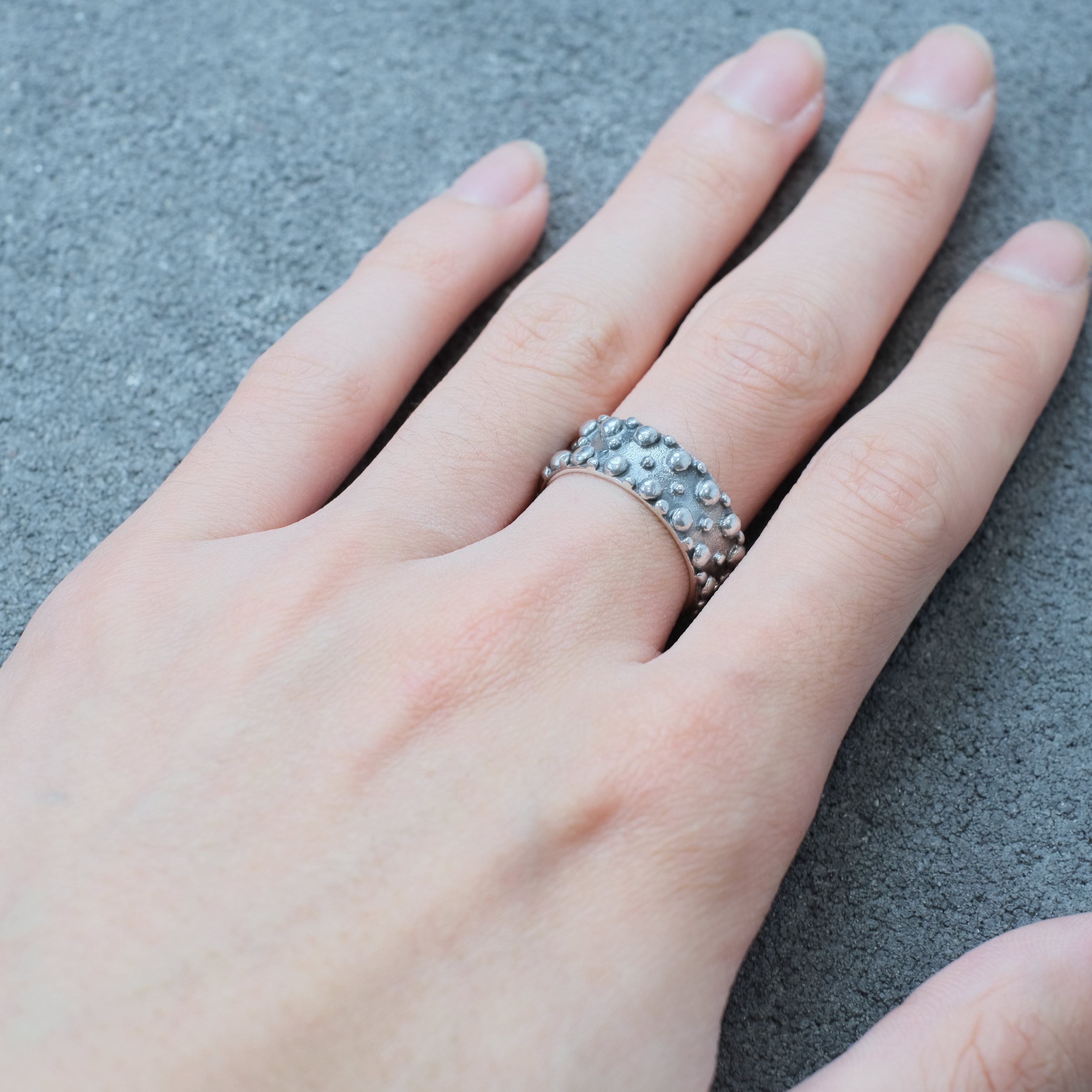 シルバー925 Silver 総柄いぶしデザインリング/軽研磨仕上げ/18号