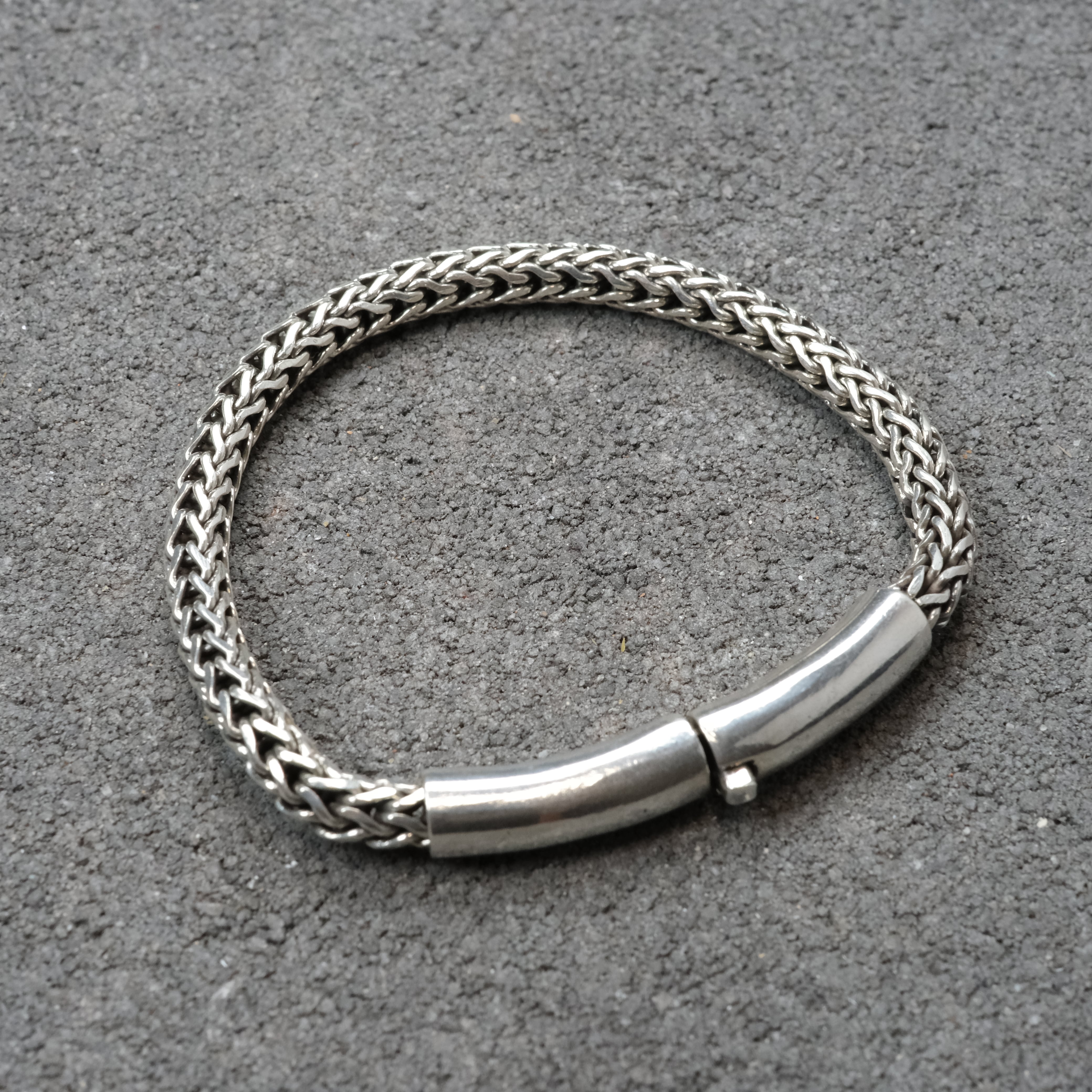 特徴:編み込みデザインのシルバーブレスレットになります。