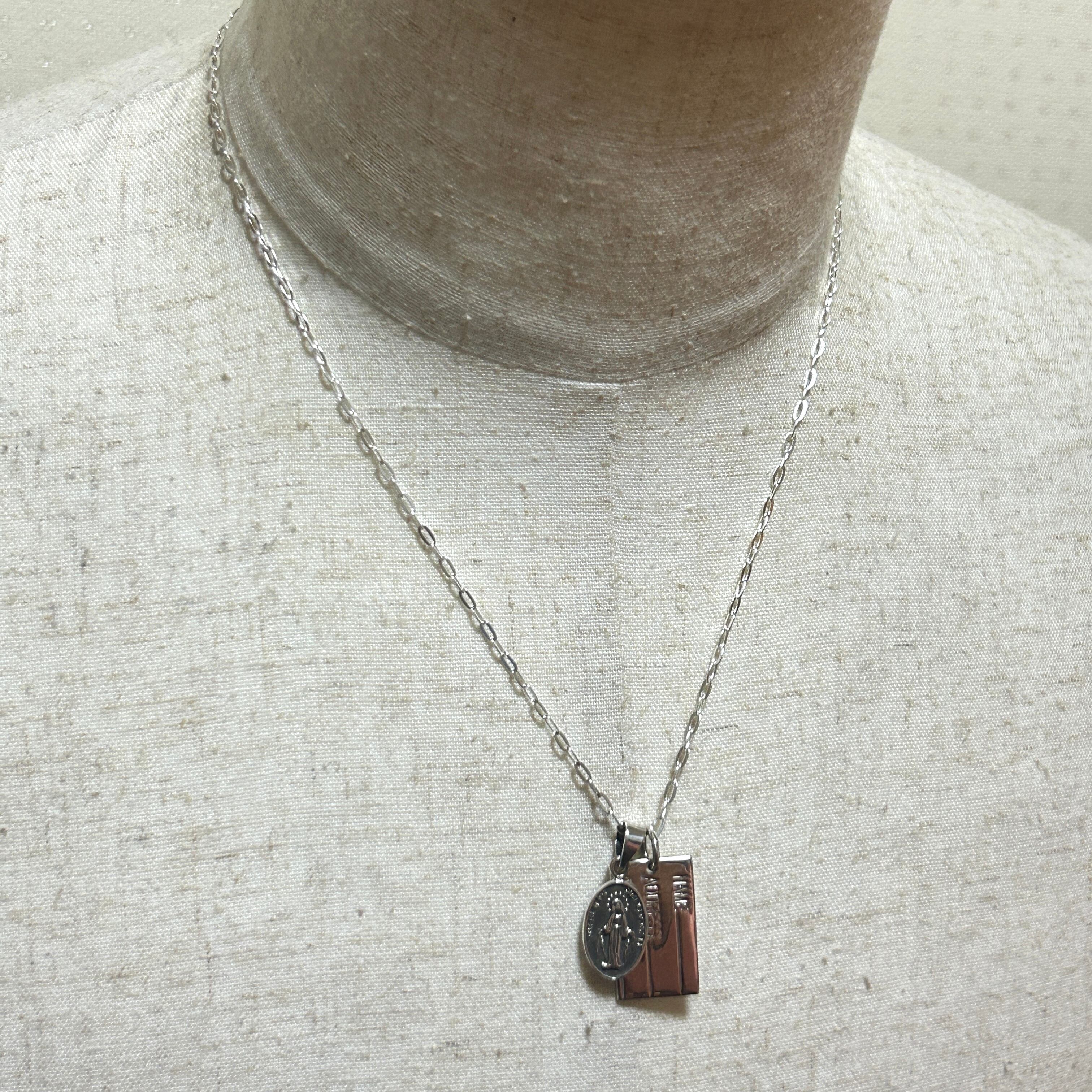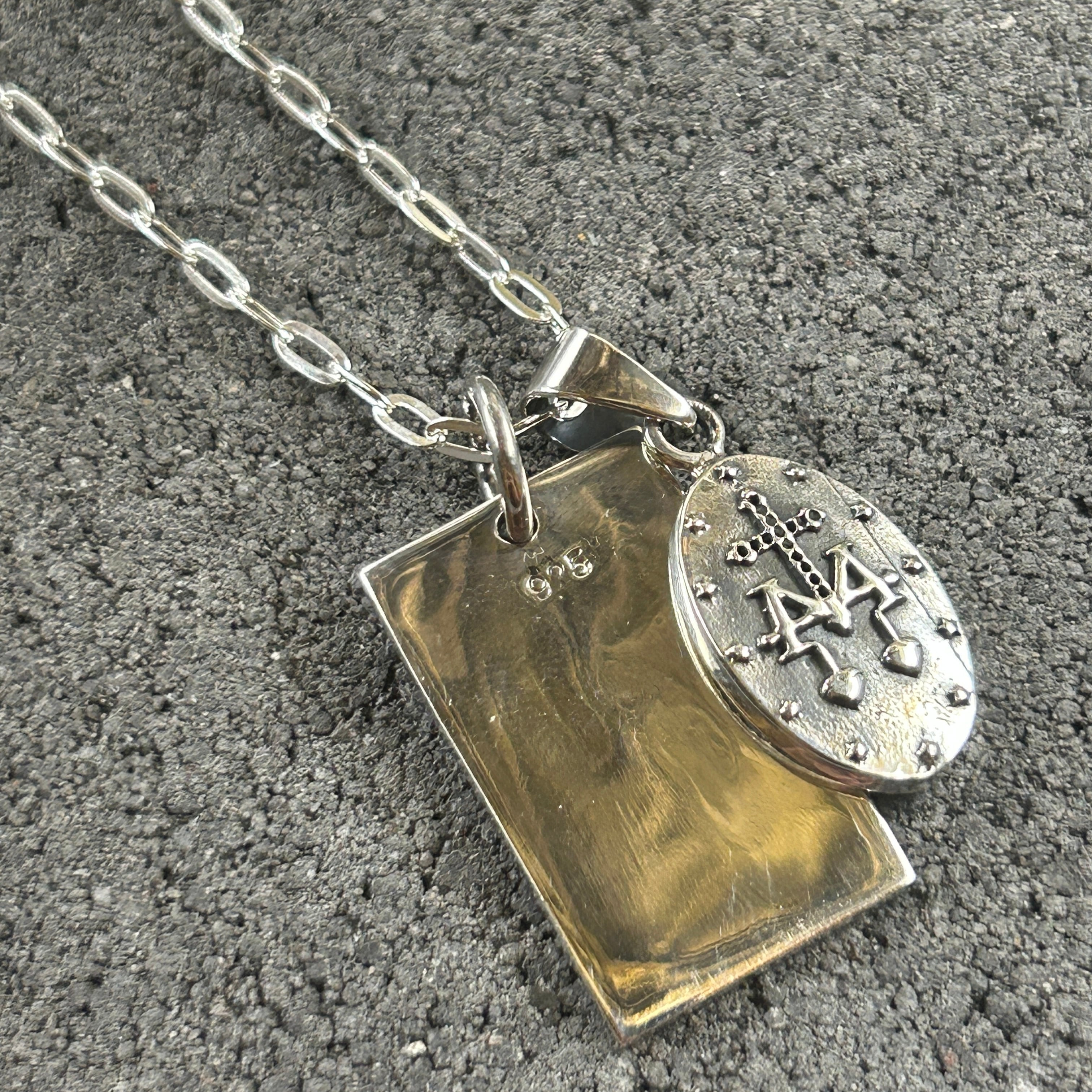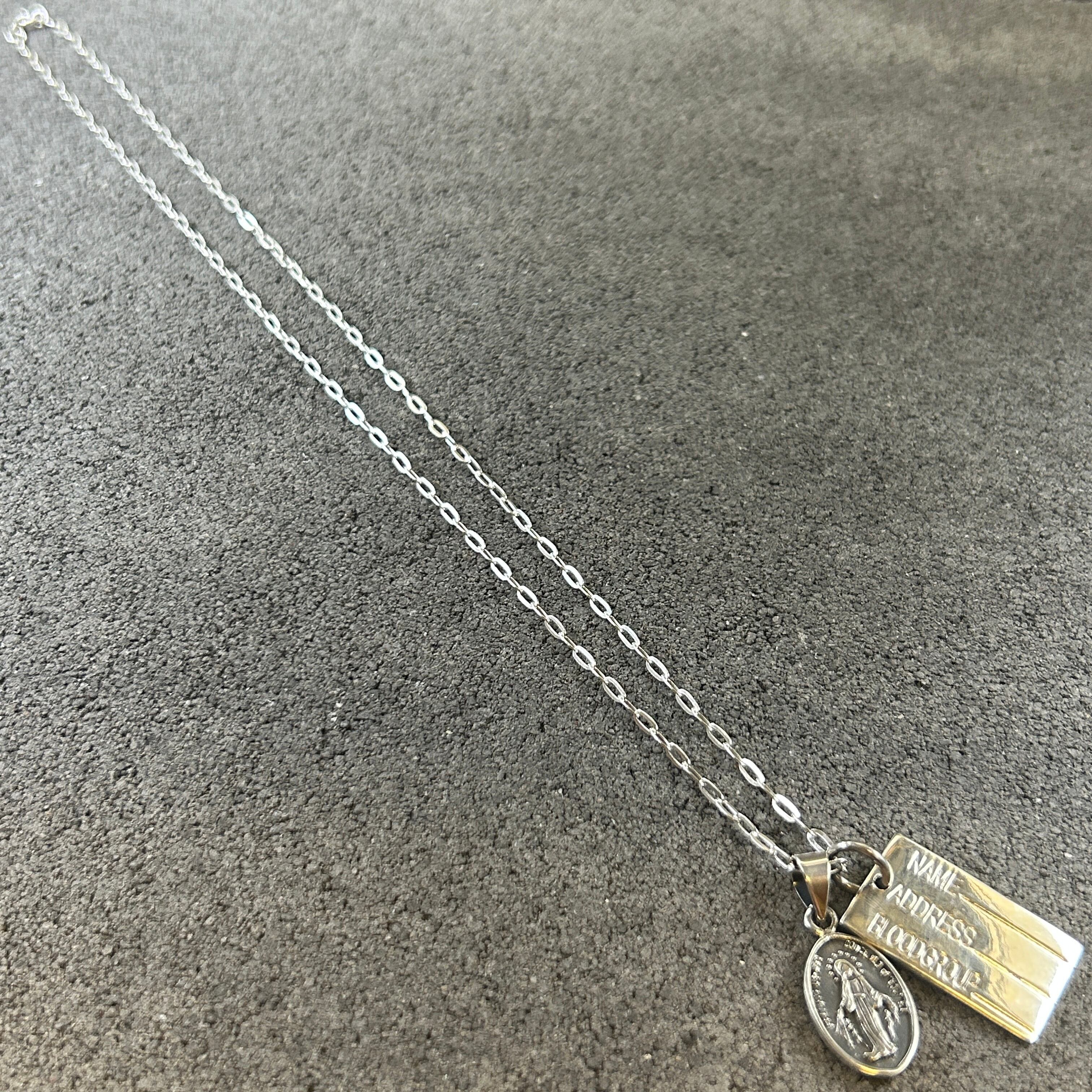 シルバー925 Silver ドッグタグ×マリアデザインネックレス/軽研磨仕上げ