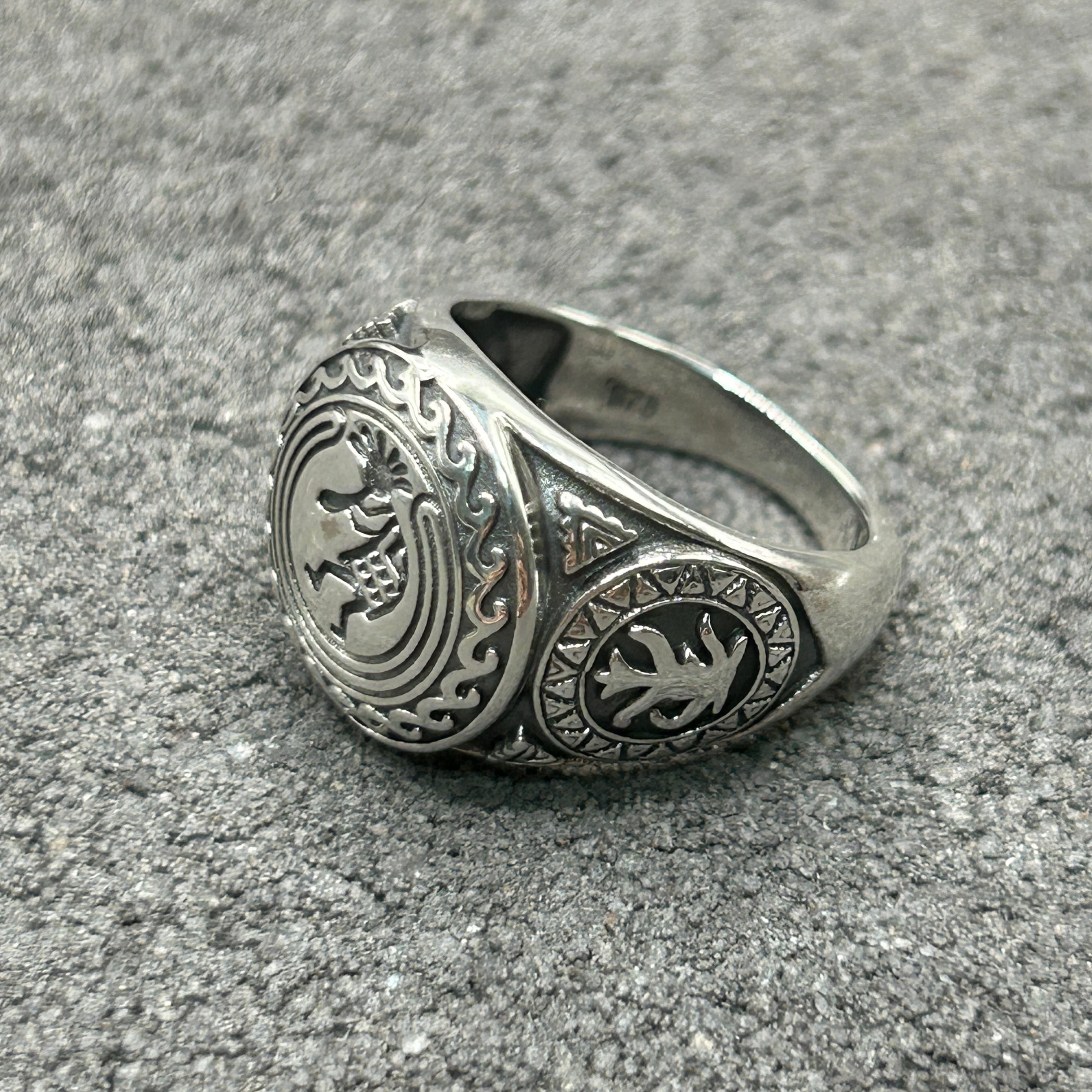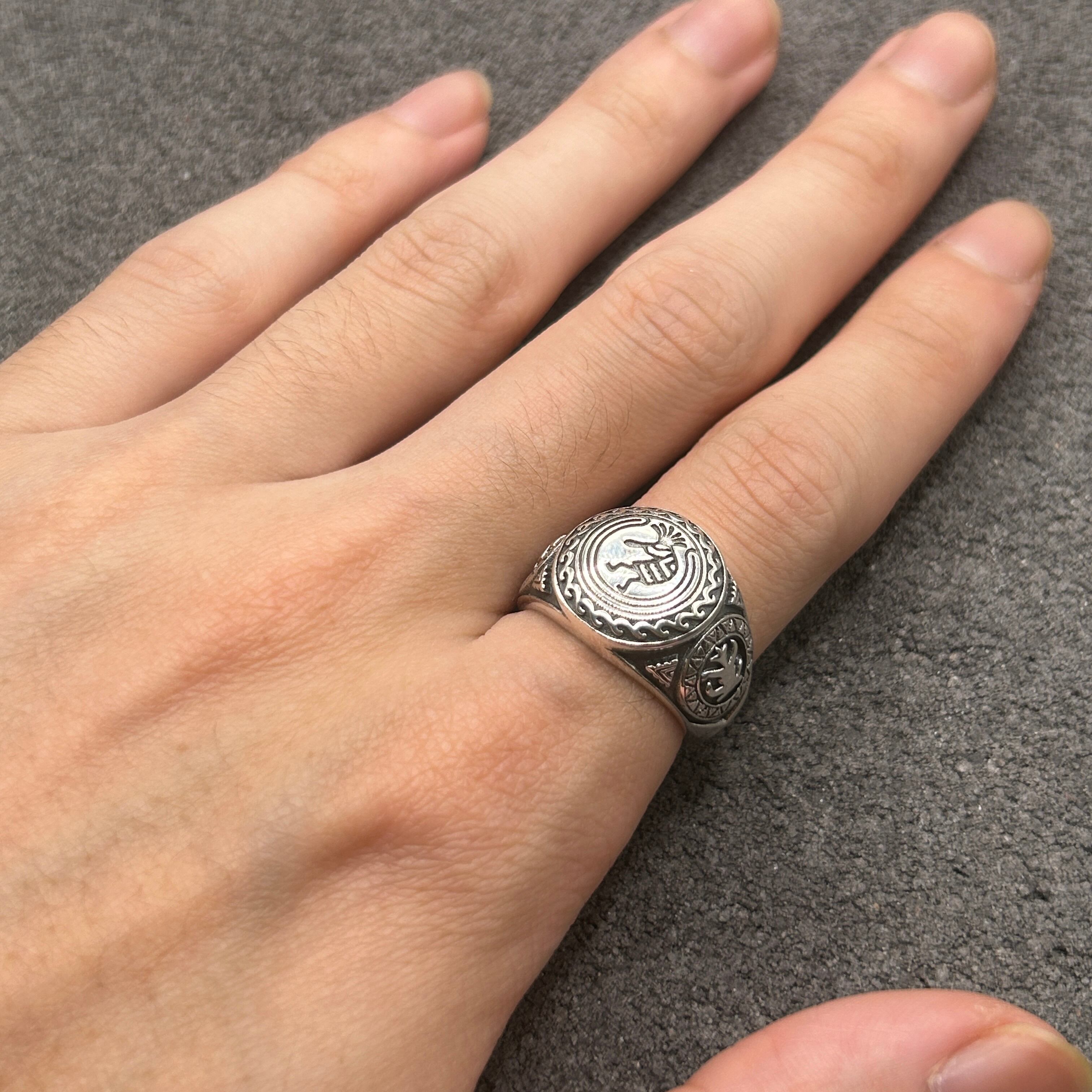 ネイティブインディアンの精霊、ココペリがデザインされたシルバーリングになります。、