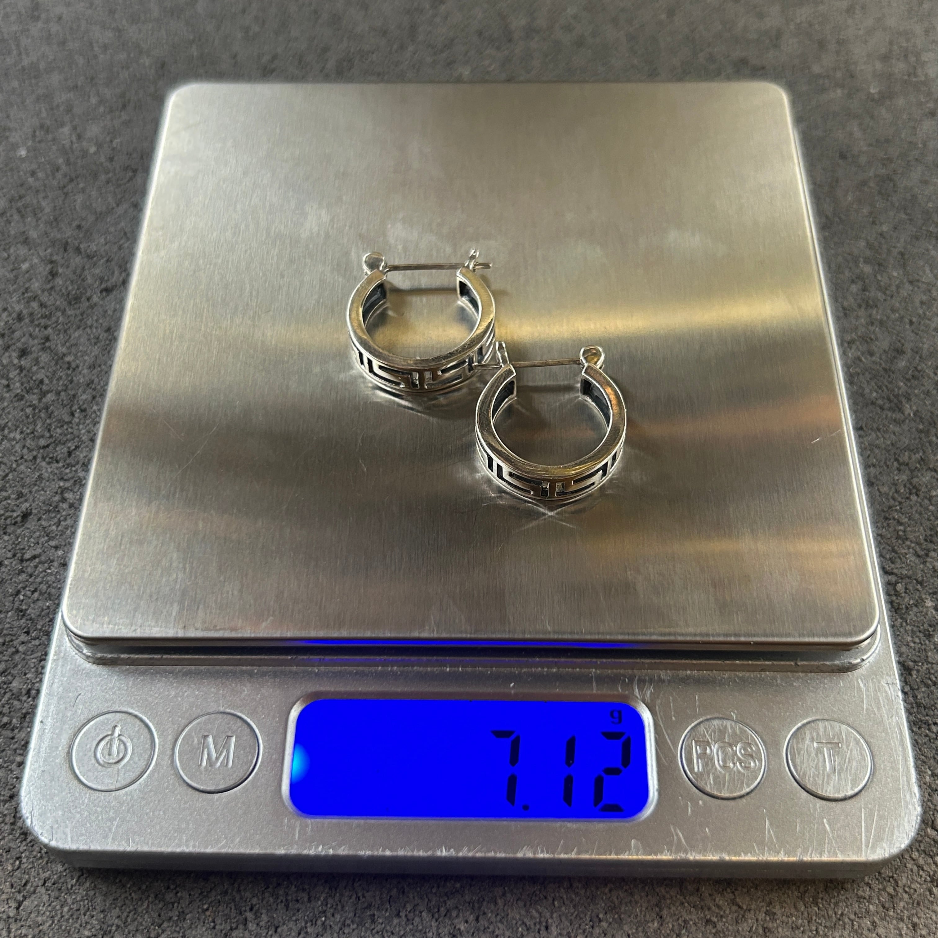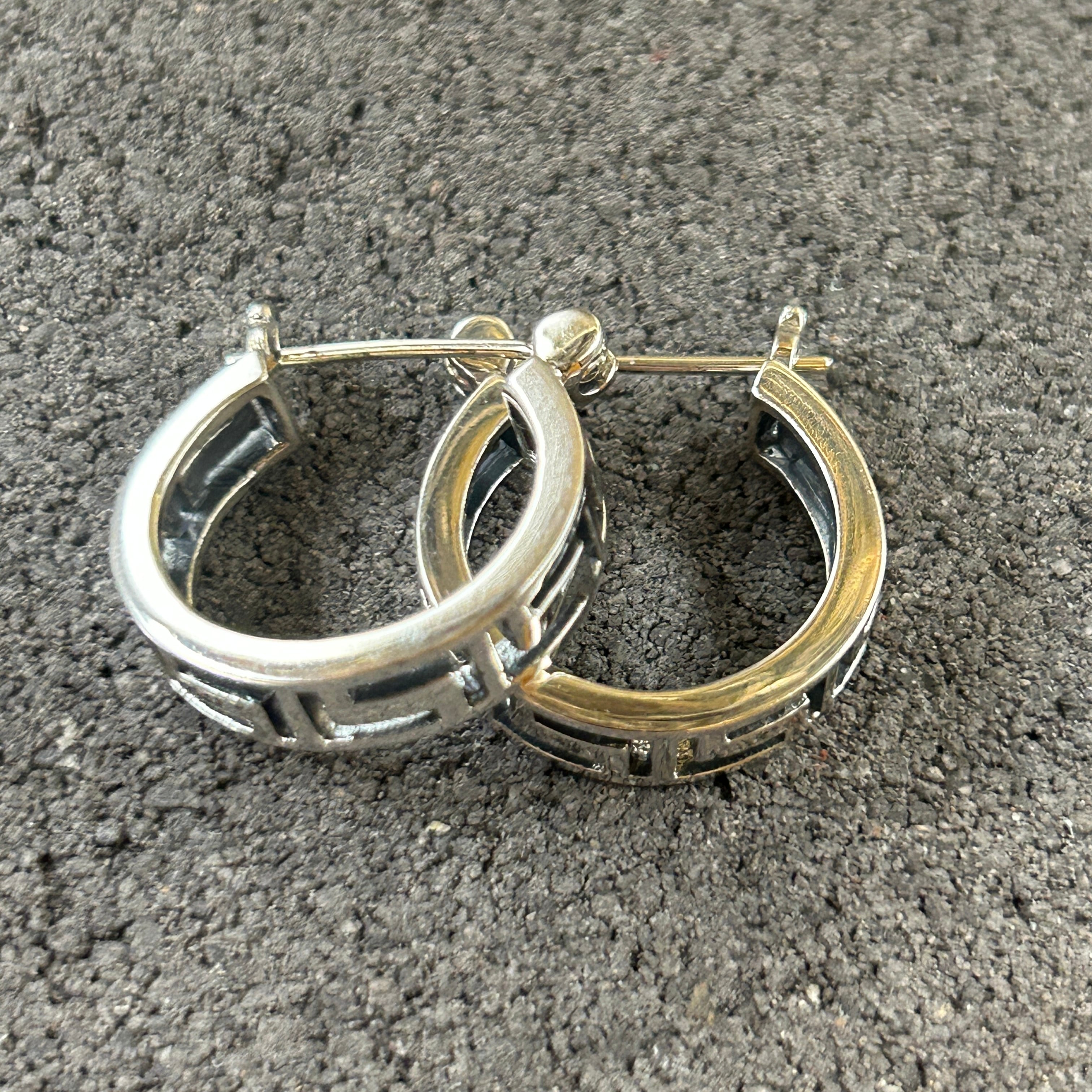 シルバー925 Silver 幾何学透かしデザインフープピアス/軽研磨仕上/両耳