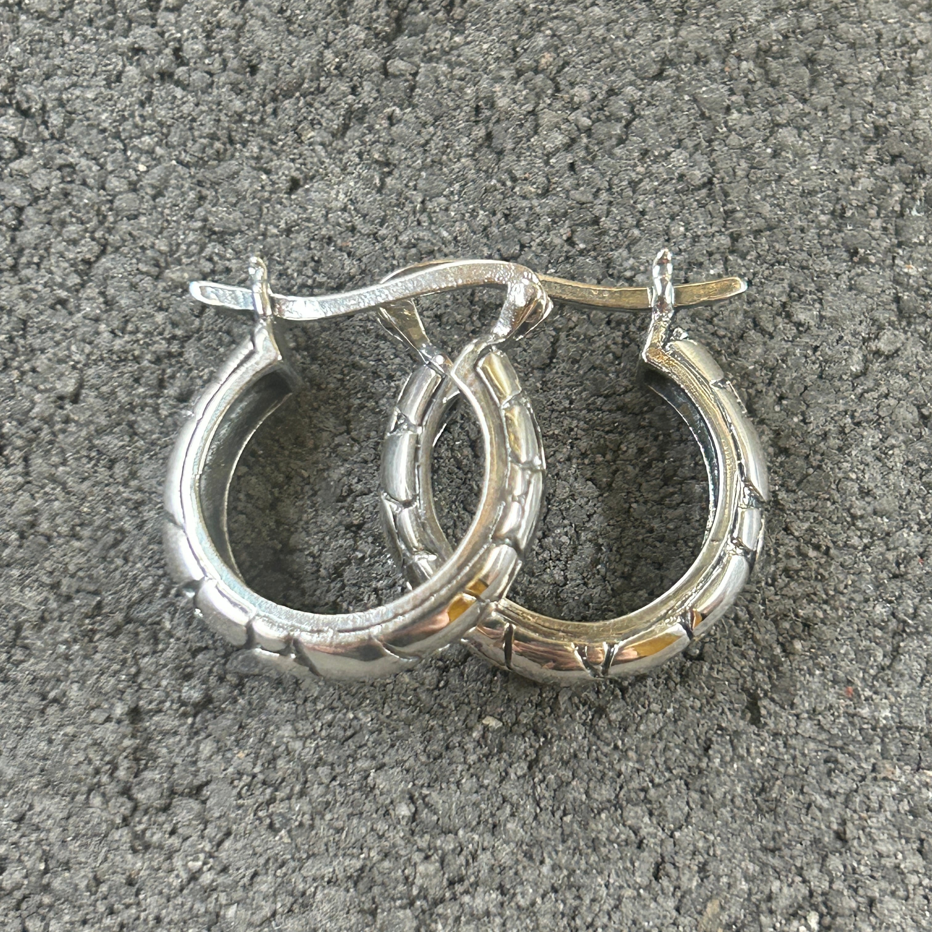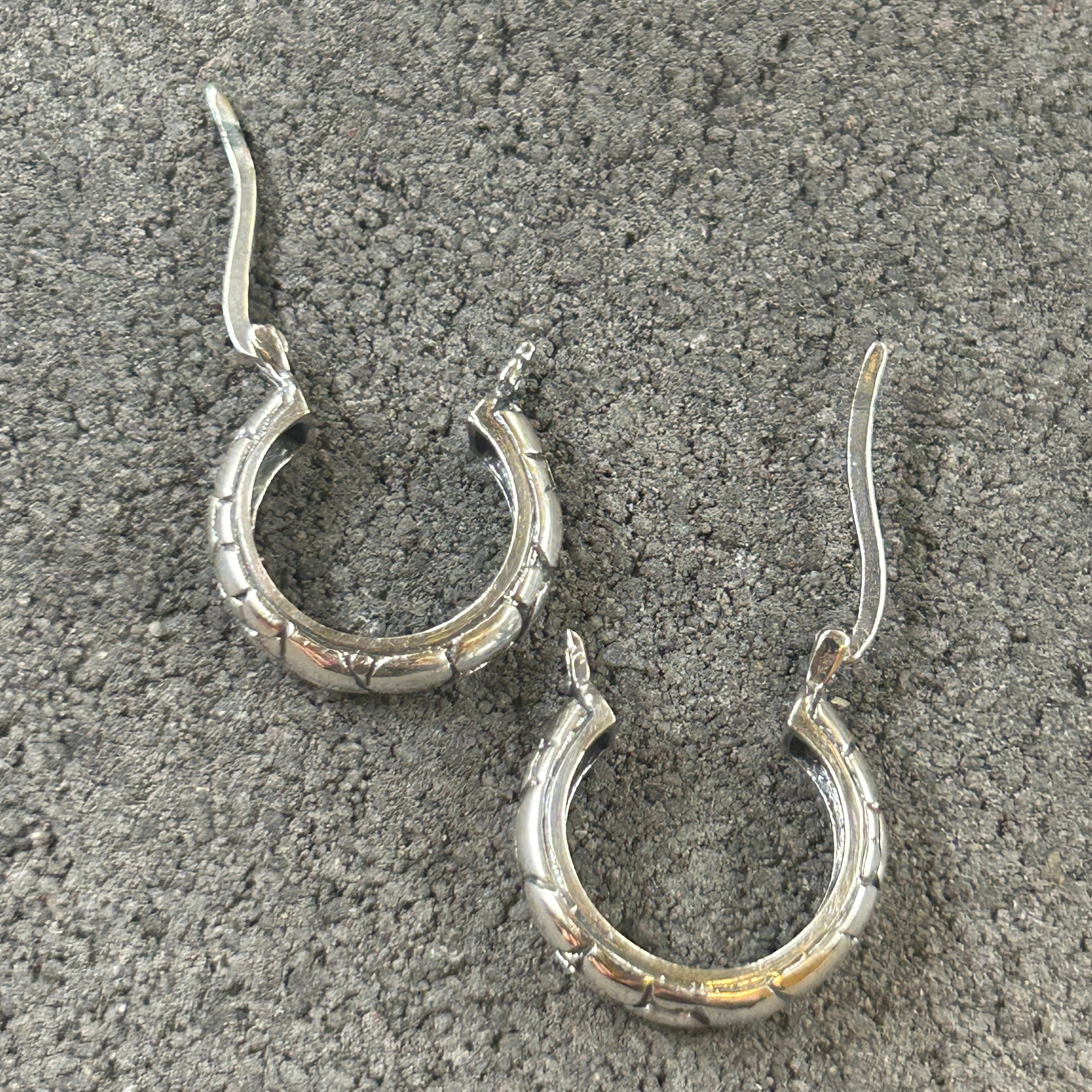 シルバー925 Silver 亀裂デザインフープピアス/軽研磨仕上げ/両耳