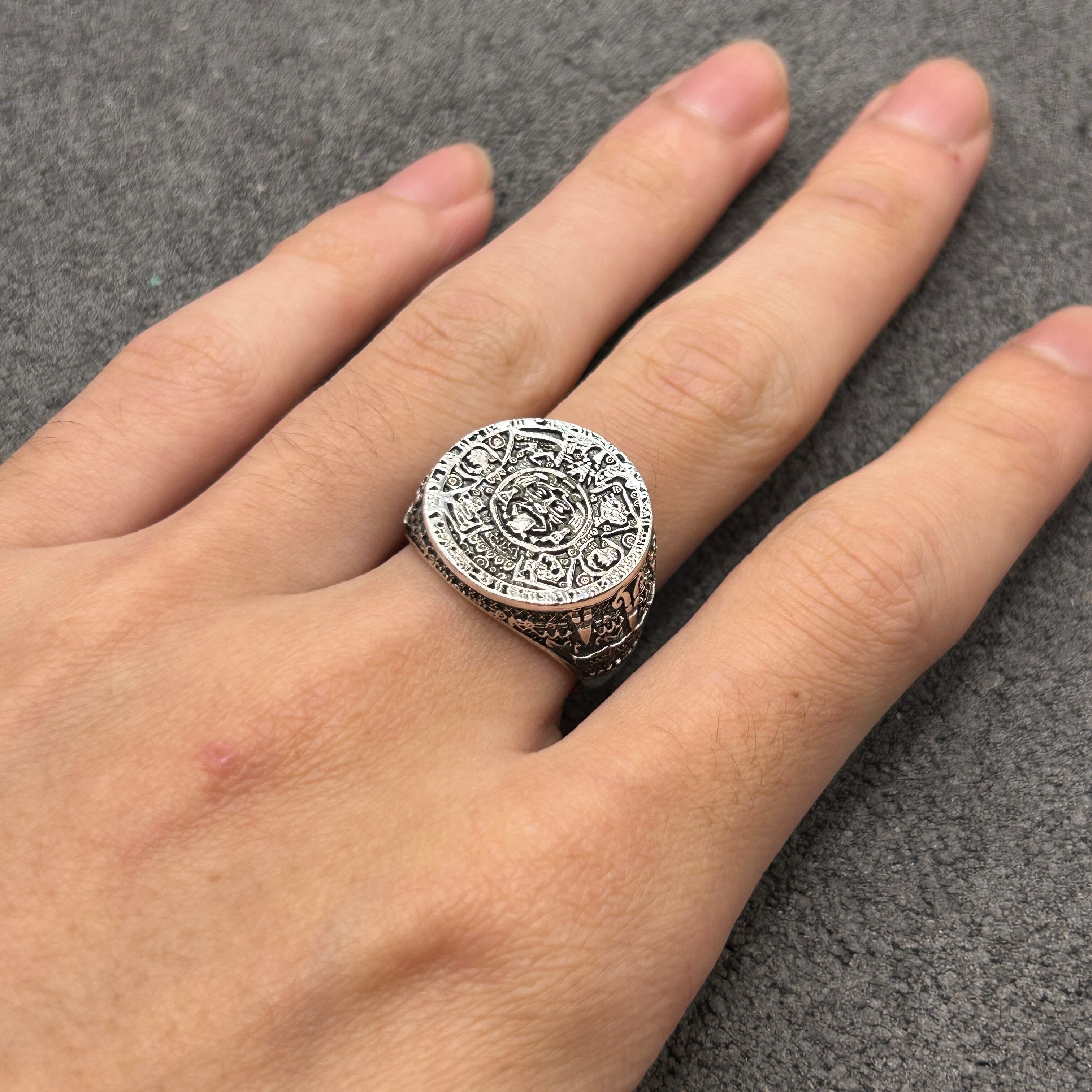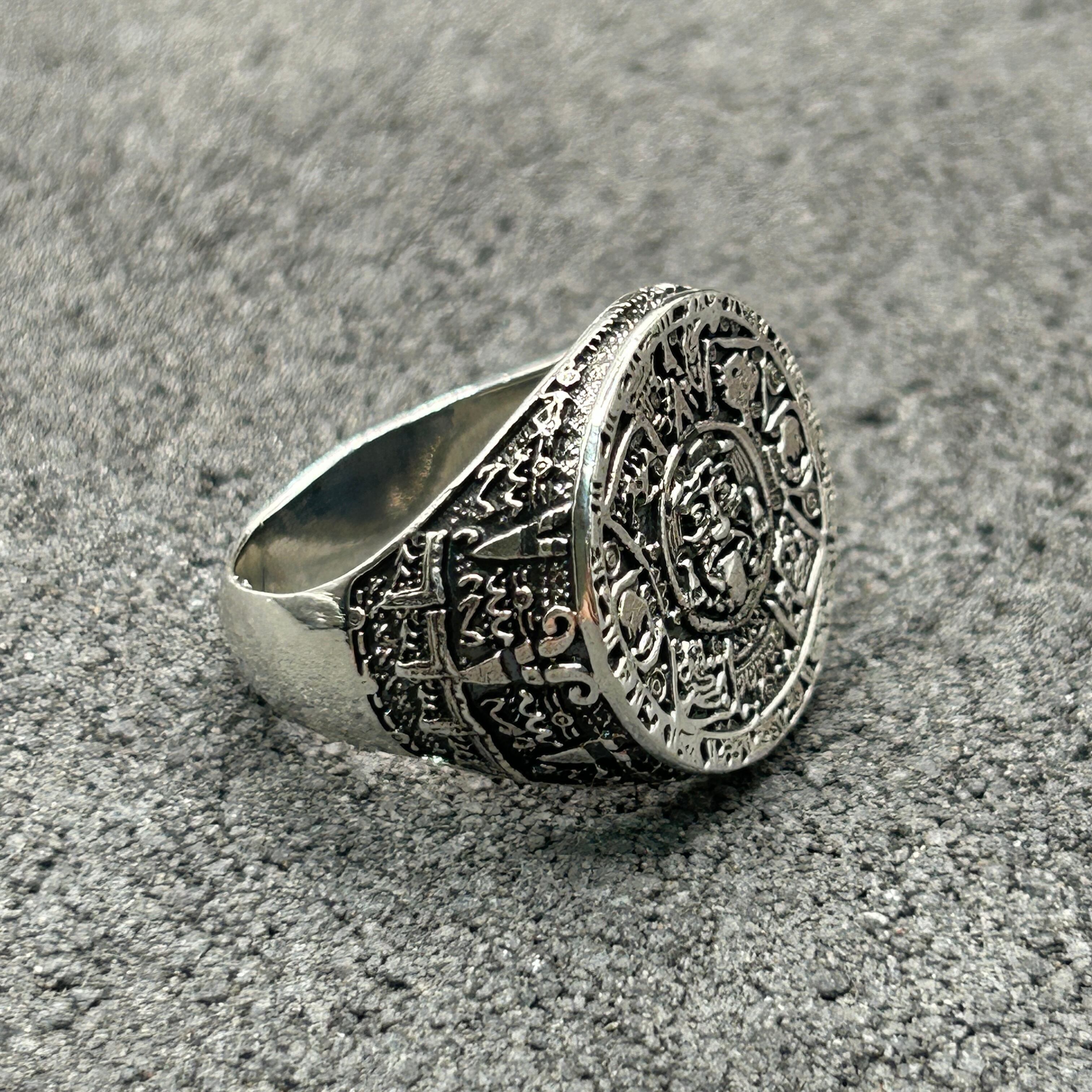 シルバー925 Silver マヤ文明デザインリング/軽研磨仕上げ/20号