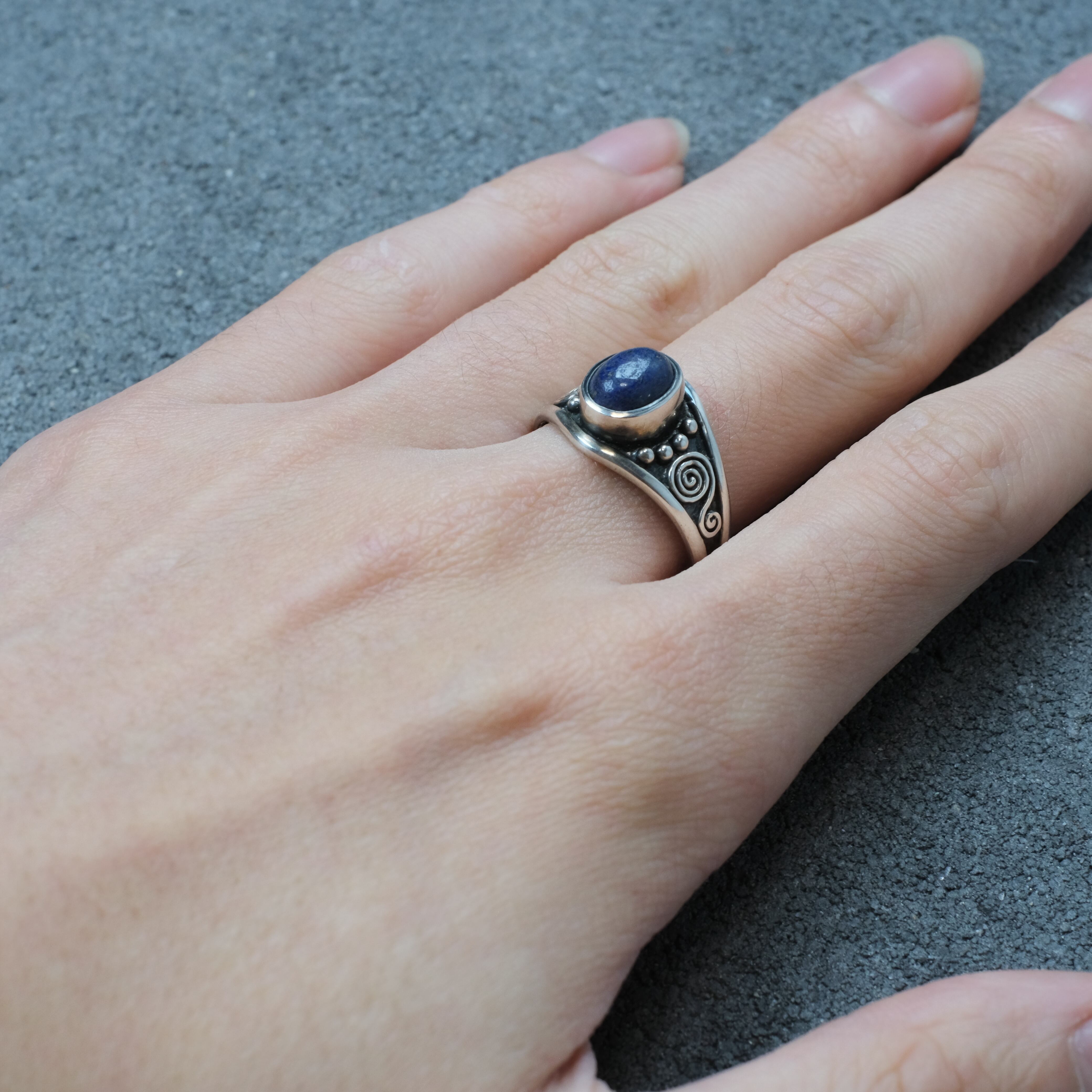 シルバー925 Silver ラピスラズリリング/ネイティブデザイン/軽研磨仕上げ