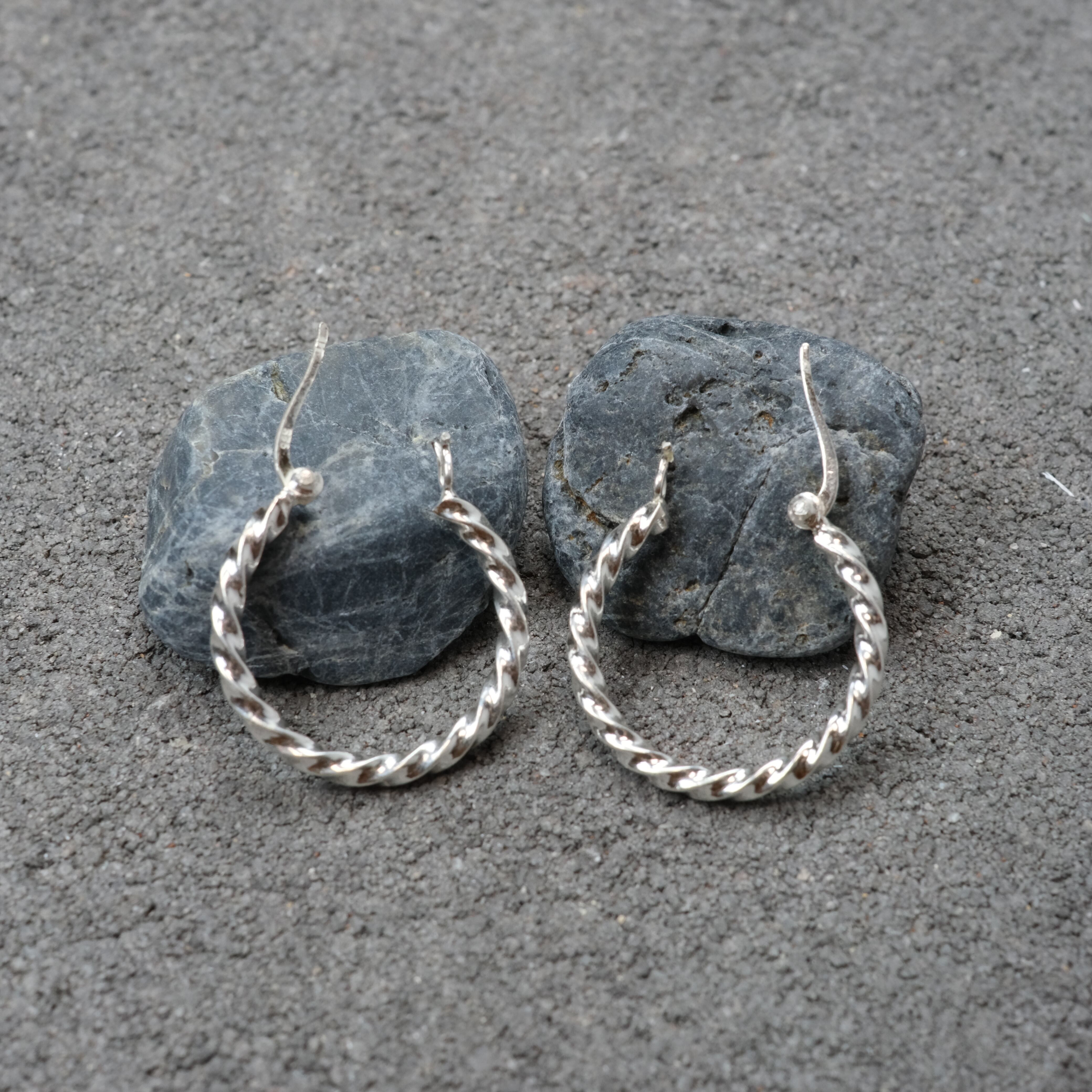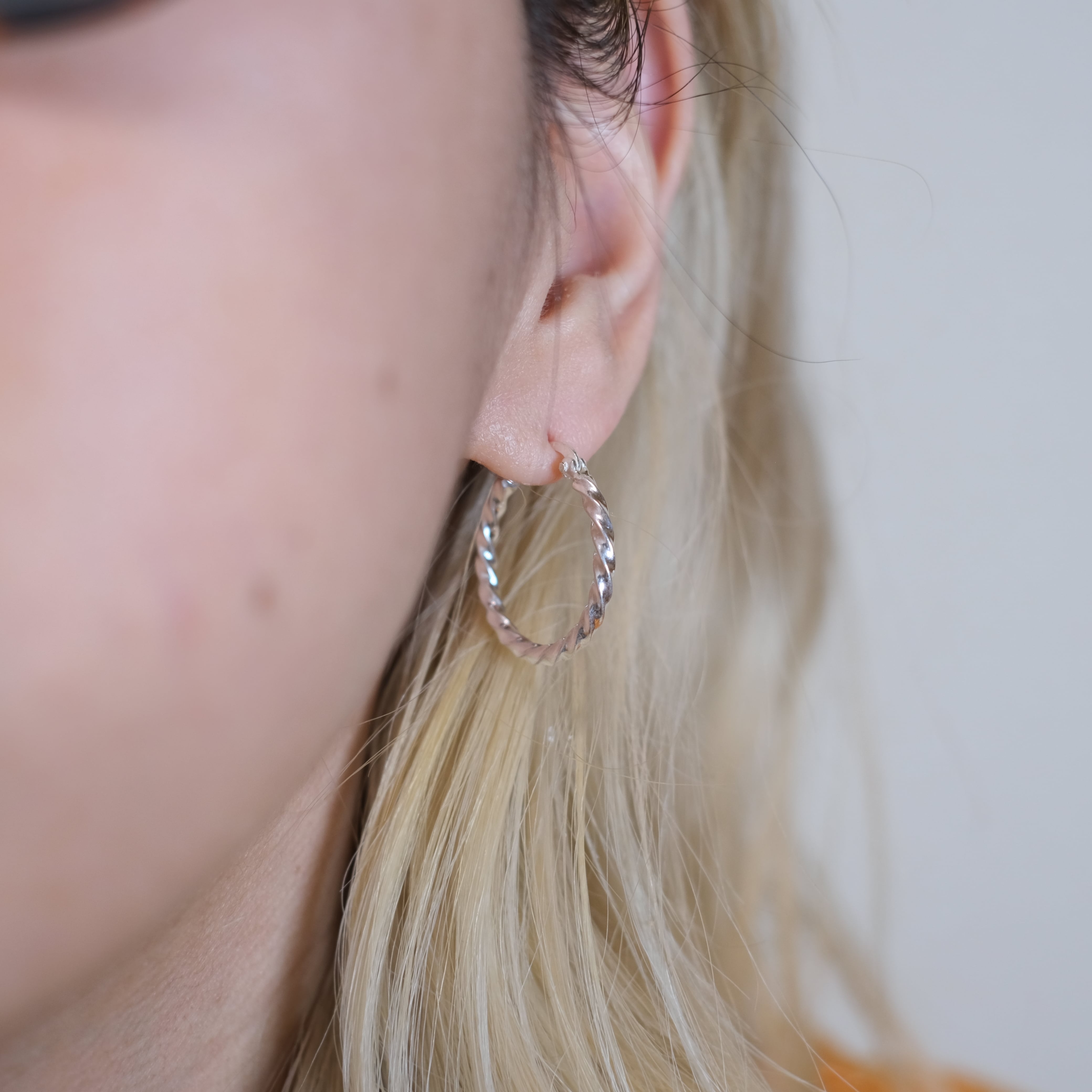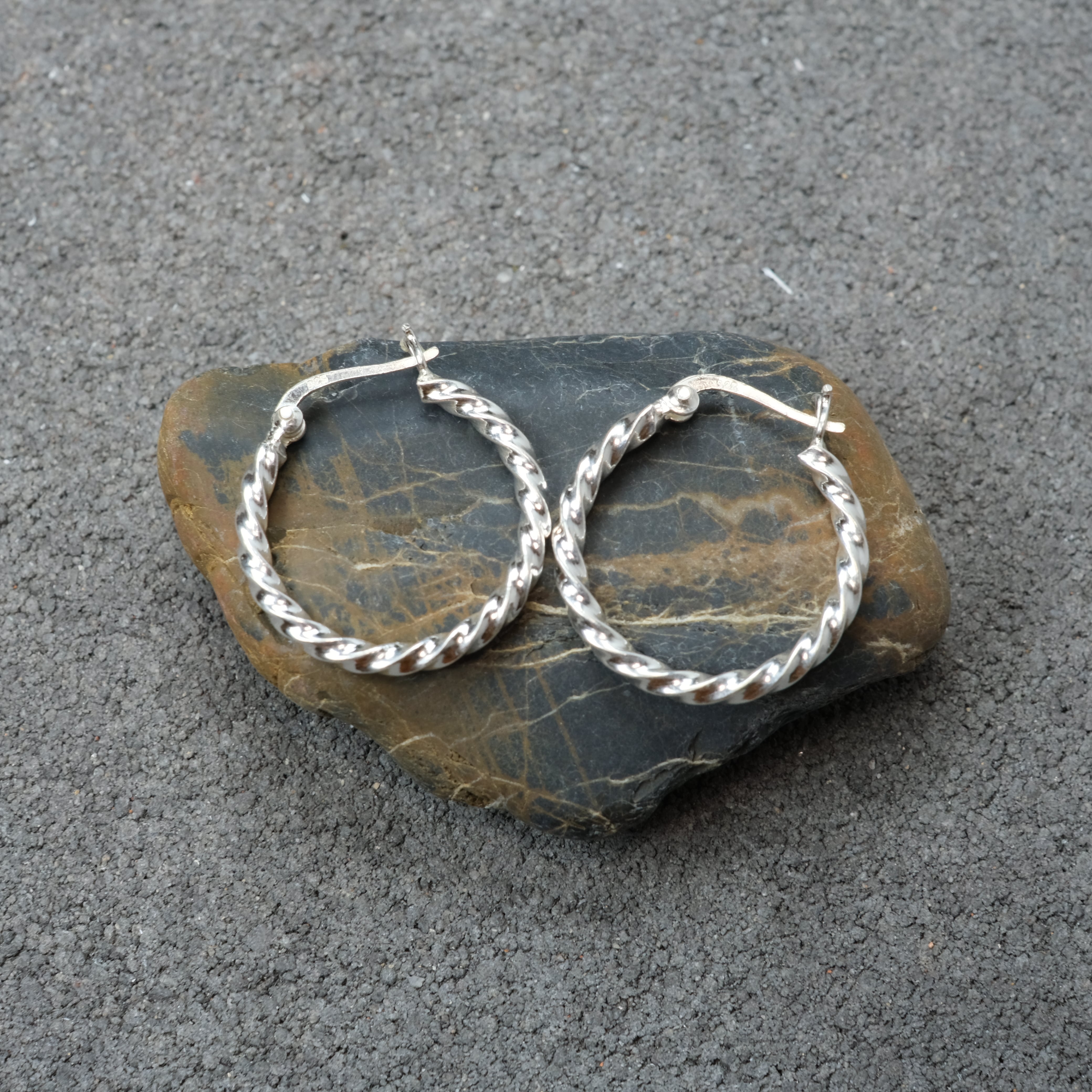 シルバー925 Silver ツイストフープピアス/軽研磨仕上げ/両耳