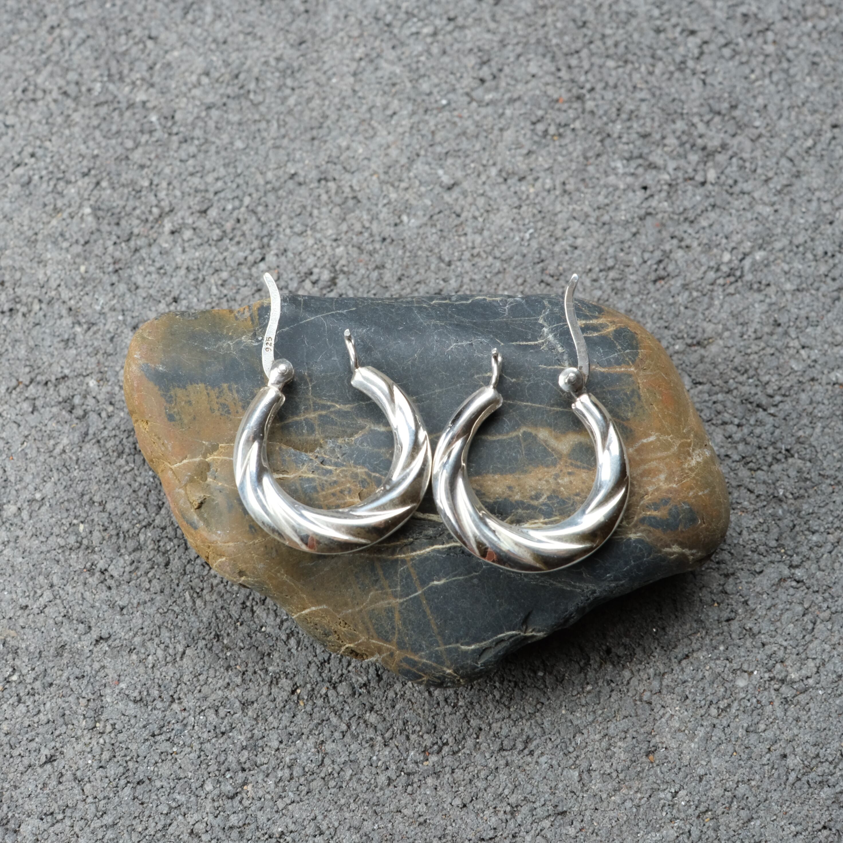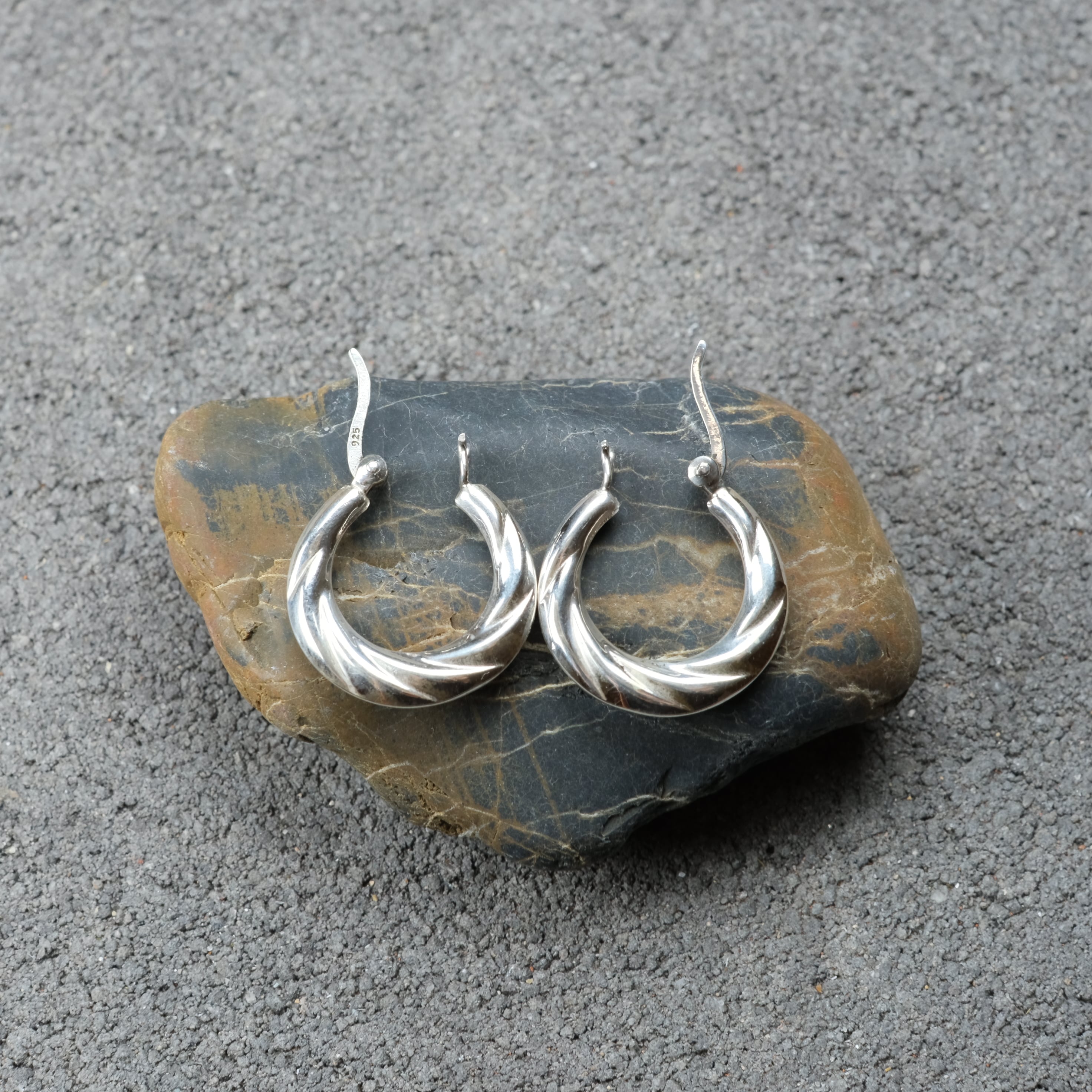 シルバー925 Silver ツイストフープピアス/軽研磨仕上げ/20mm/両耳
