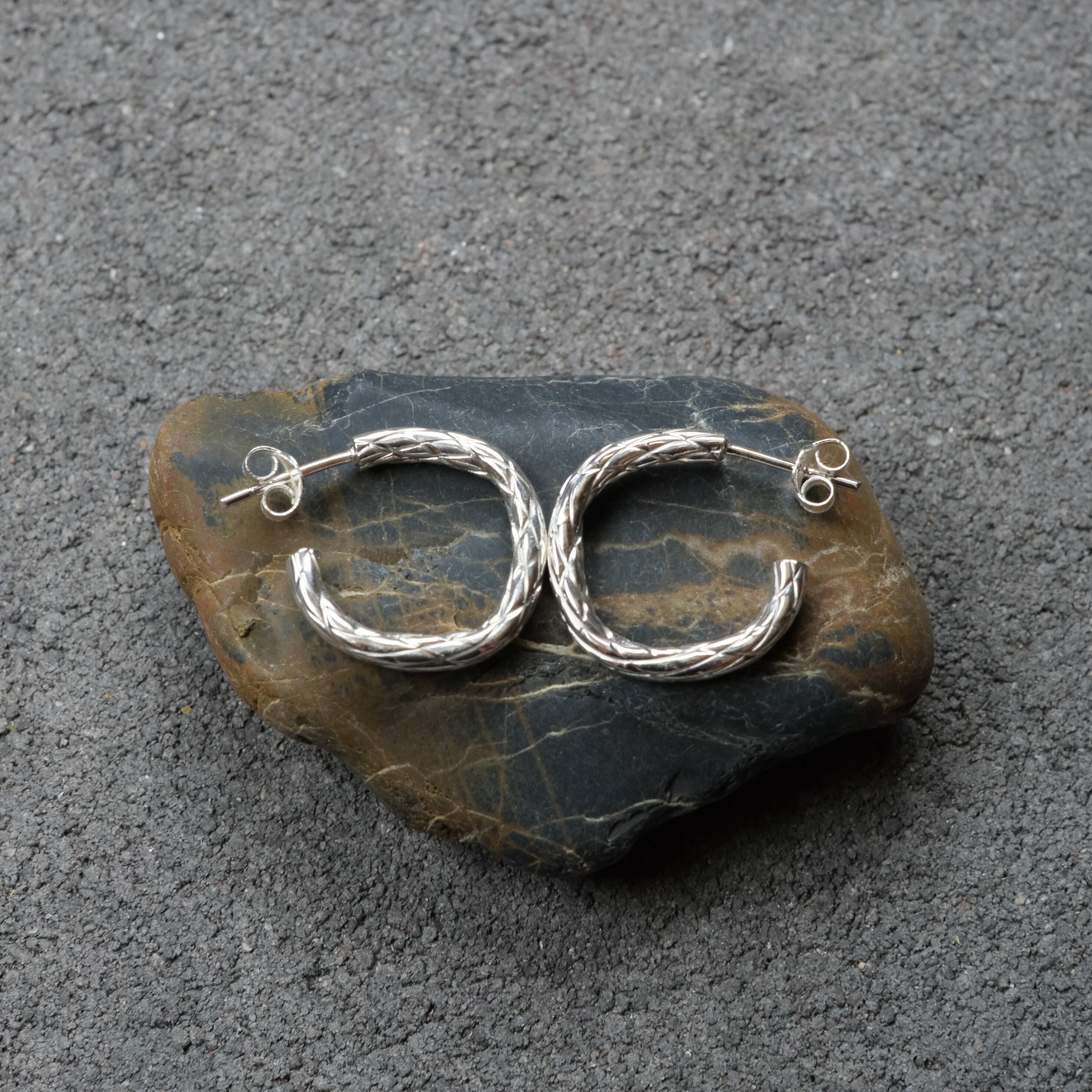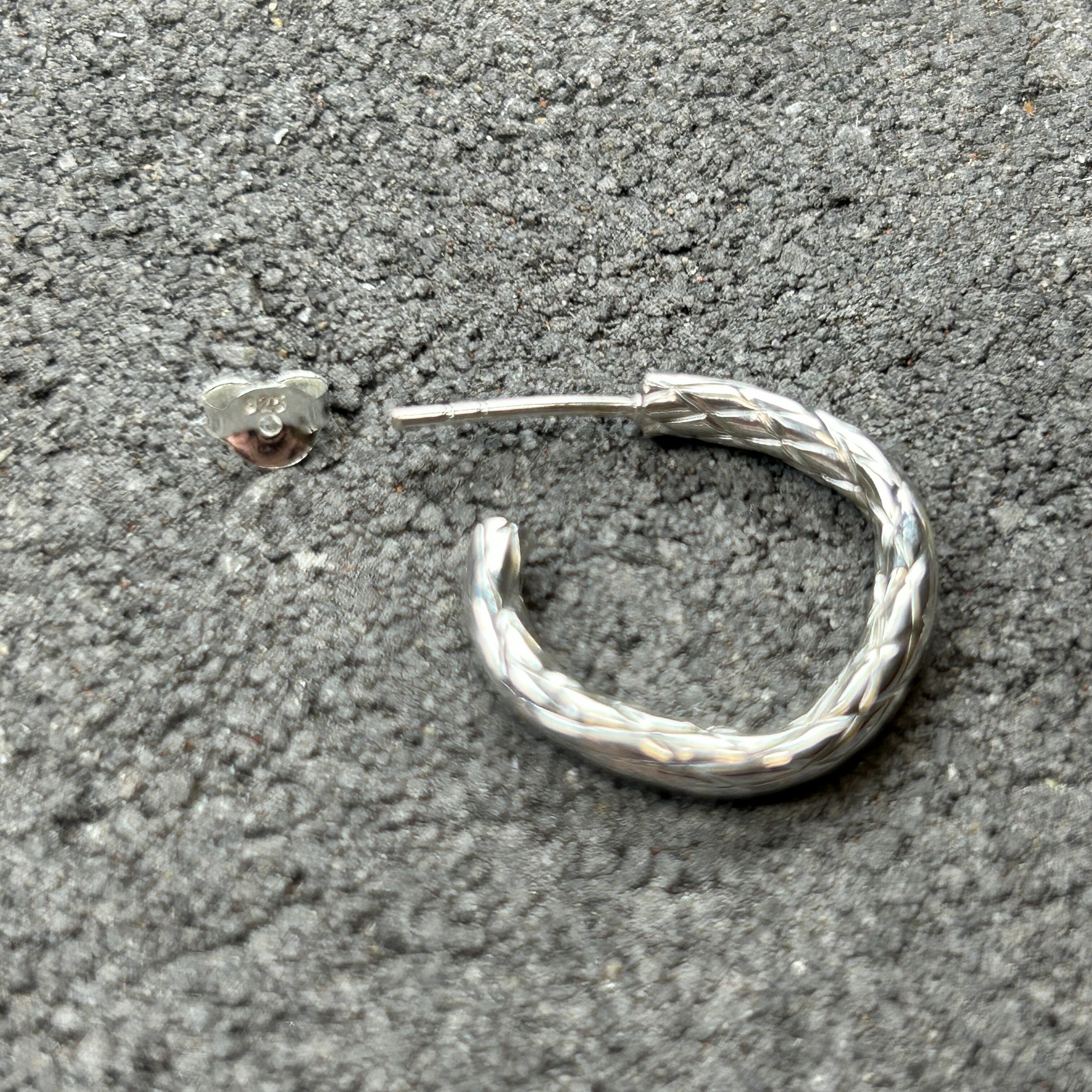 シルバー925 Silver 彫りデザインフープピアス/軽研磨仕上げ/両耳