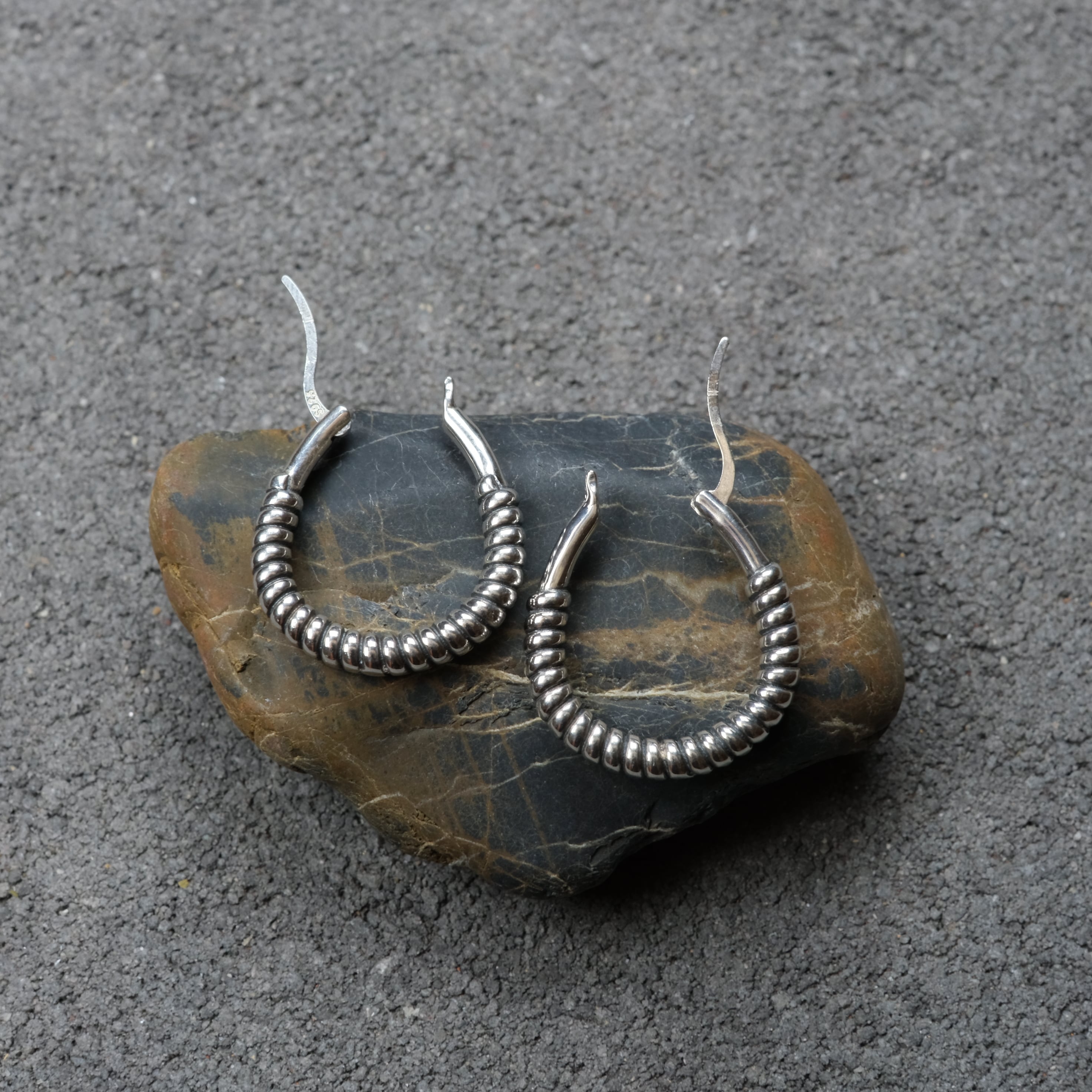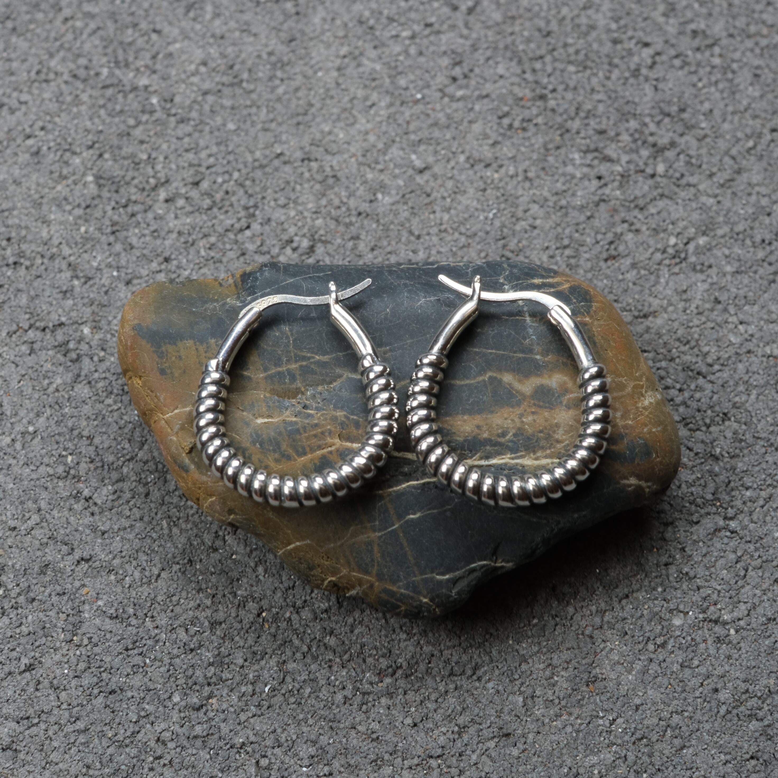 シルバー925 Silver ワイドデザインフープピアス/軽研磨仕上げ/両耳