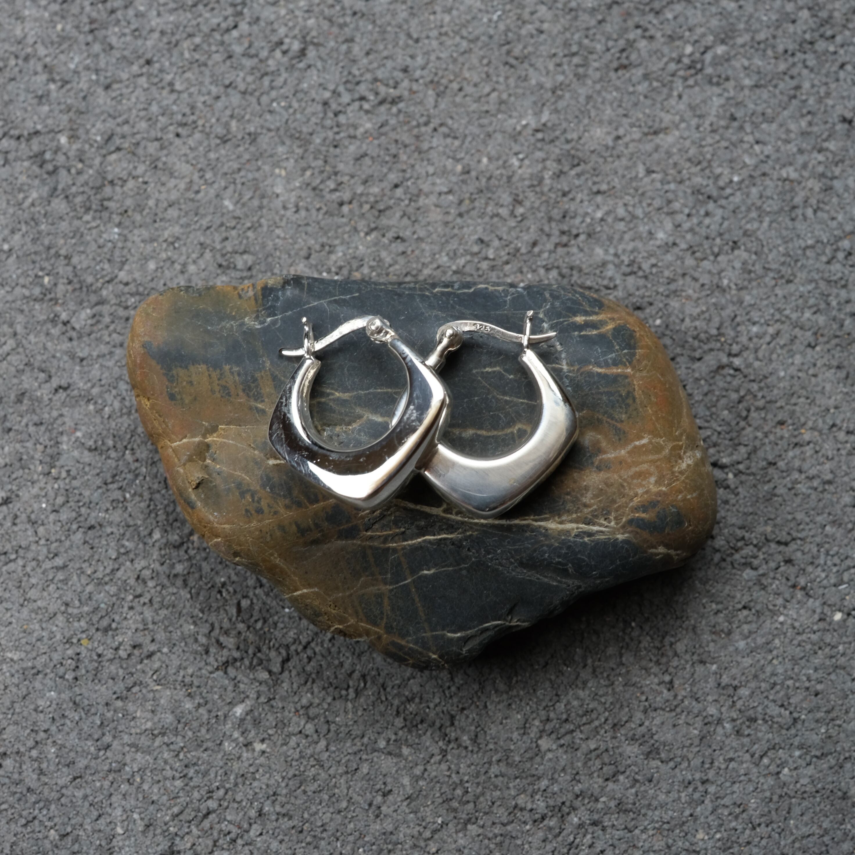 シルバー925 Silver スクエアデザインフープピアス/軽研磨仕上げ/両耳
