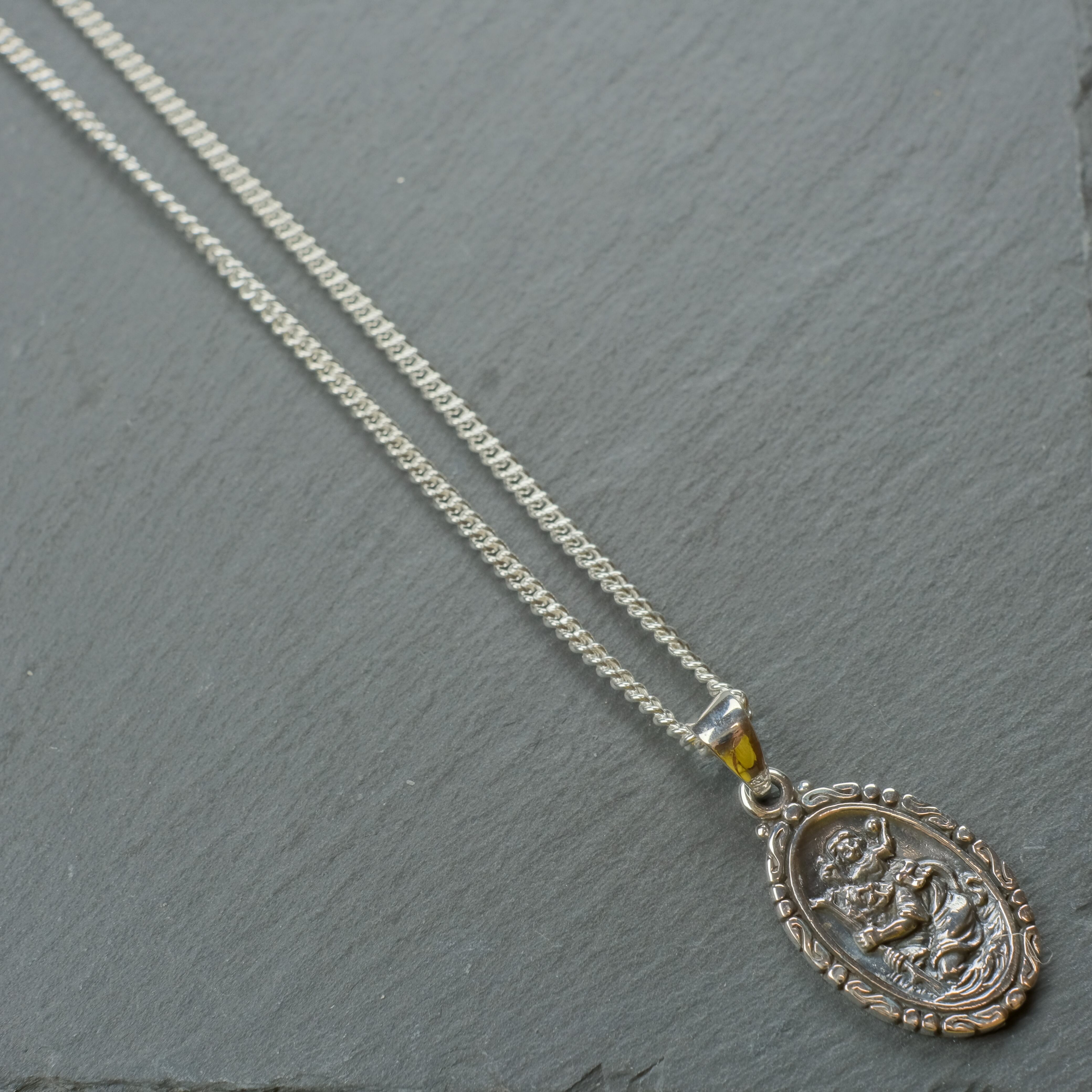 シルバー925 Silver 聖クリストファーネックレス/ペンダント/軽研磨仕上げ